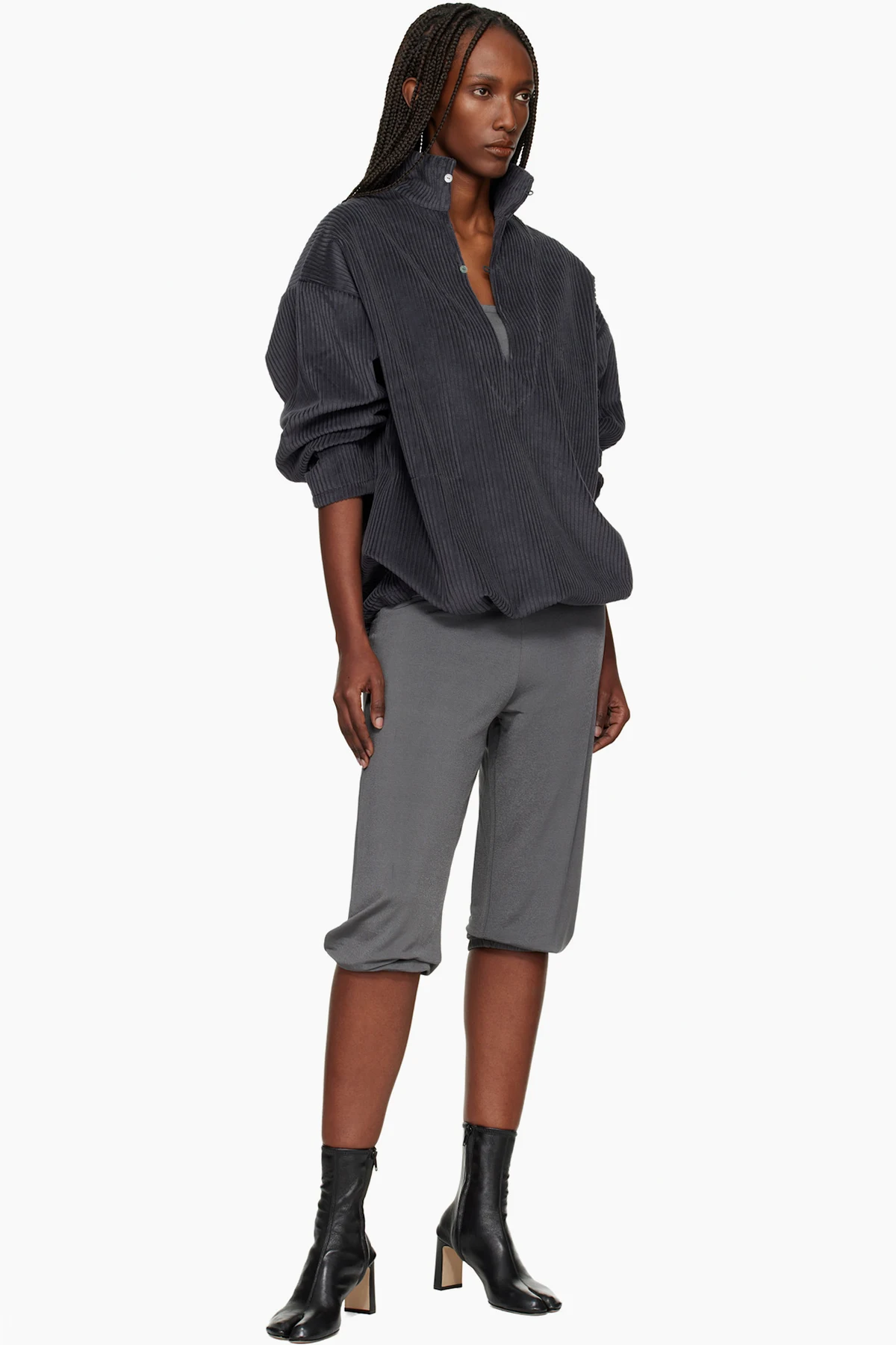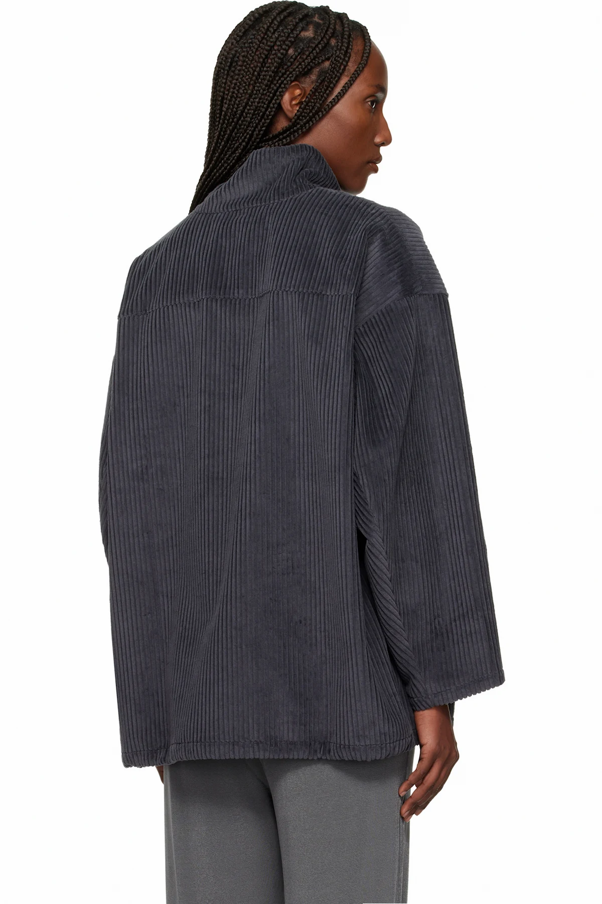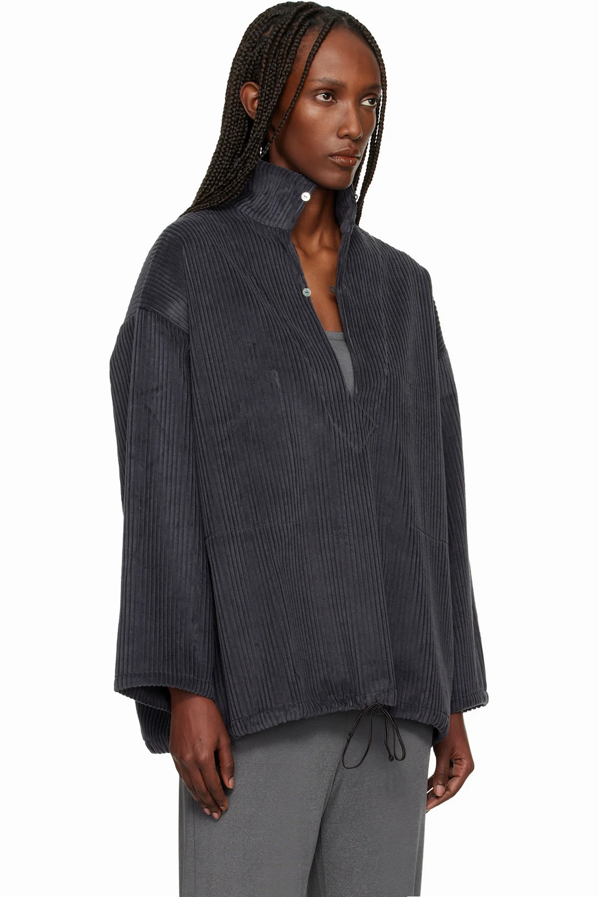 Gray Wide Cotton Corduroy Vareuse Turtleneck