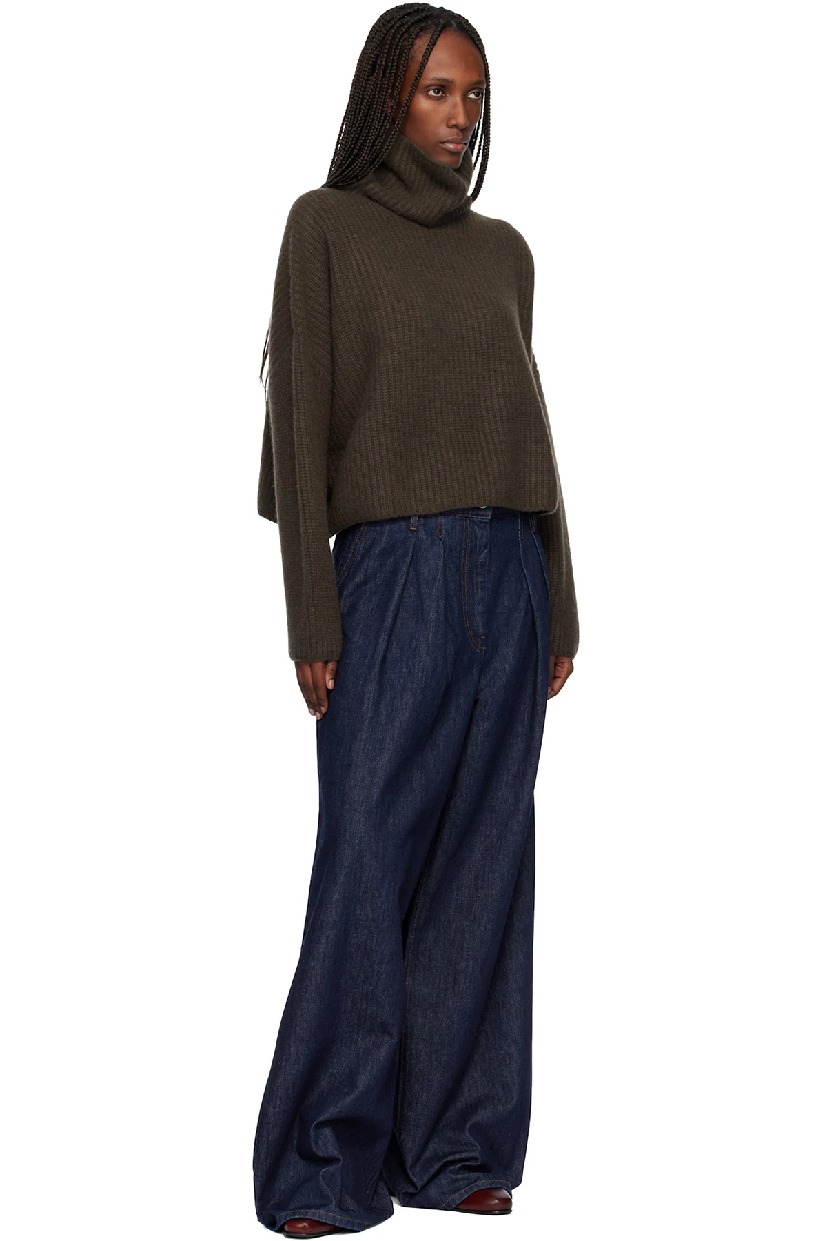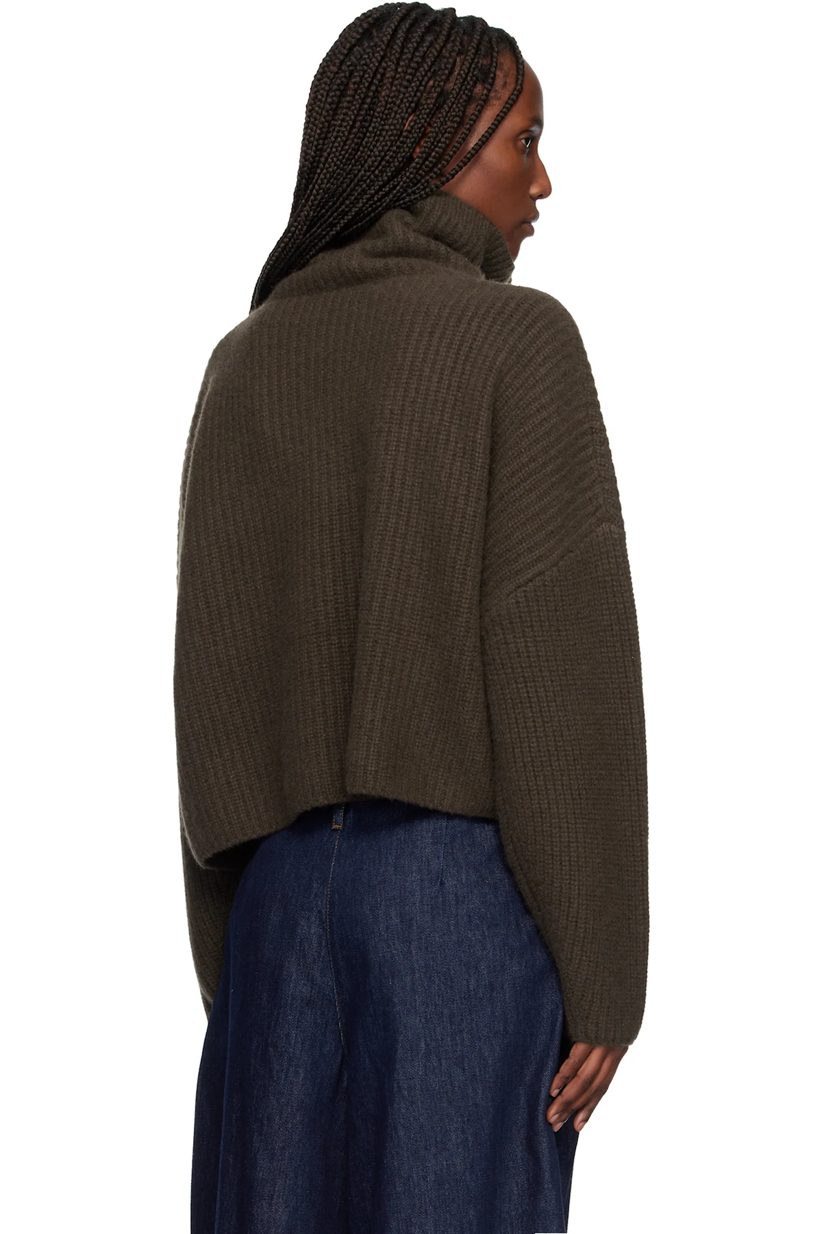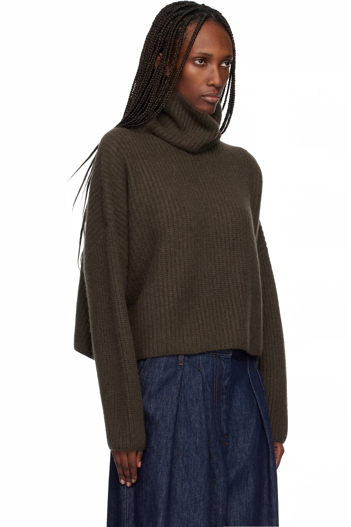 Rib-knit GOTS-certified cashmere turtleneck. Dropped shoulders.