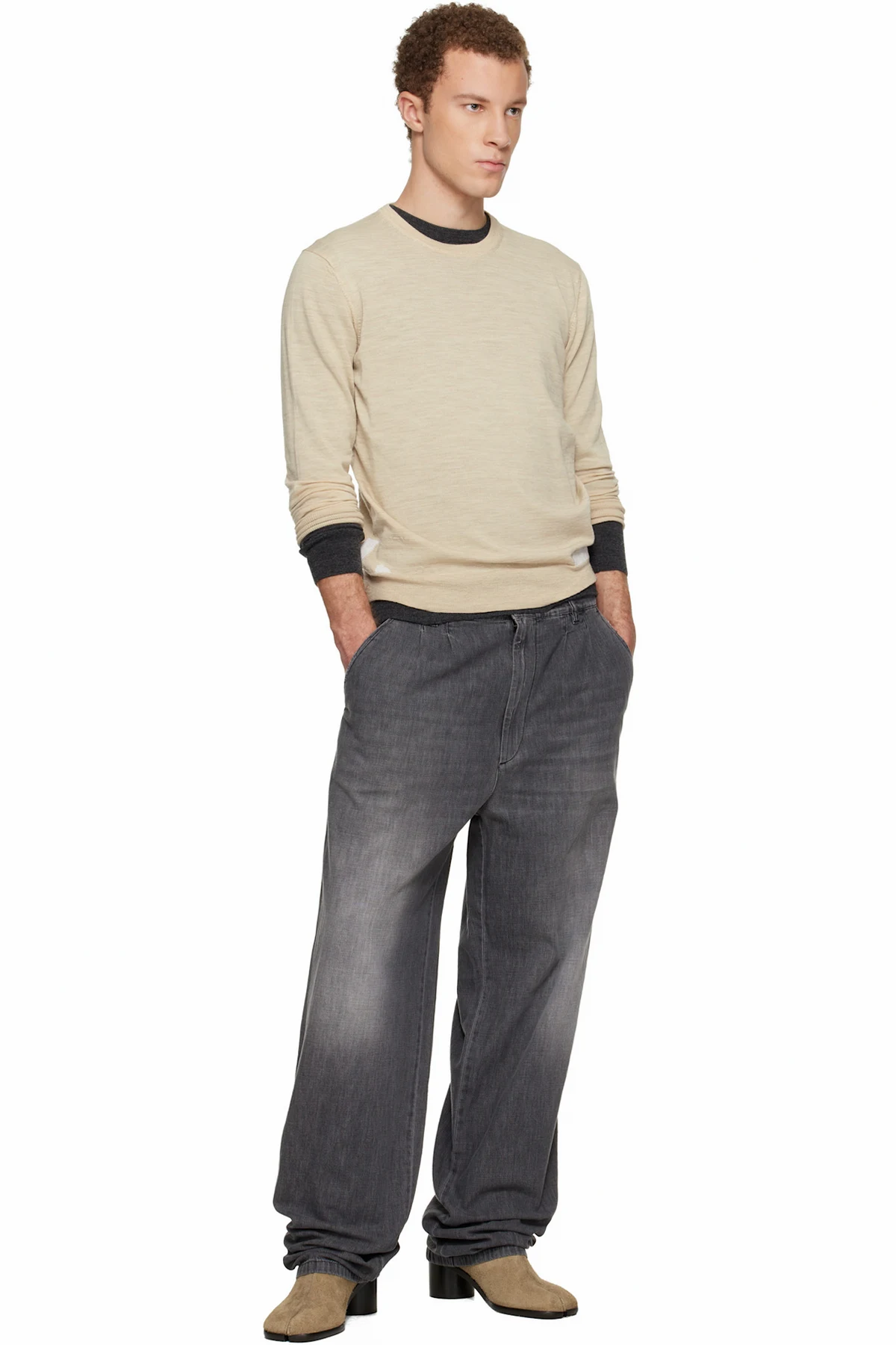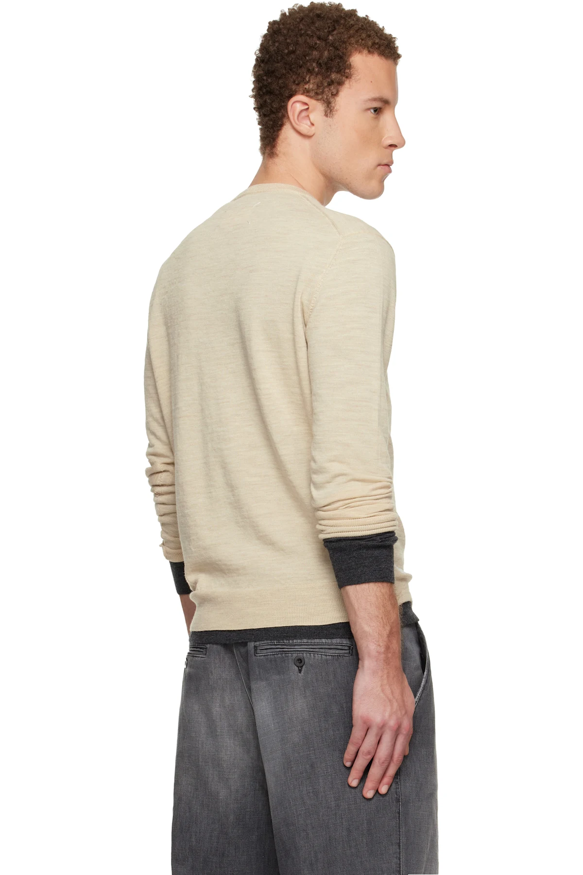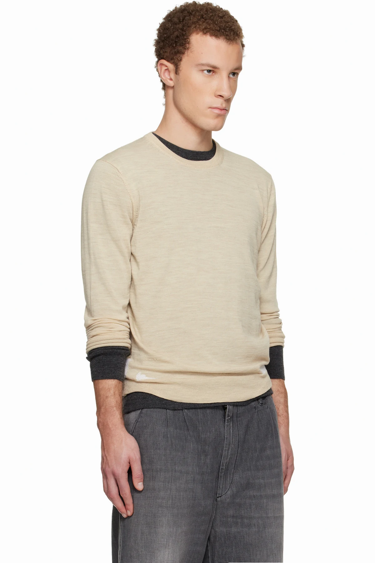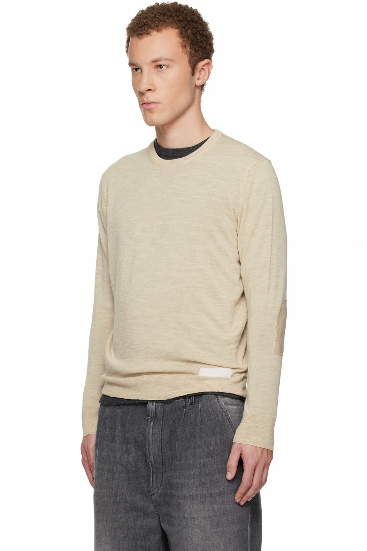 Beige Wool-Blend Patch Sweater