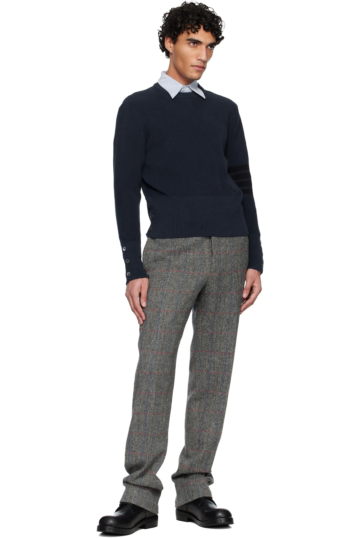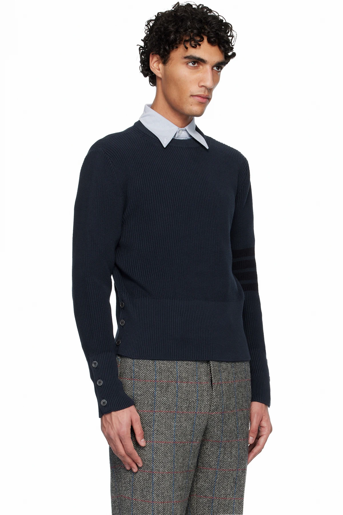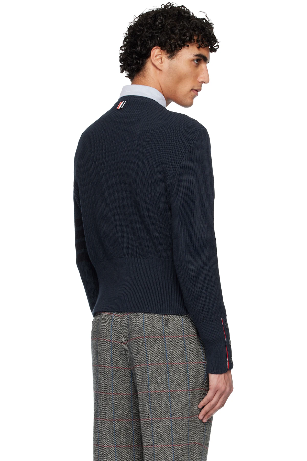 Navy Cotton Cardigan Stitch 4-Bar Sweater