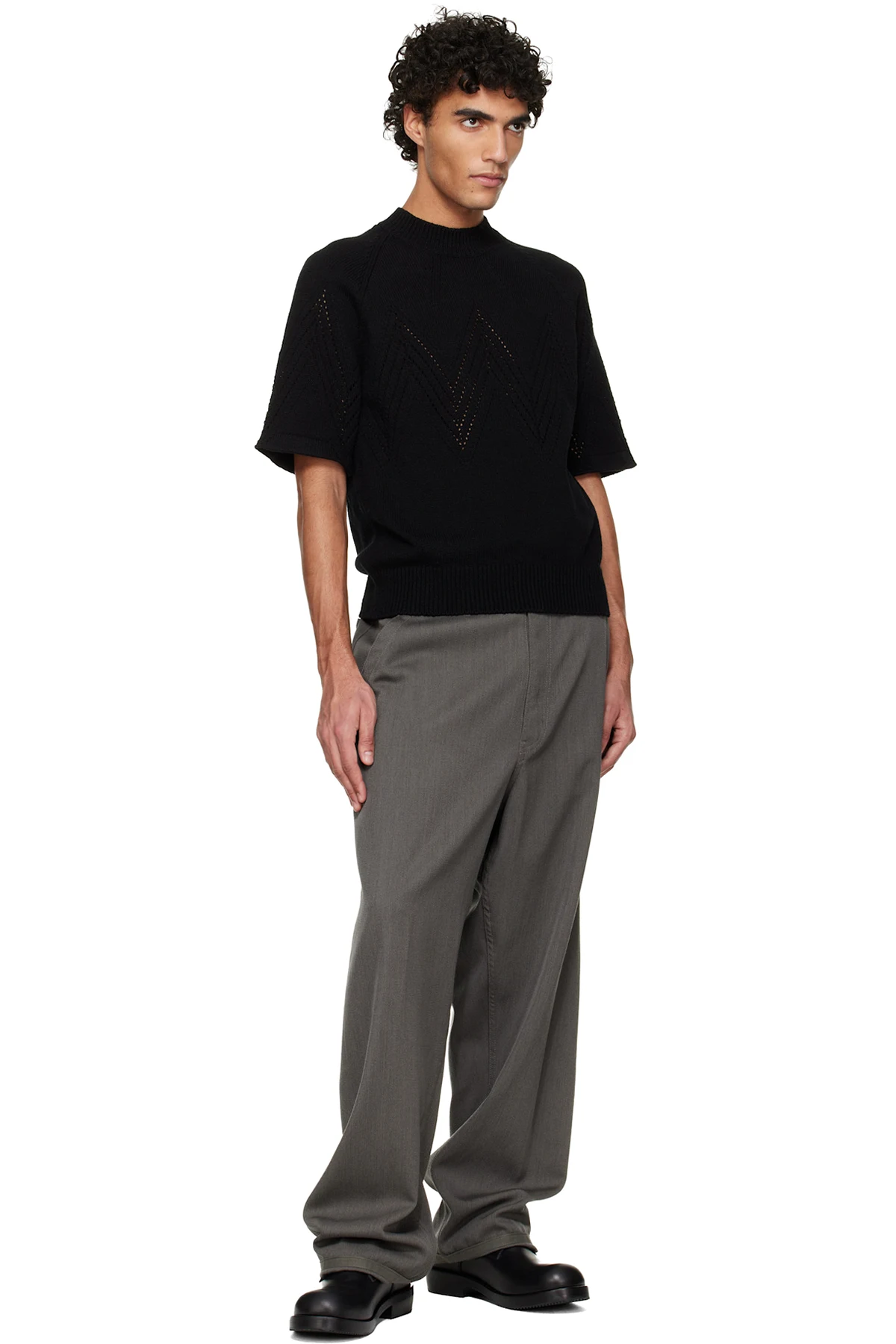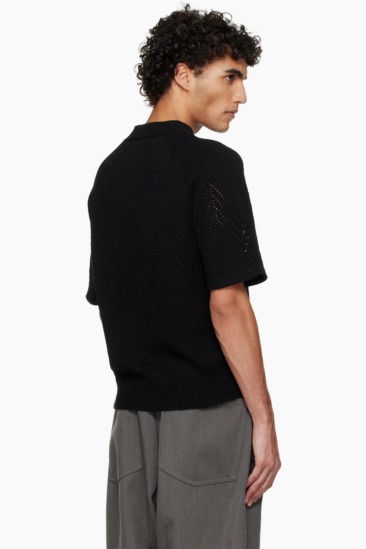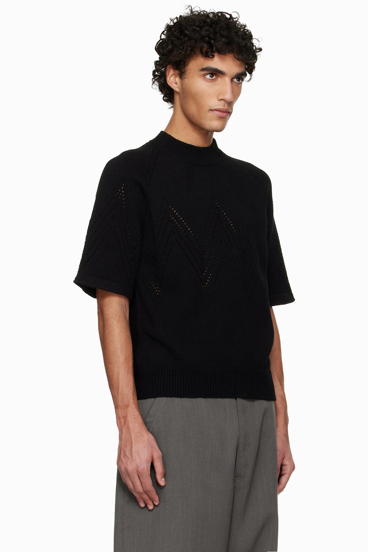 Black Pointelle Short Sleeve Sweater