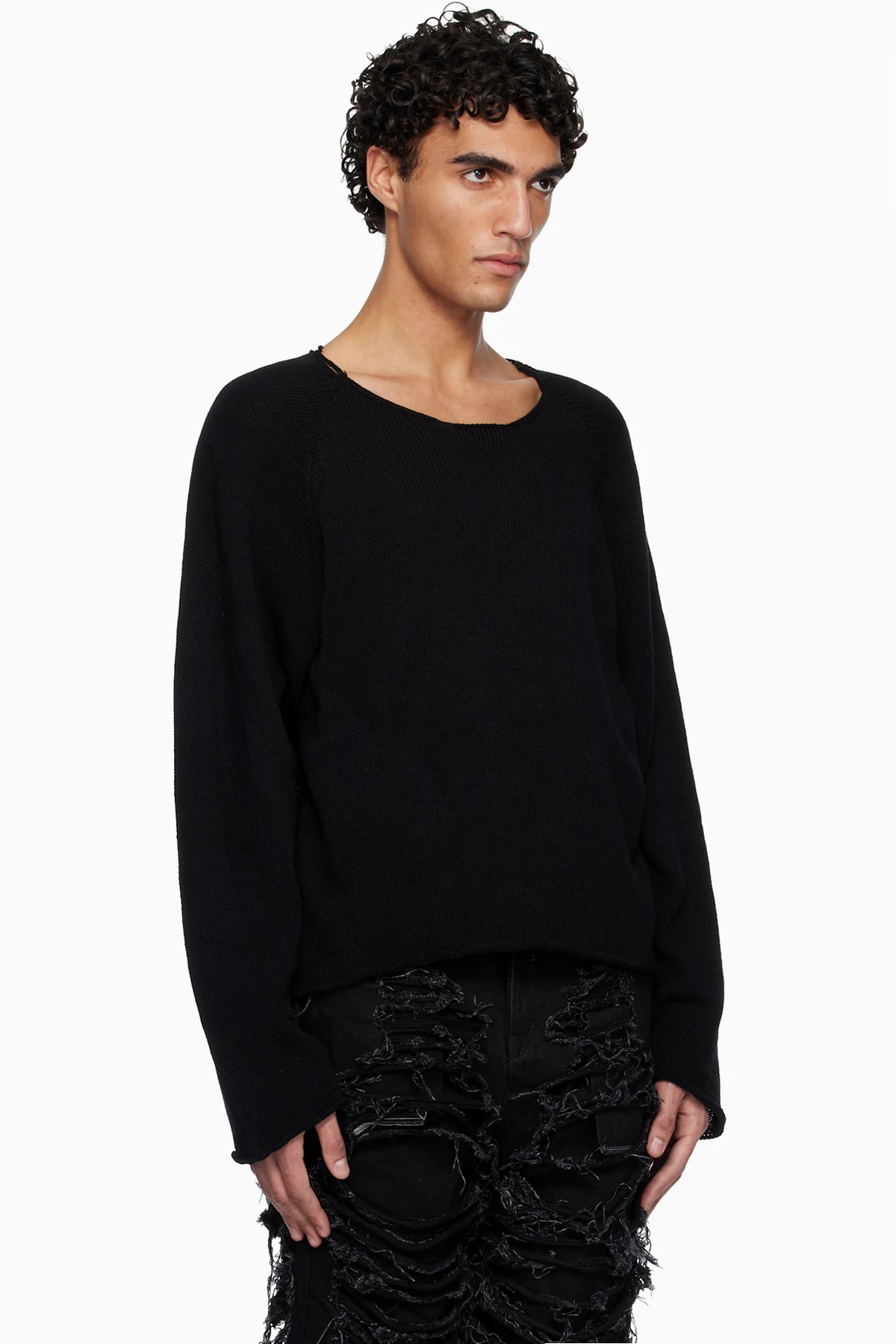Black Hand Knit Basic Sweater
