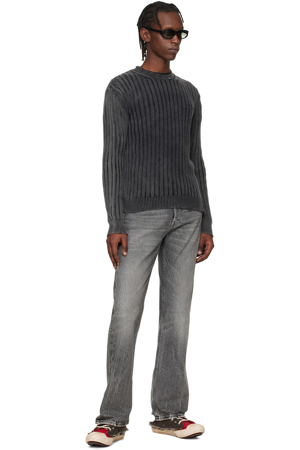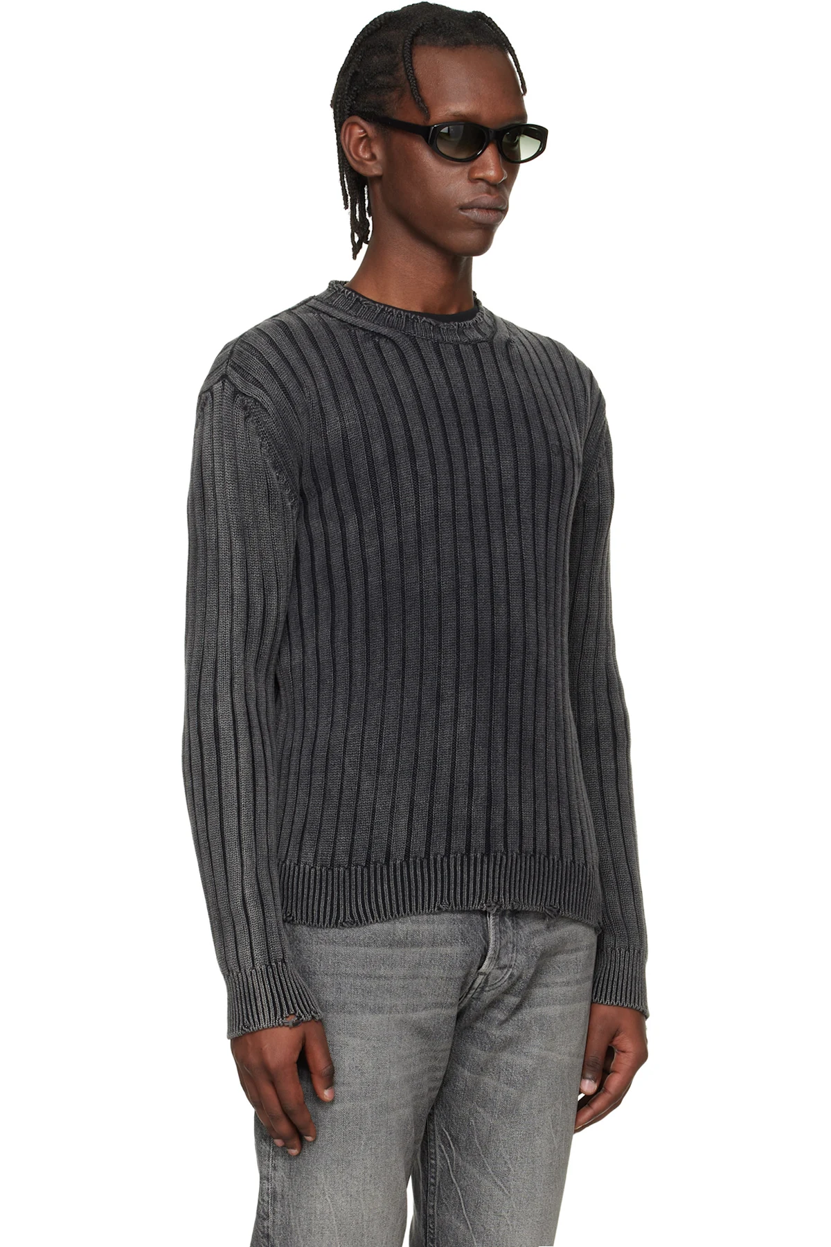 Gray Ink Arrow Rib Knit Crewneck Sweater