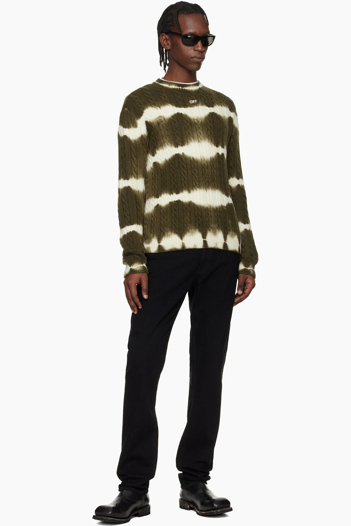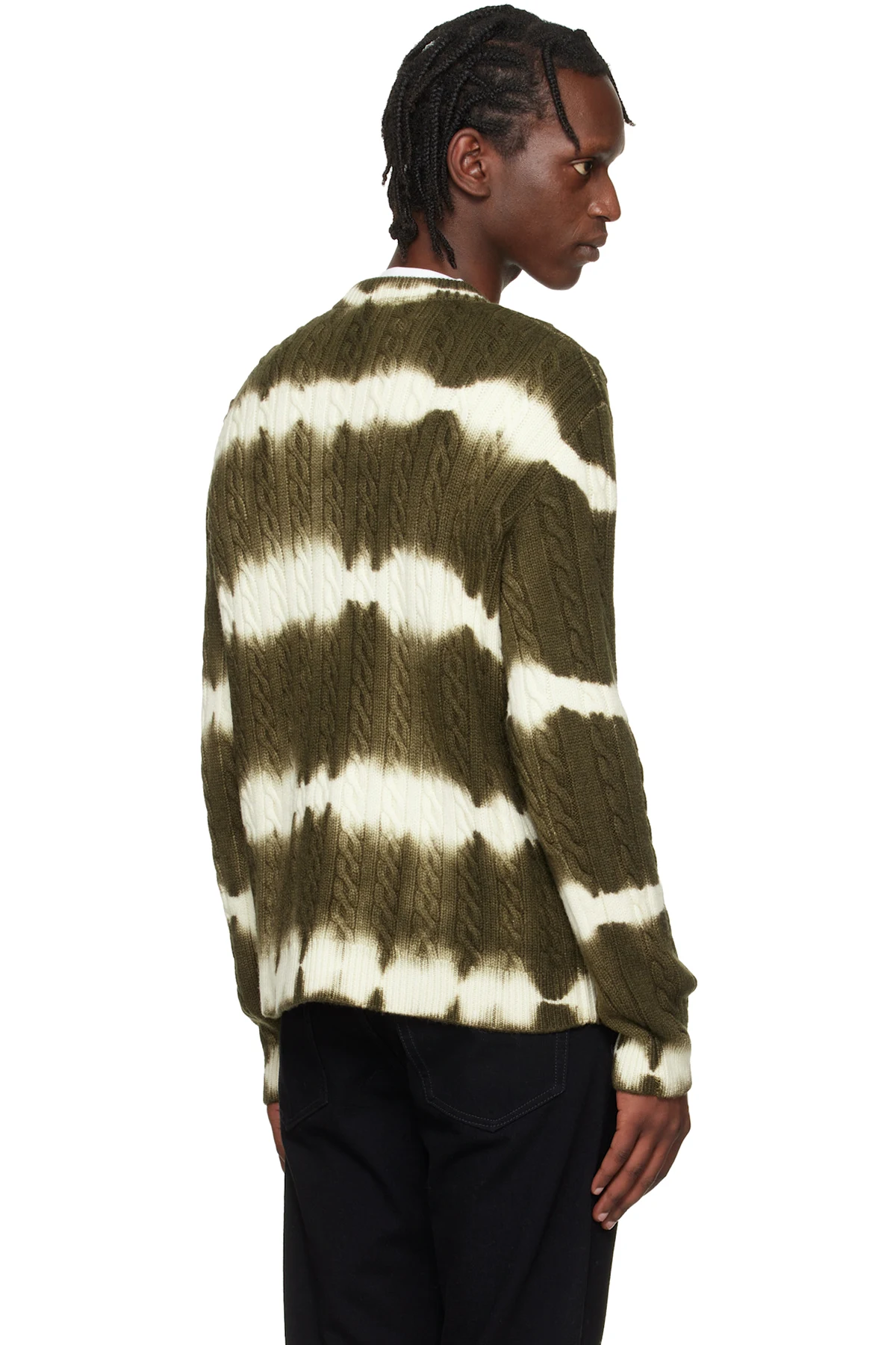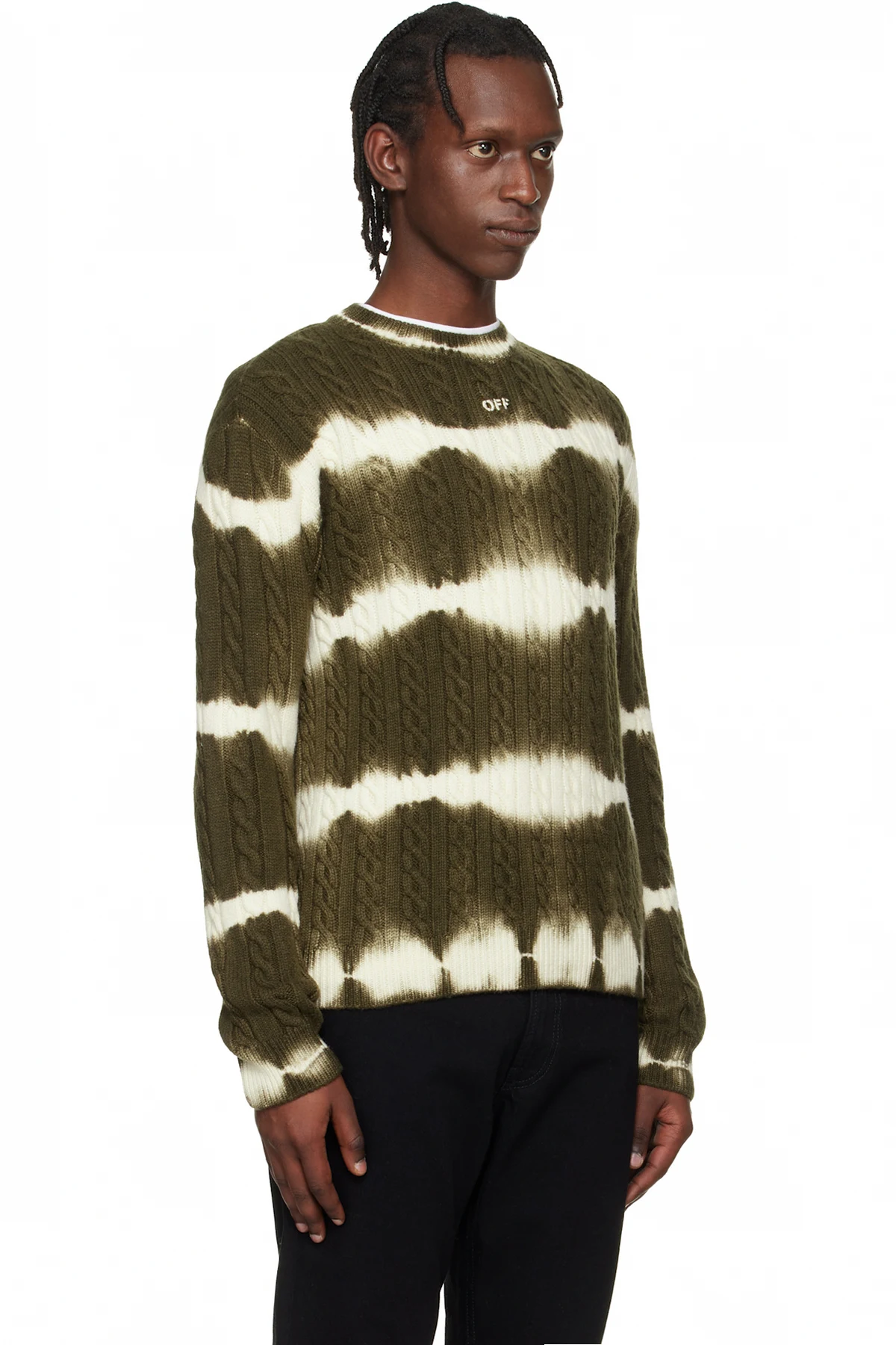 Khaki & White Off Stamp Cable Knit Crewneck Sweater