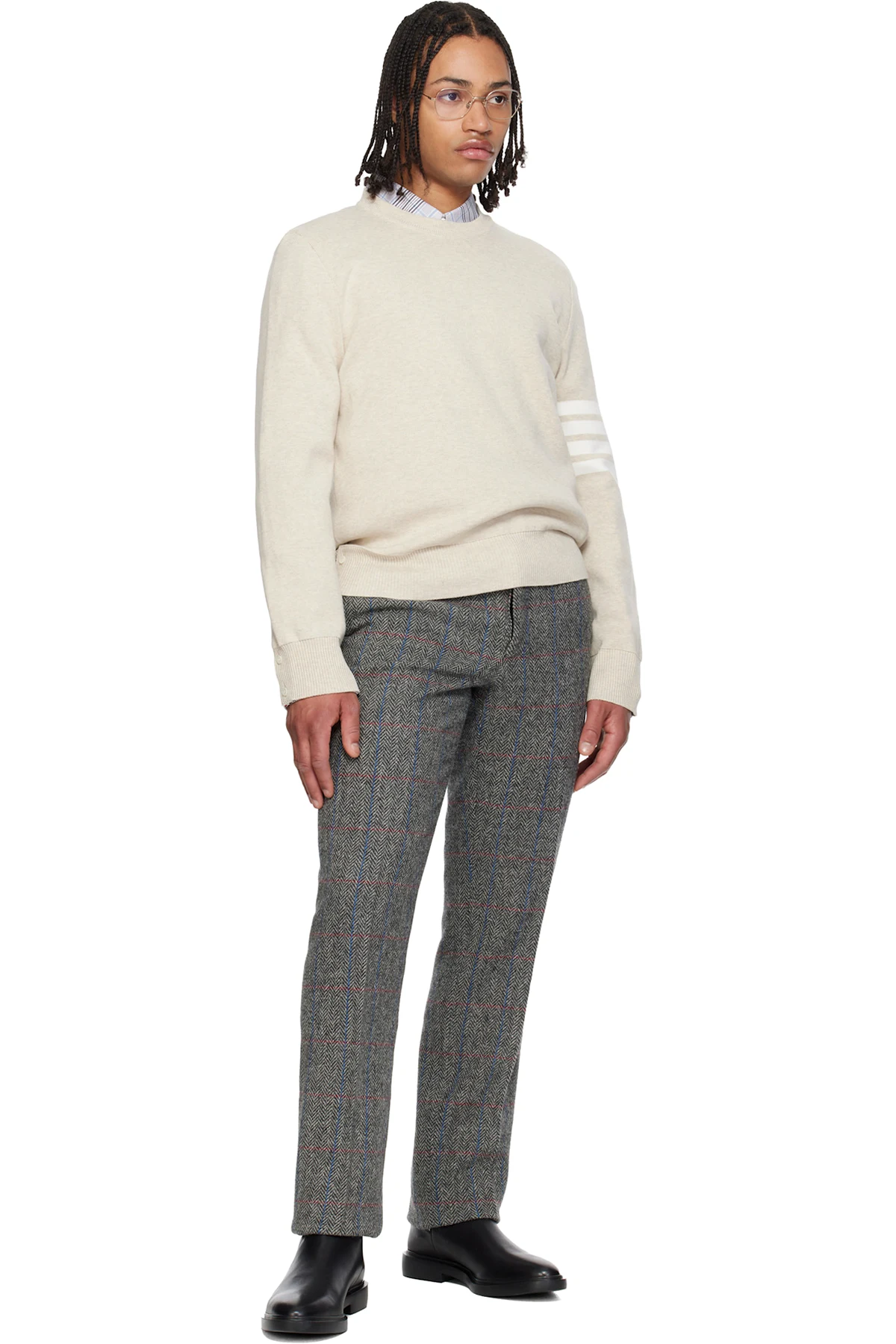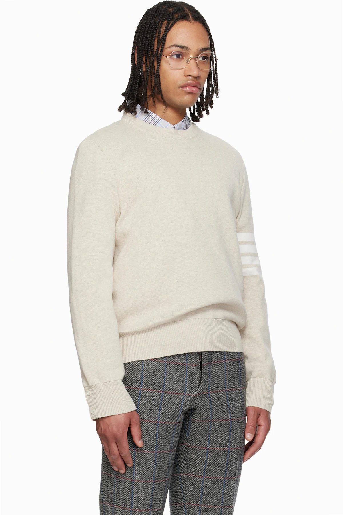 Beige Cotton Crepe 4-Bar Milano Stitch Sweater
