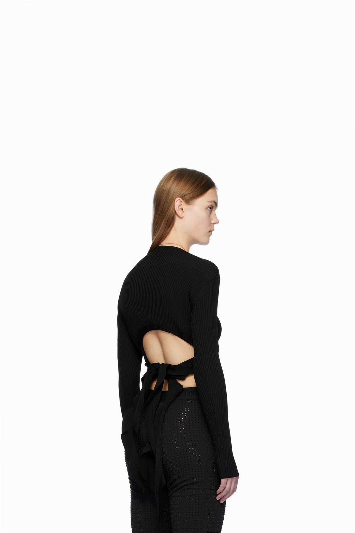 Rib knit viscose- and polyester-blend top.
