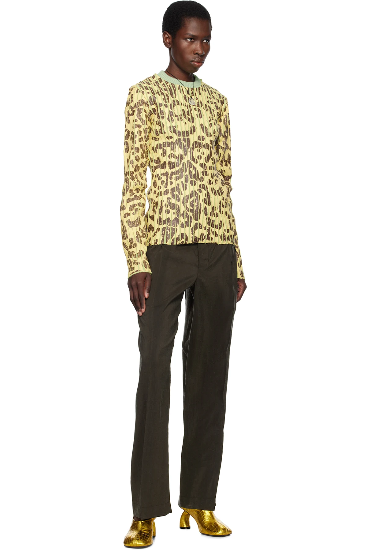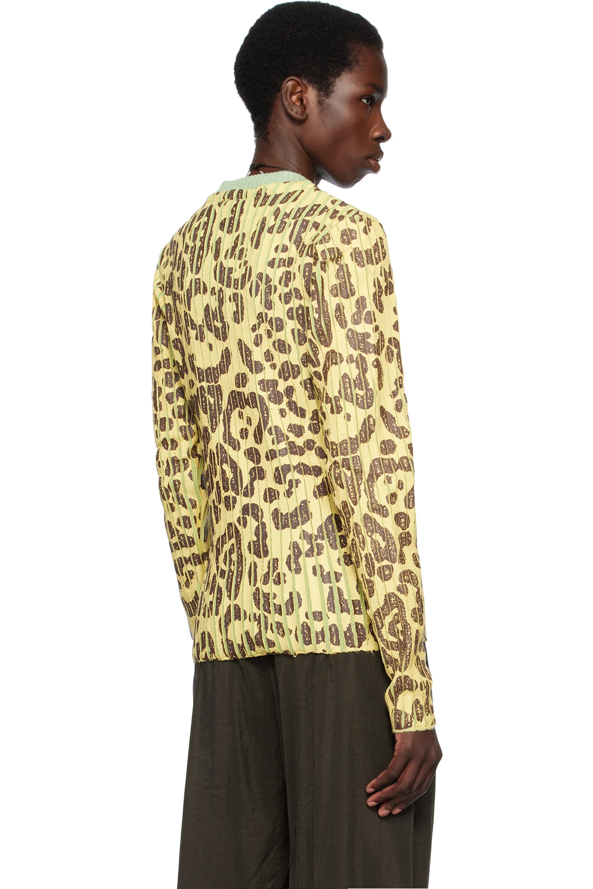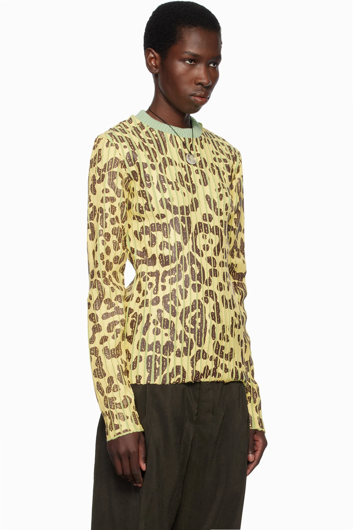 Yellow & Green Leopard Print Plated Knit Crewneck Sweater
