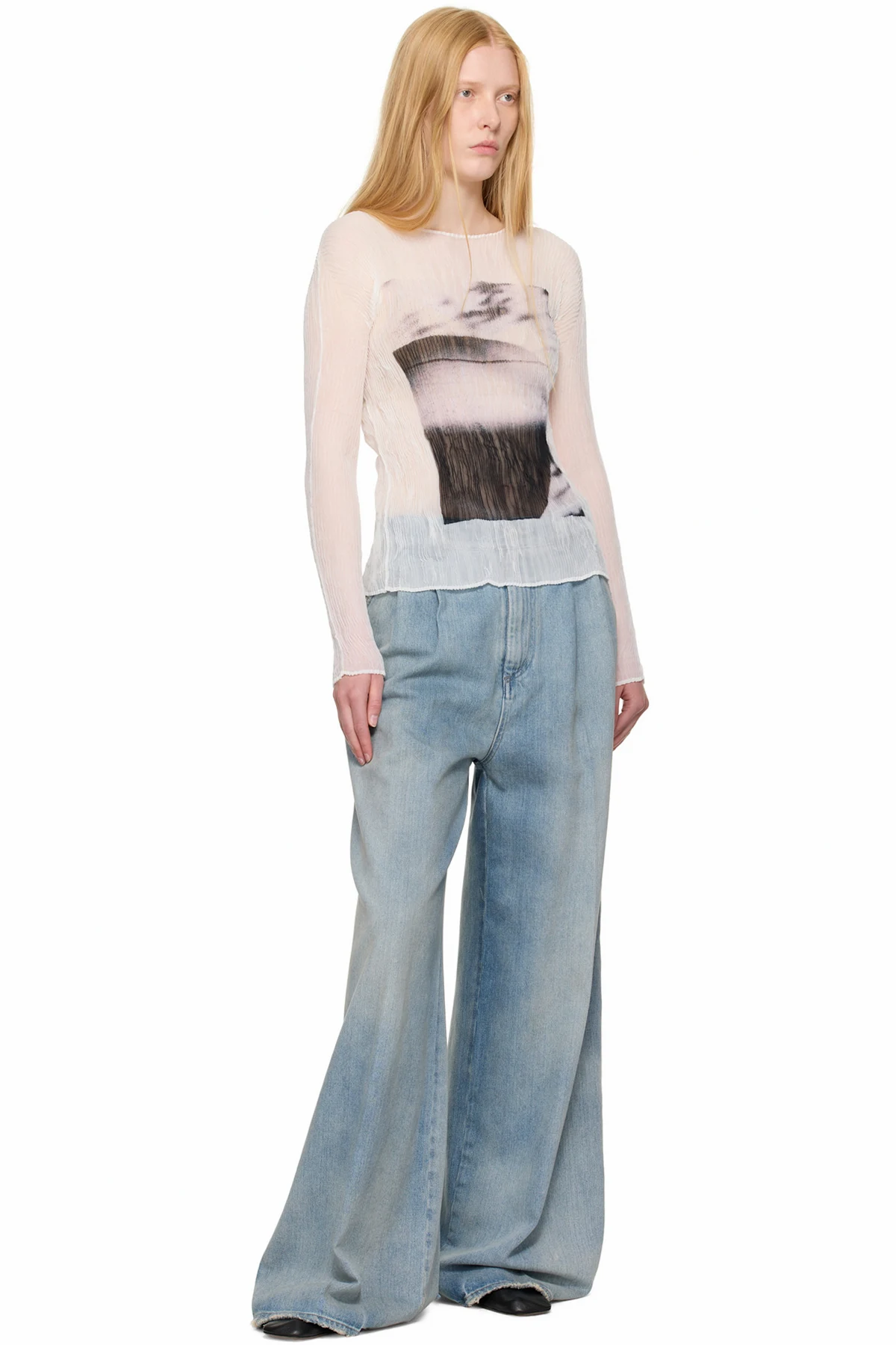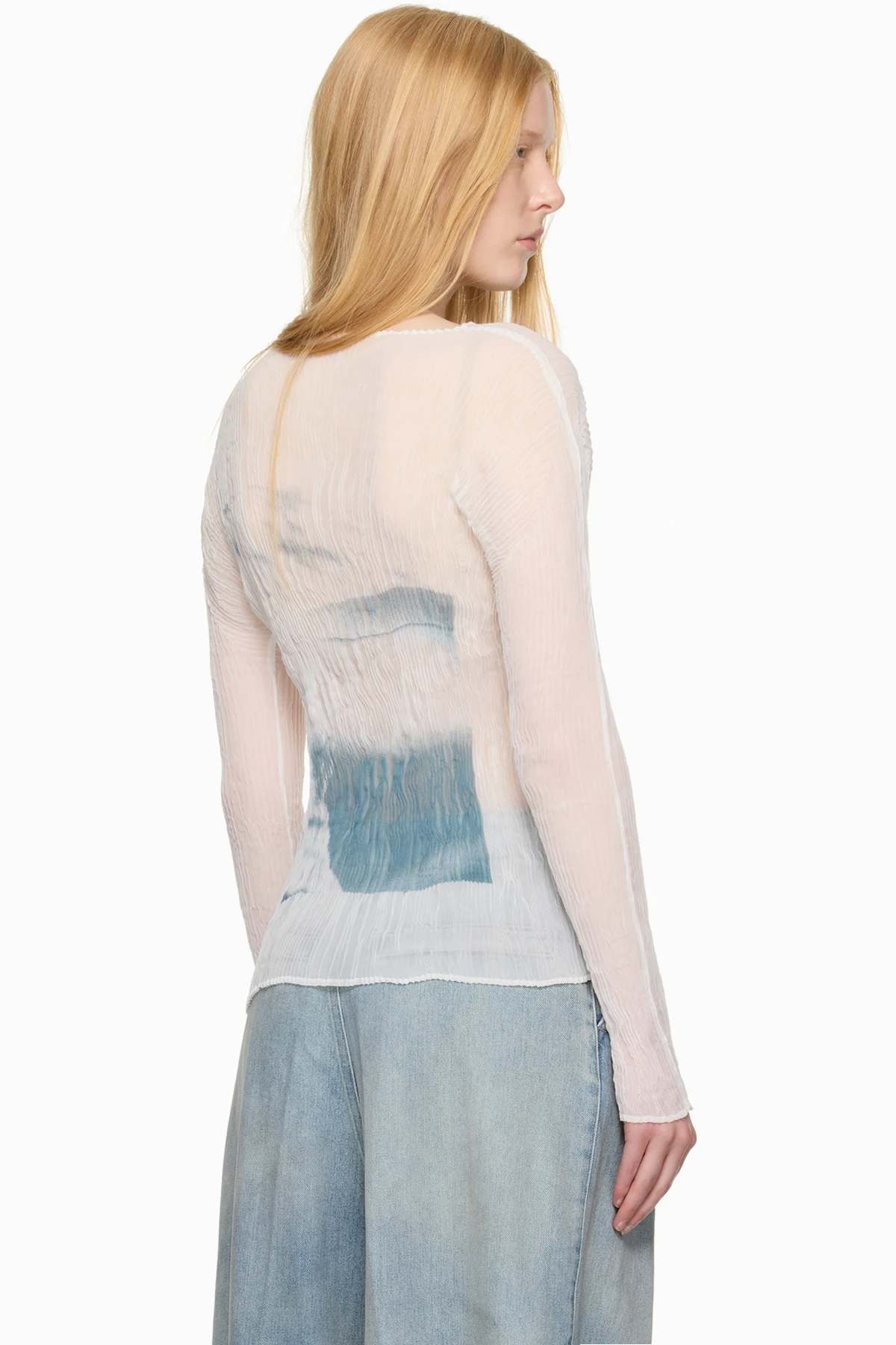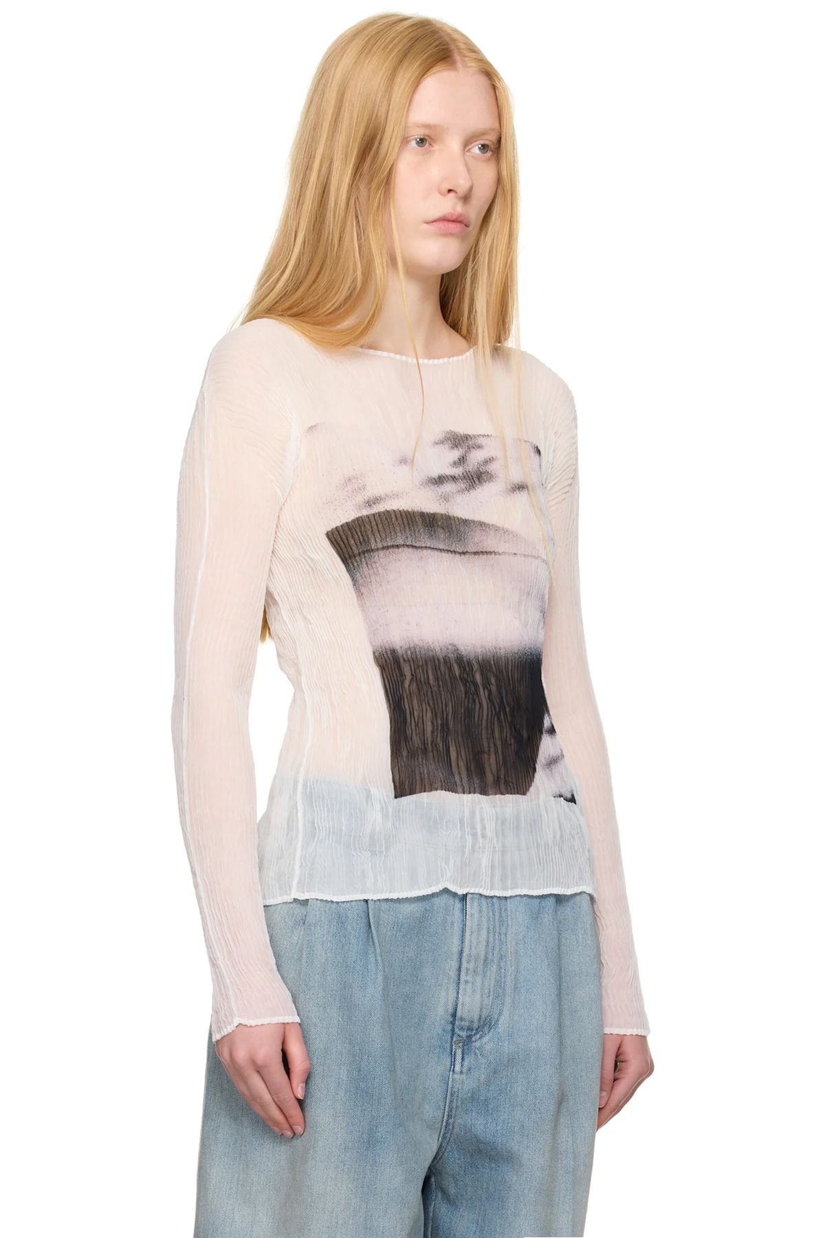Garment-pleated recycled polyester chiffon shirt.
