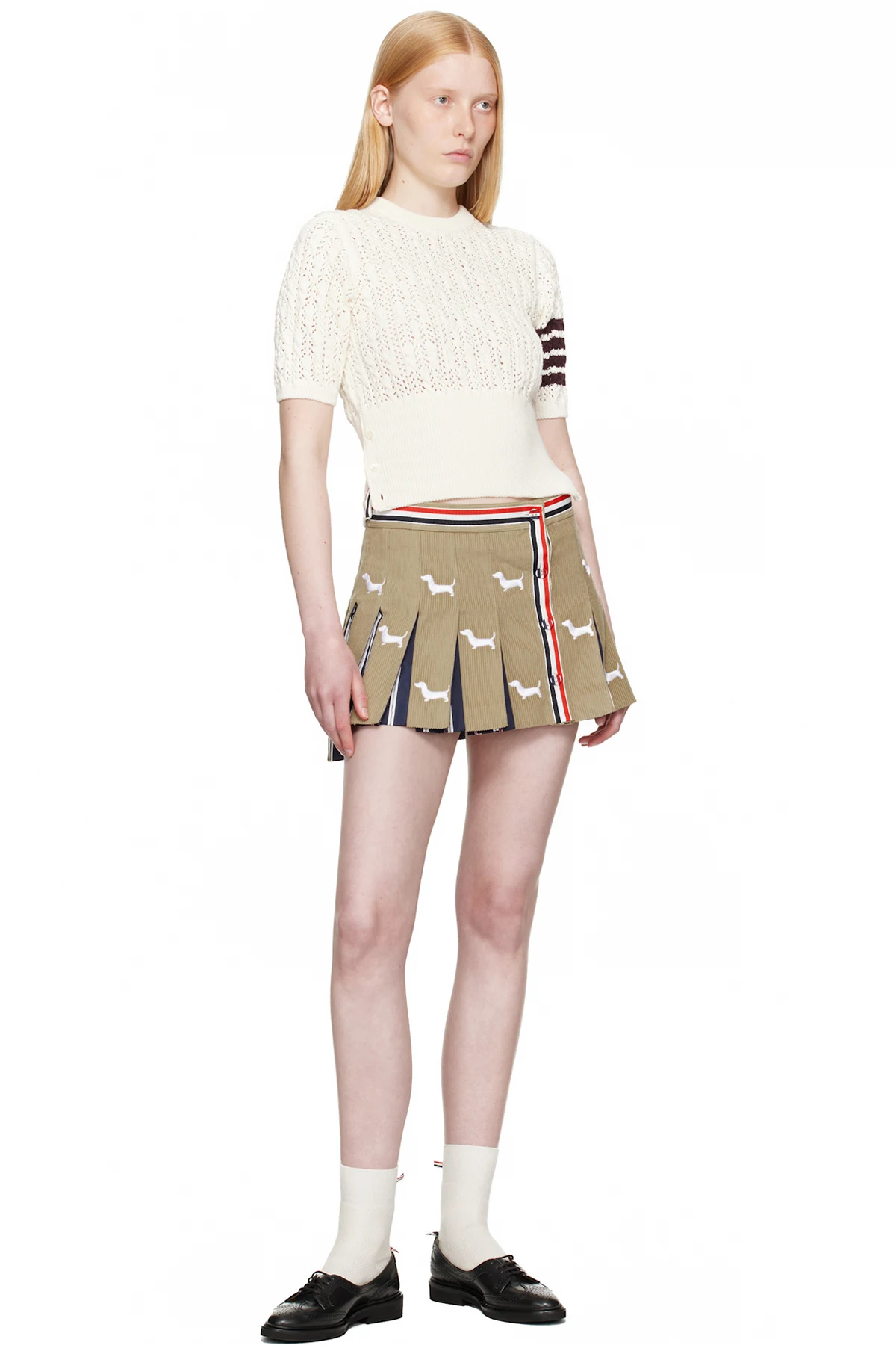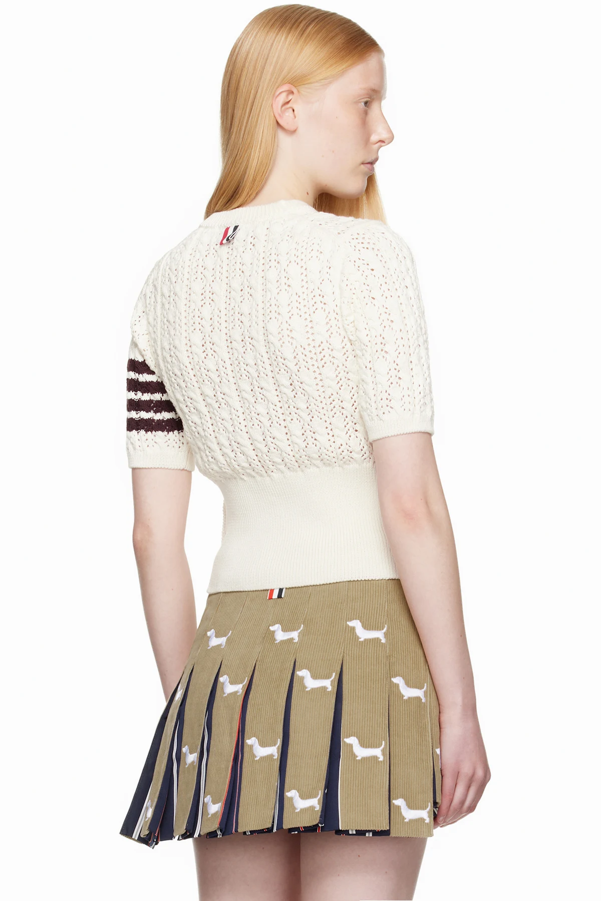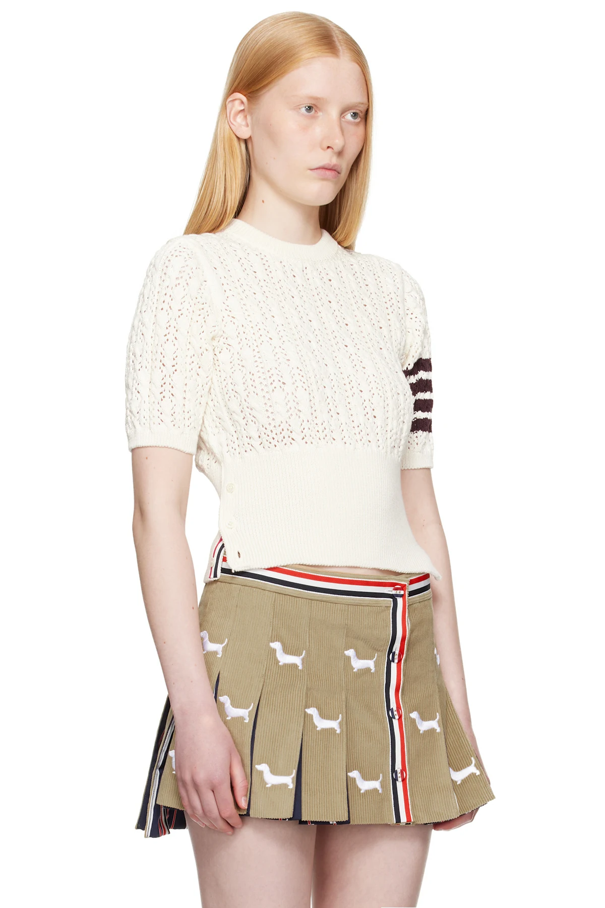 Pointelle-knit cotton sweater. Cable-knit detailing throughout.