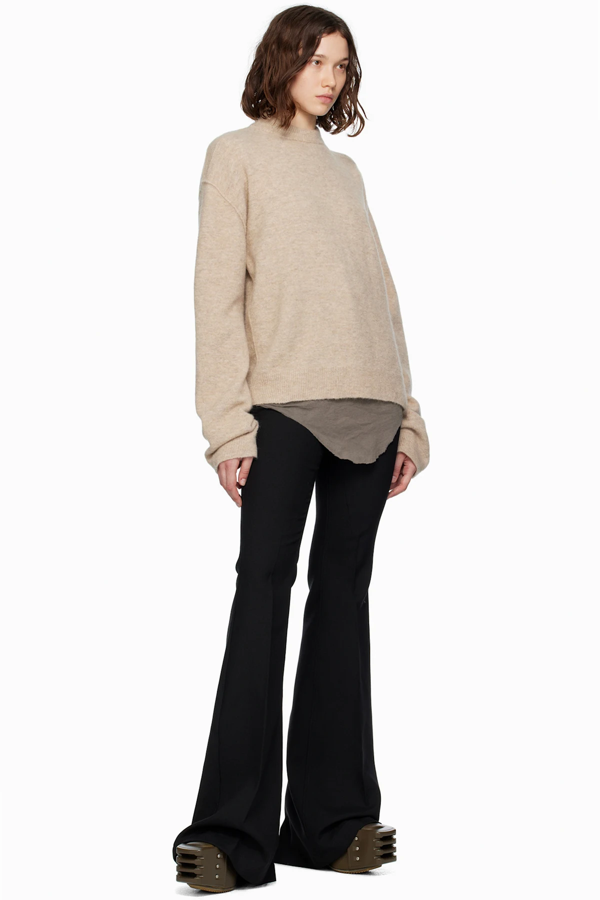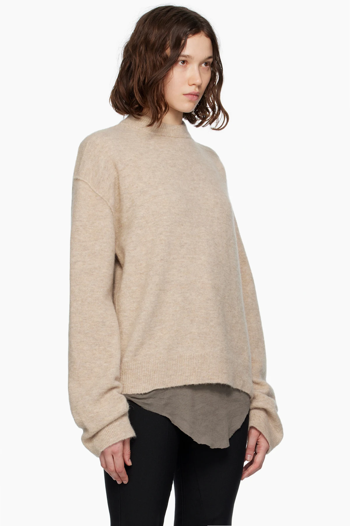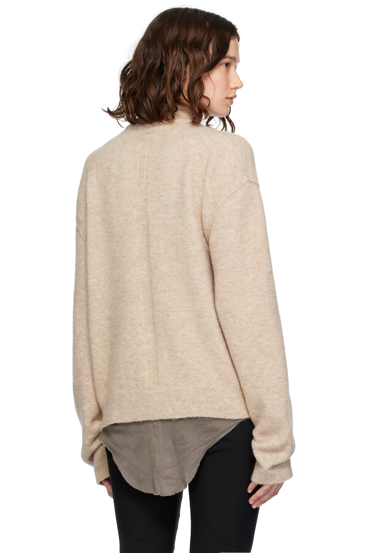 Knit stretch alpaca- and nylon-blend sweater.
