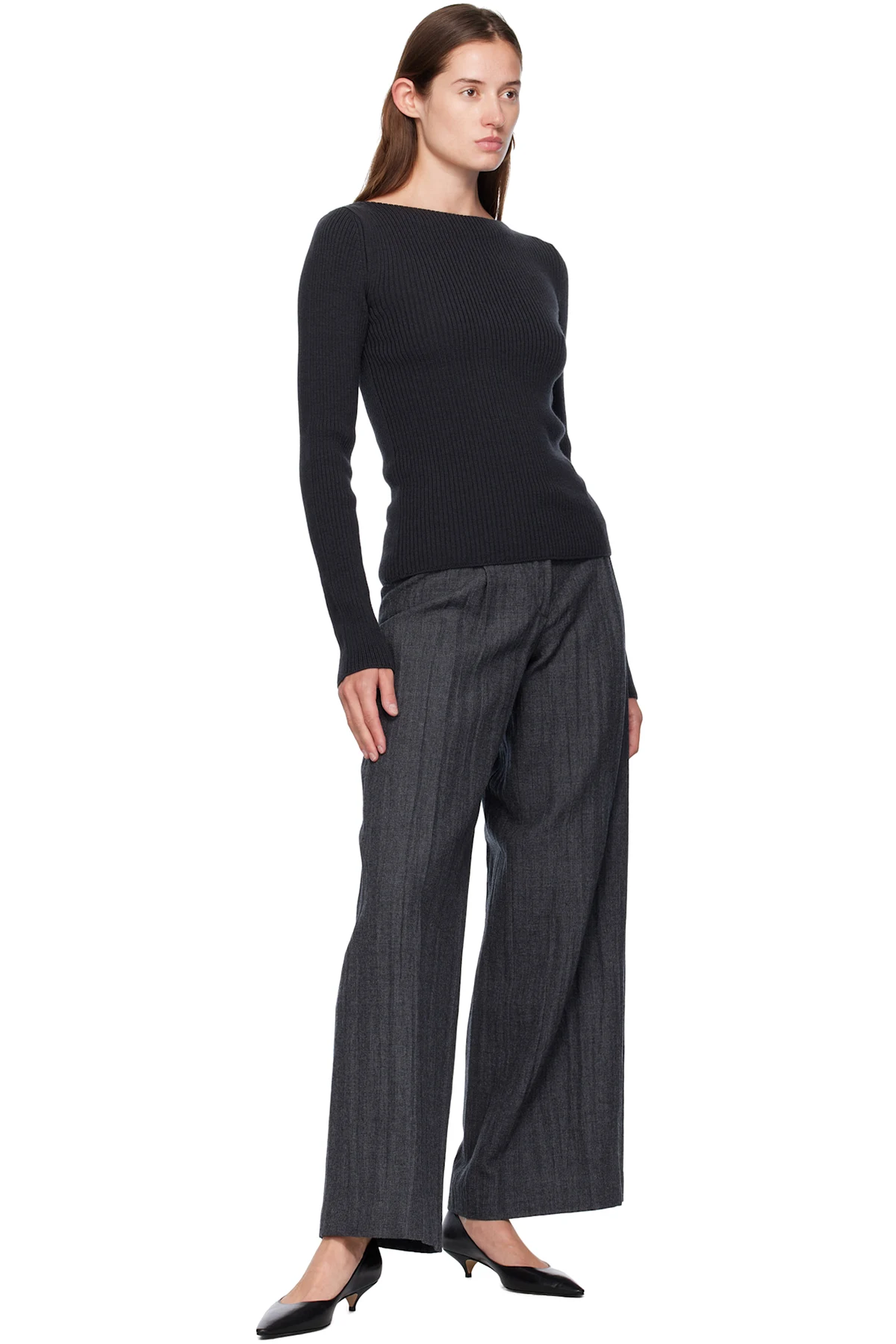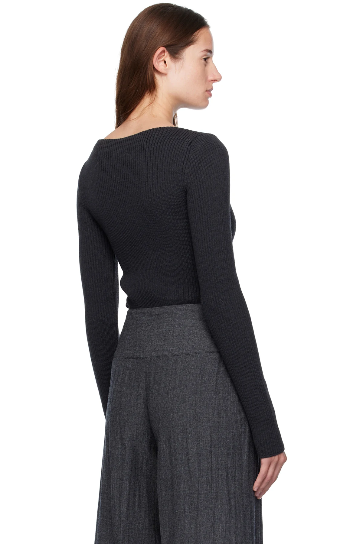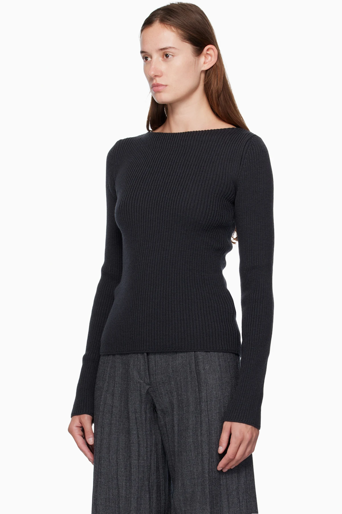 Rib-knit merino wool sweater. Hand-finished boatneck.