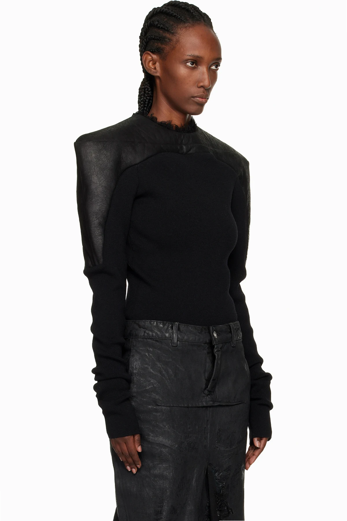Reversible grained lambskin and rib-knit stretch virgin wool-blend sweater.