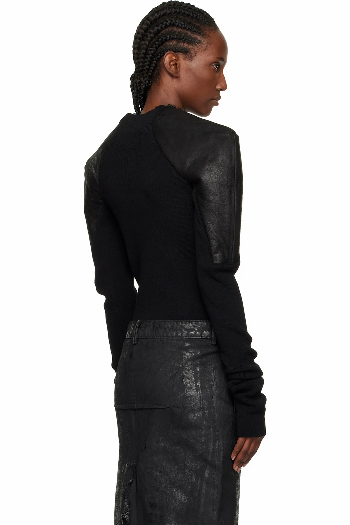 Body 1: 96% virgin wool, 3% polyamide, 1% elastane. Body 2: 100% lambskin.