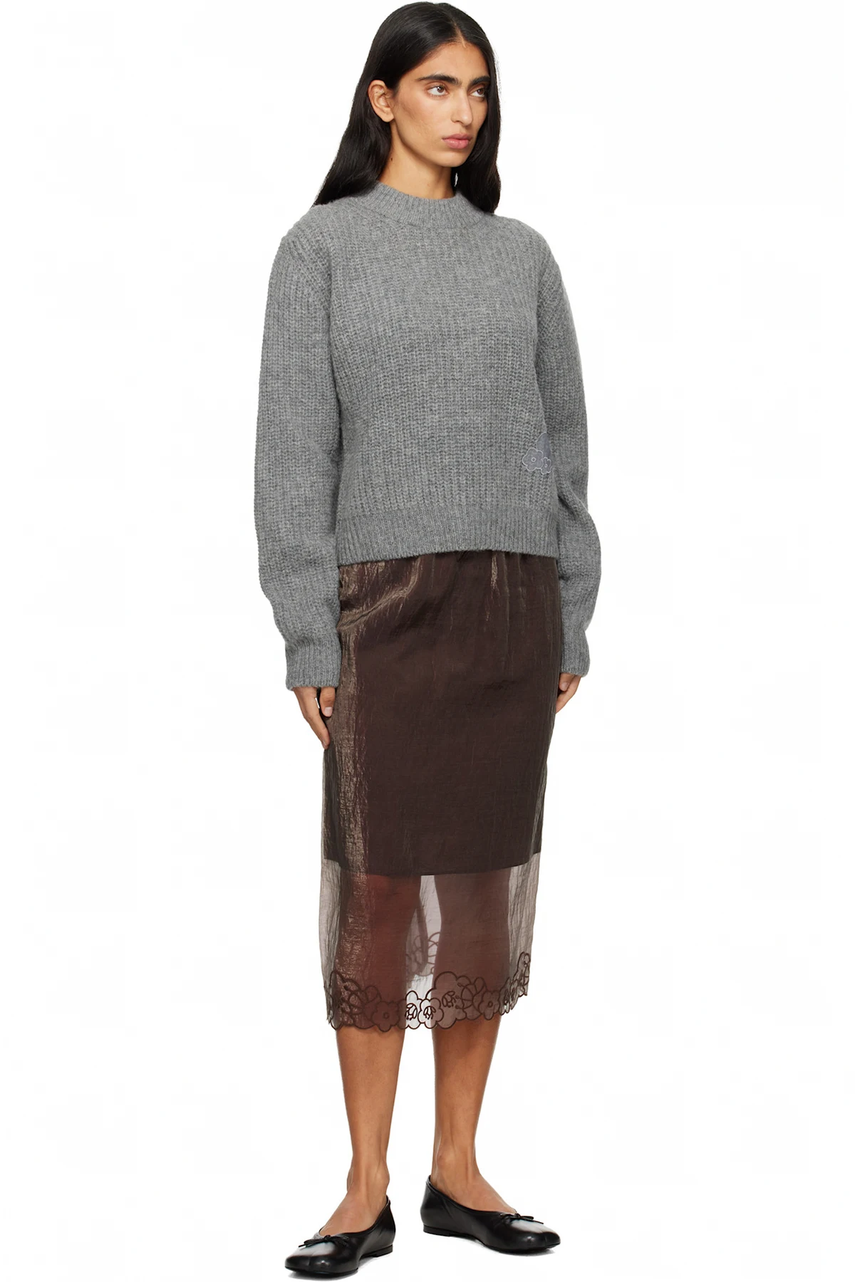 · Floral appliqué at front