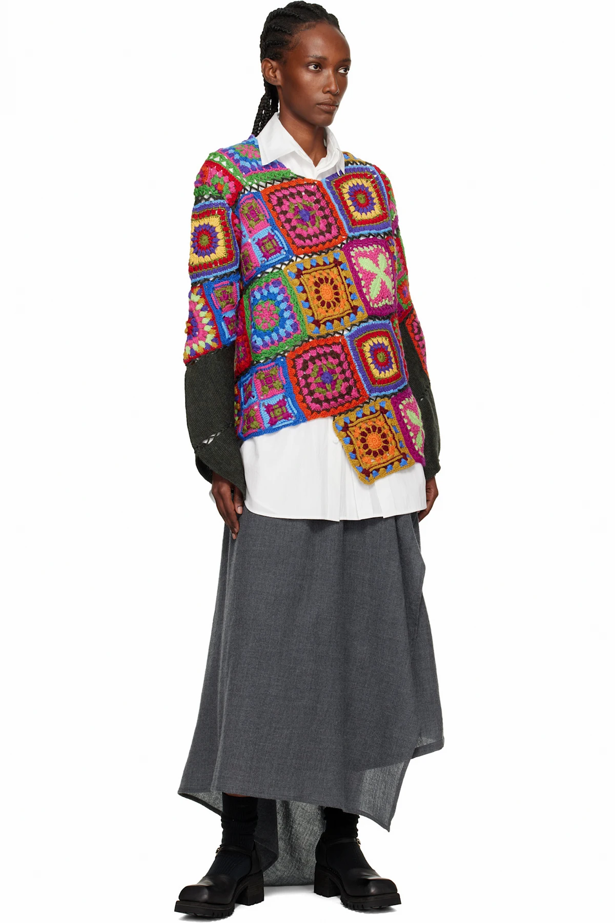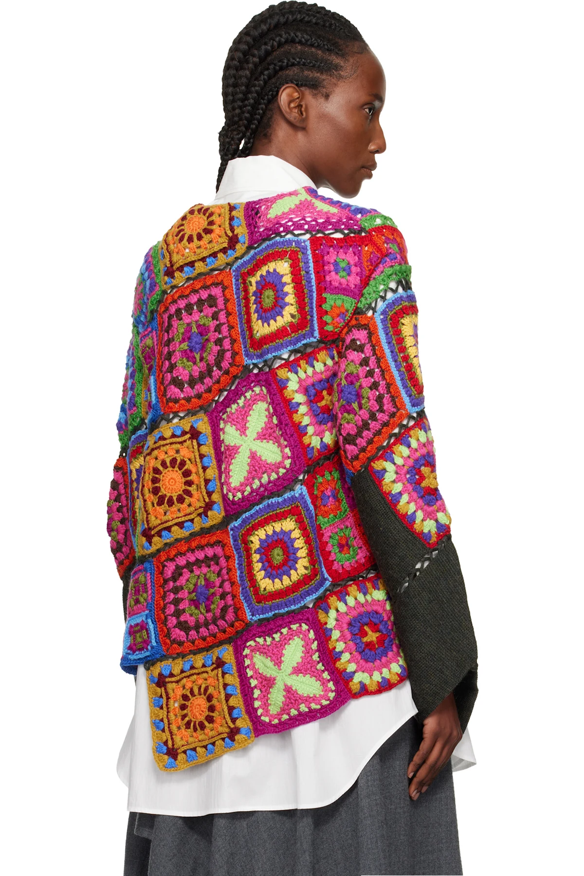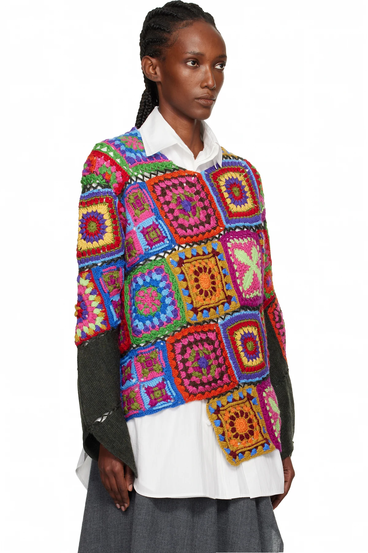 Multicolor Multi Fabric Crochet Stitch Motif Knit Sweater