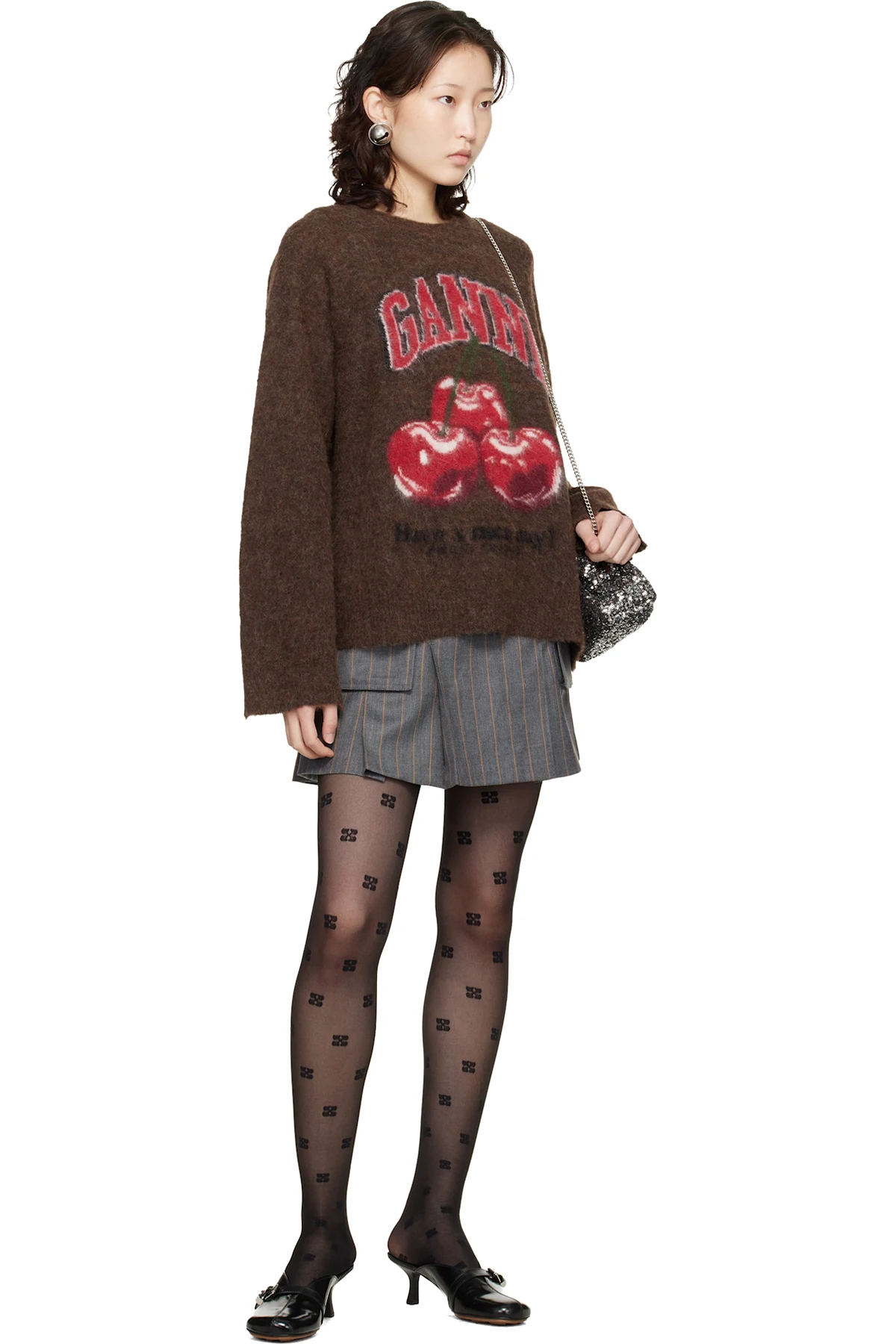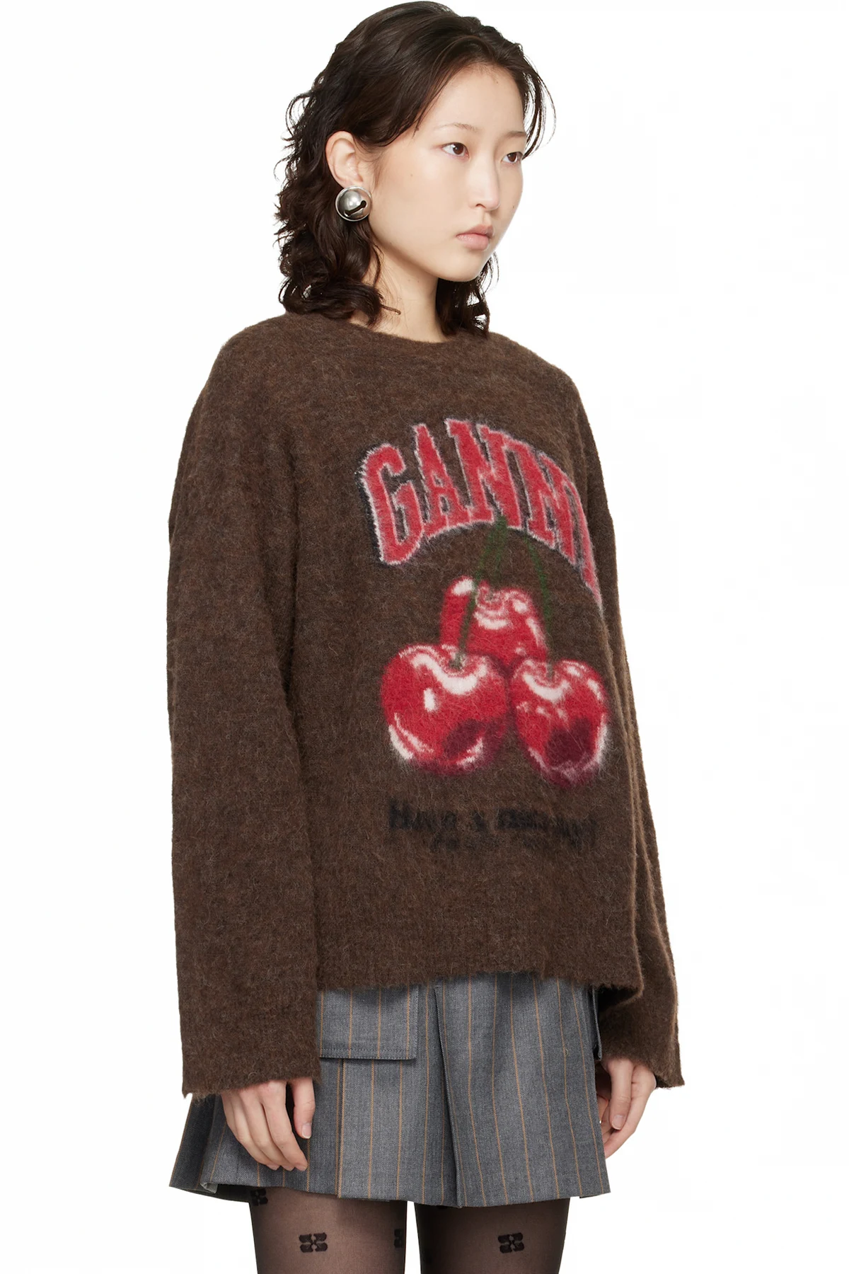 Brown Brushed Alpaca Graphic Oversized Sweater