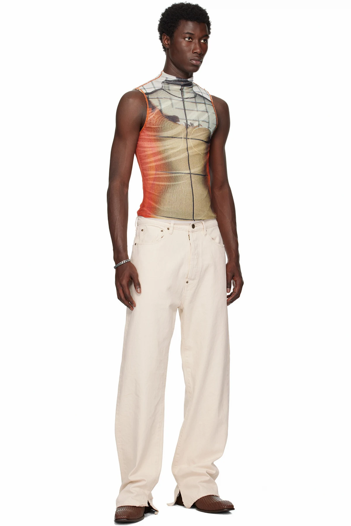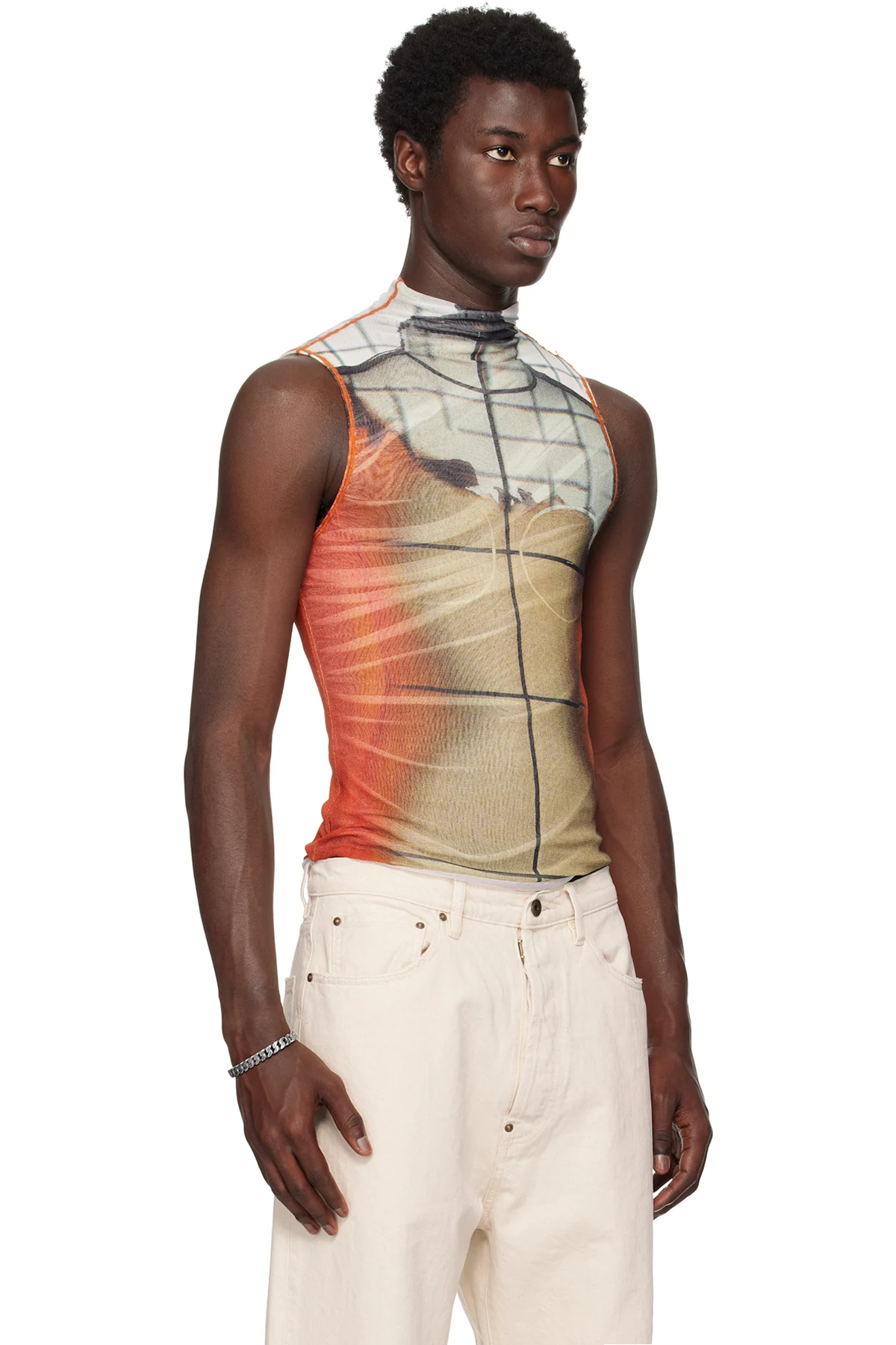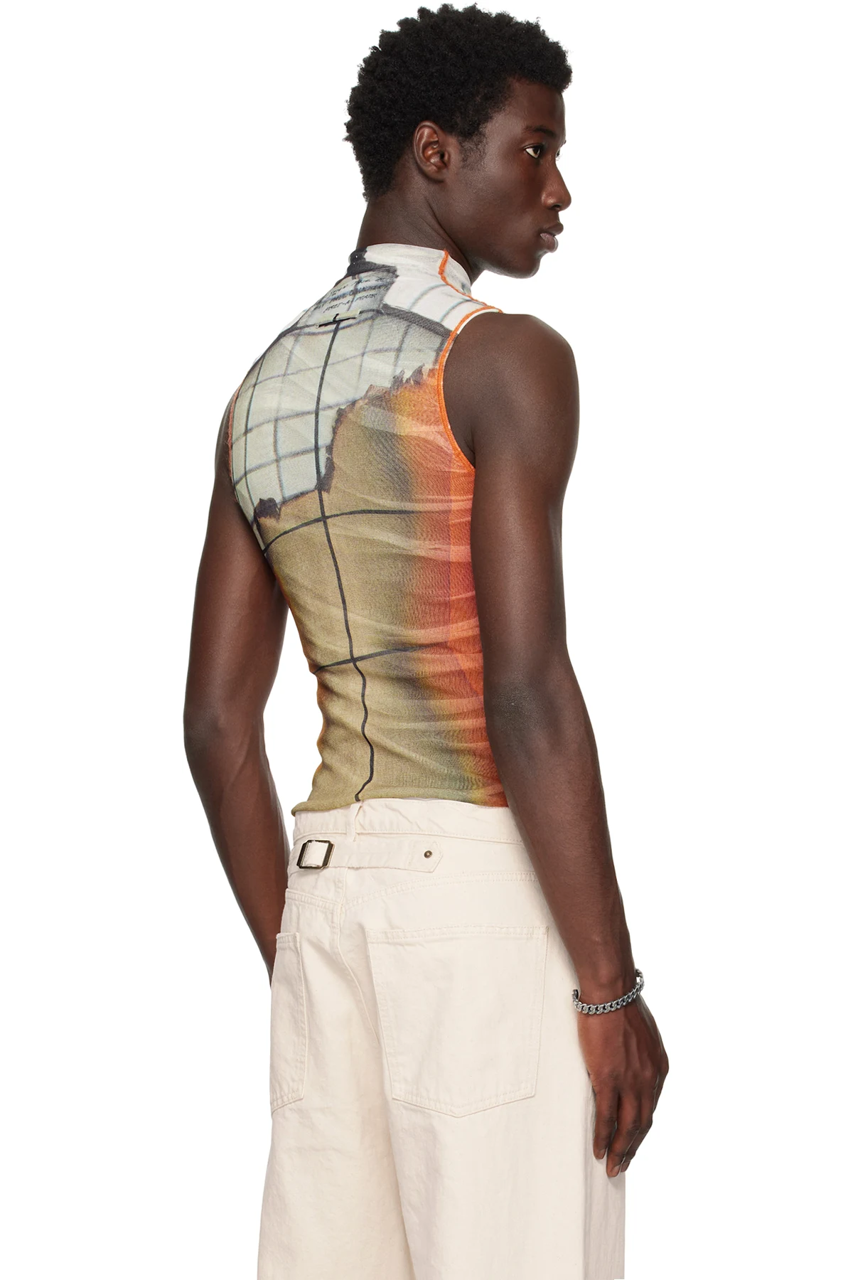 Double-faced nylon mesh tank top.
