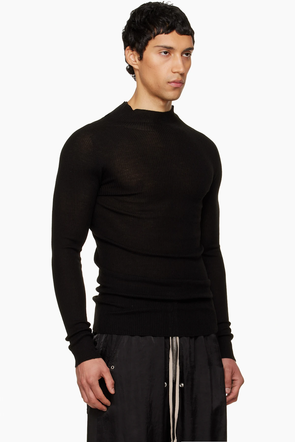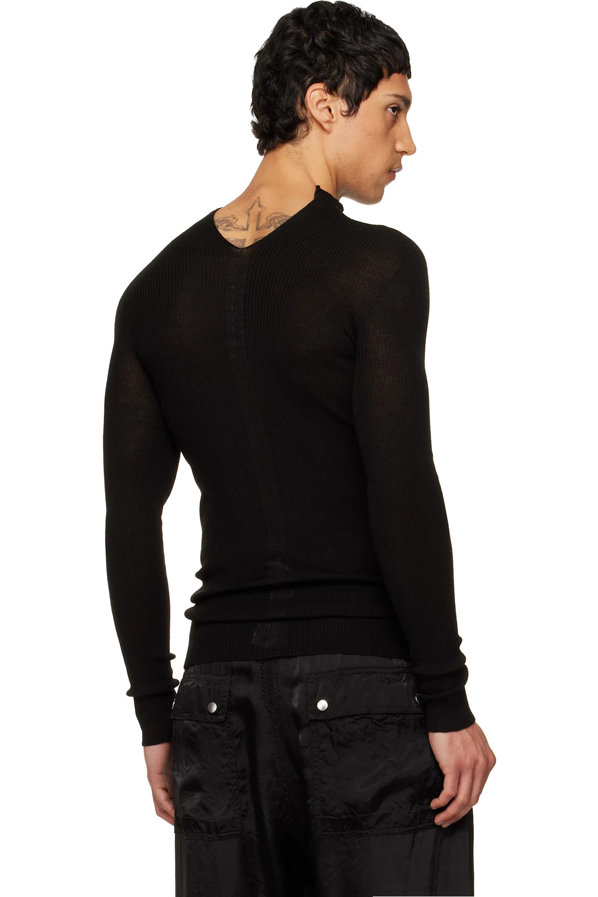 Black Temple Ribbed Tabard Turtleneck