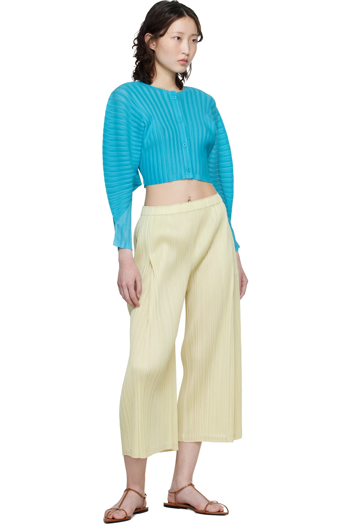 Garment-pleated tricot cardigan.
