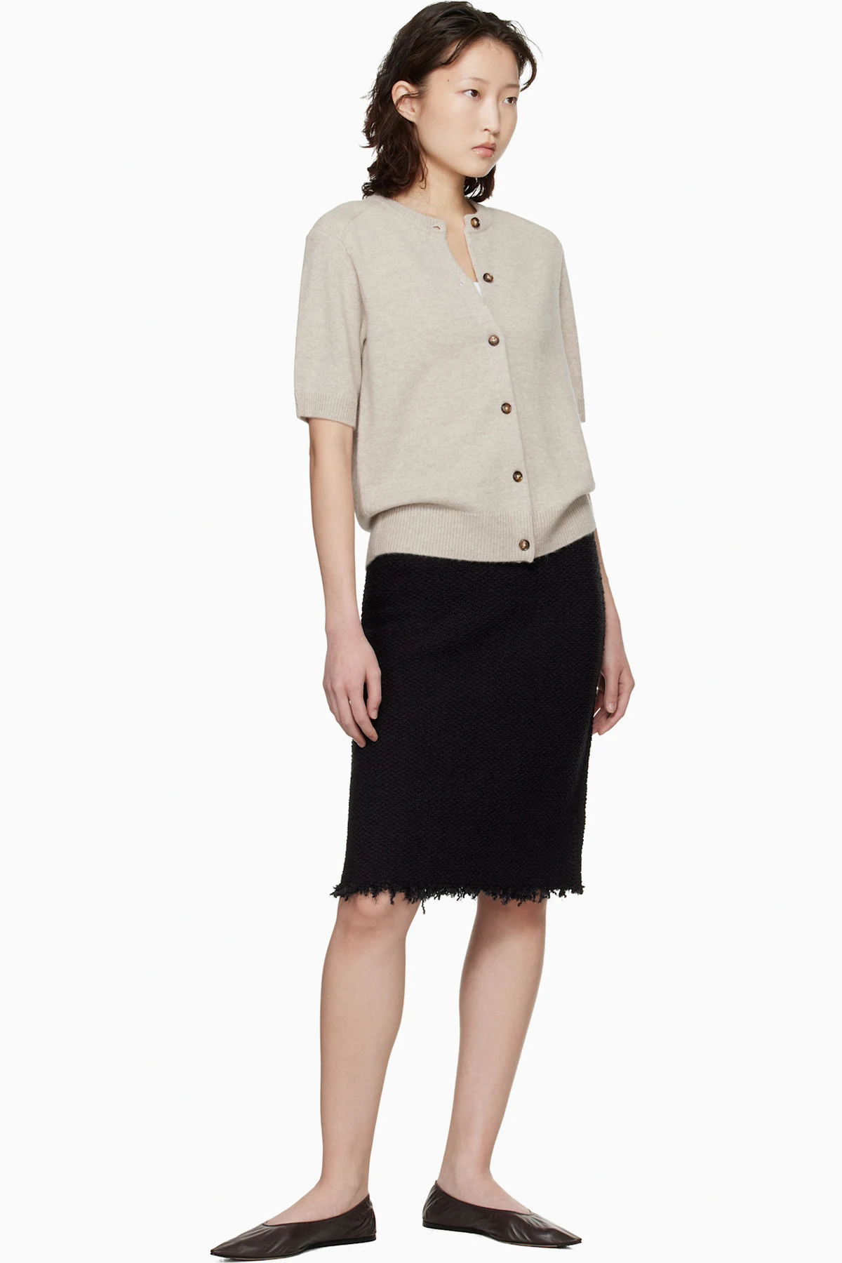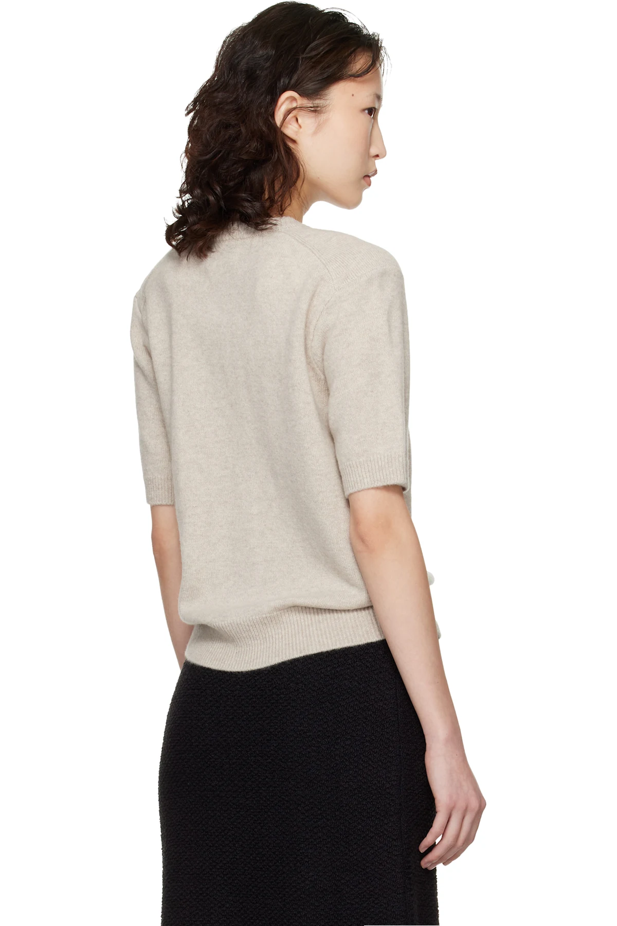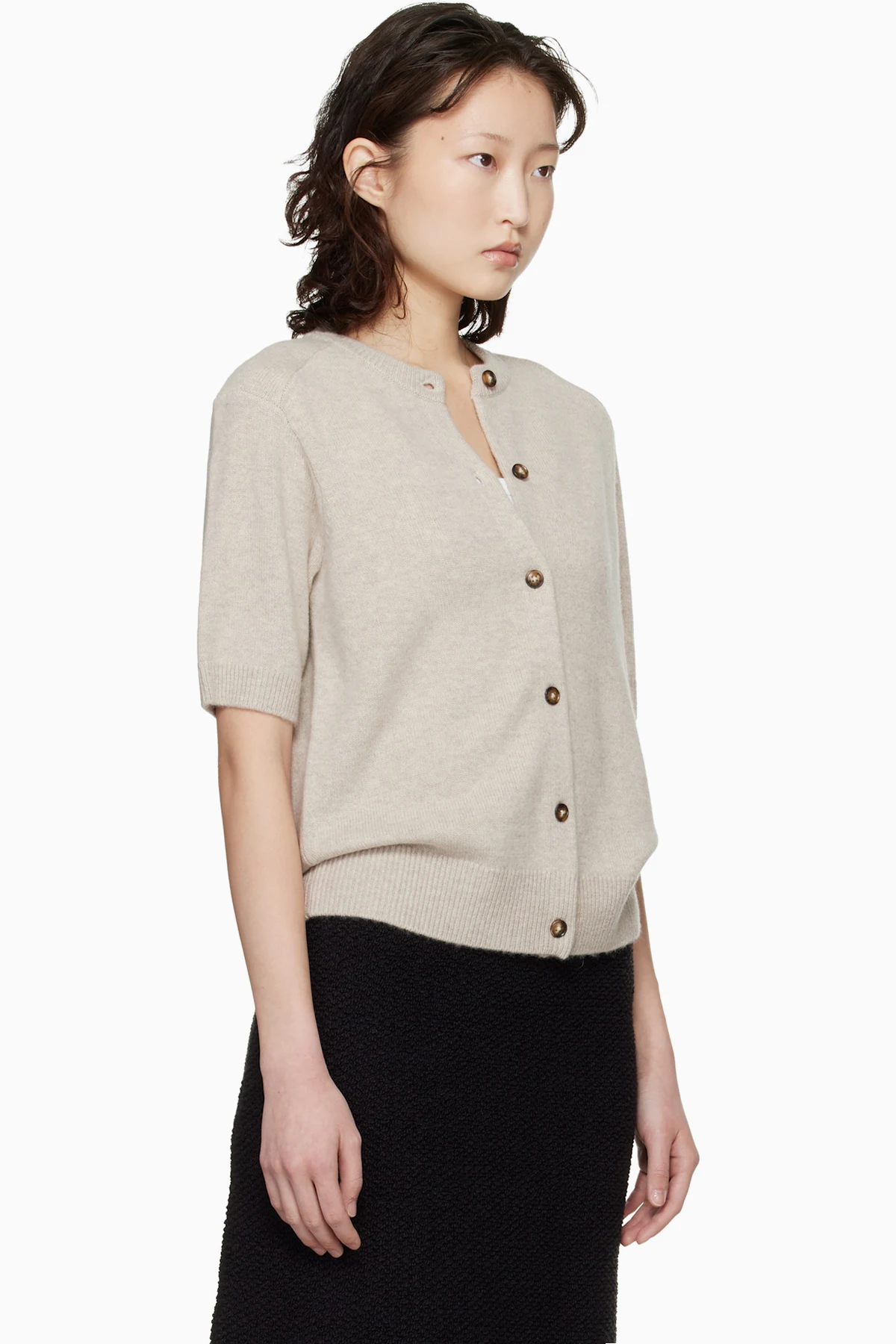 Beige Jodi Short-Sleeve Cashmere Cardigan