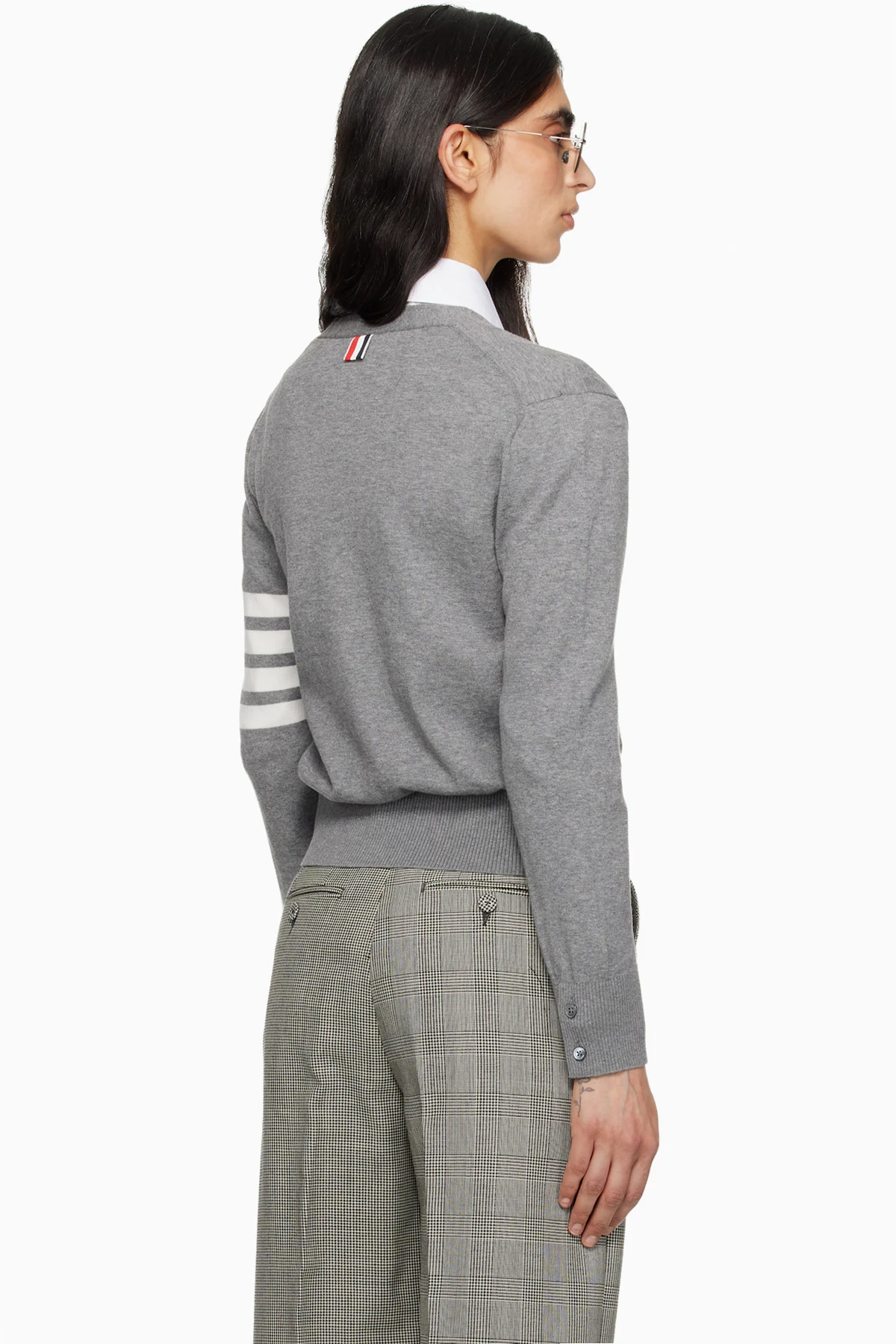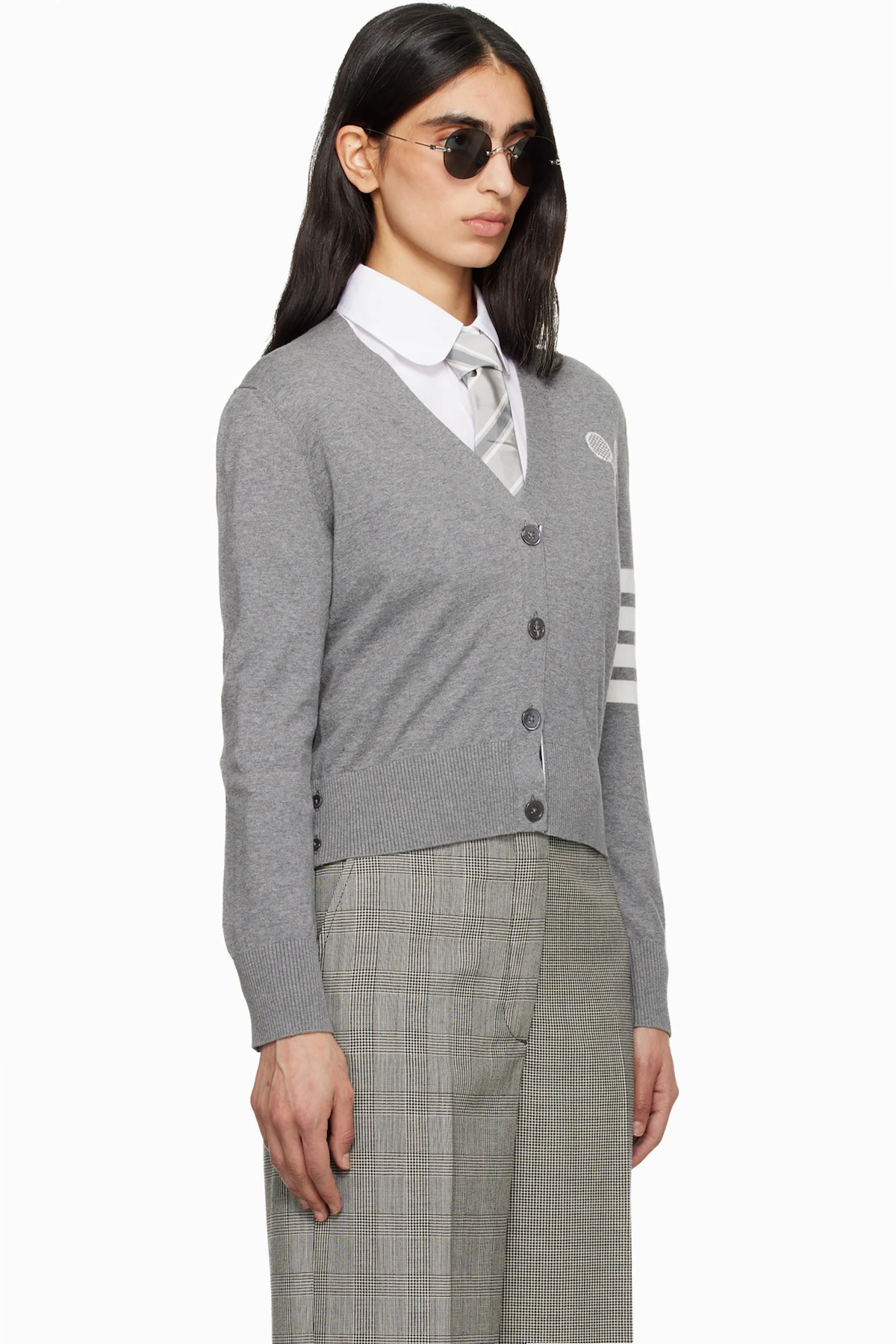 Gray Tennis Racquets 4-Bar Cotton V-Neck Cardigan