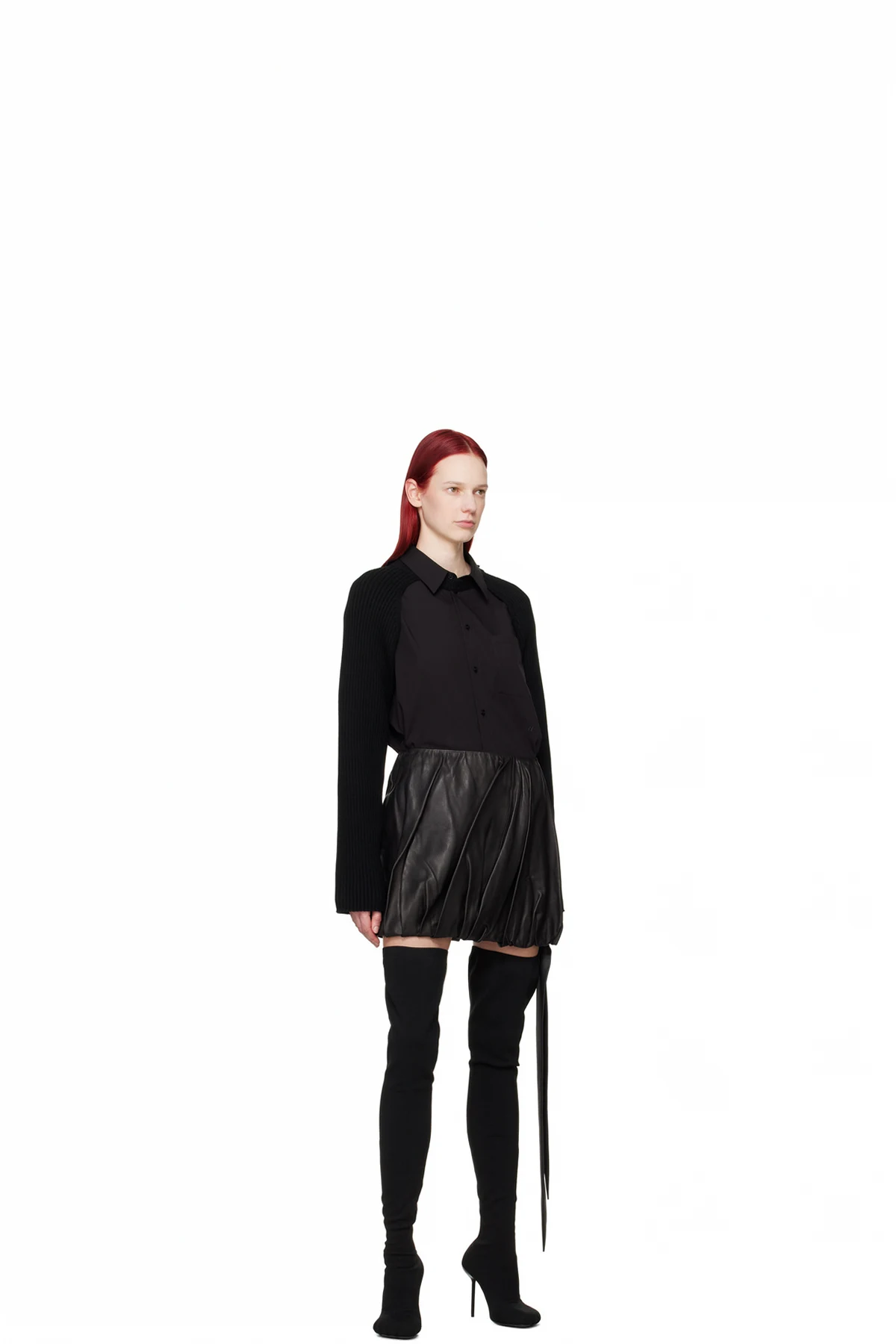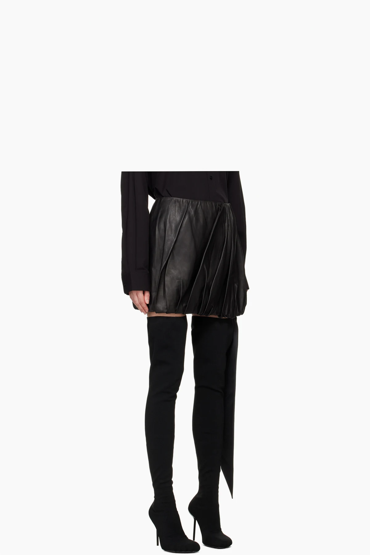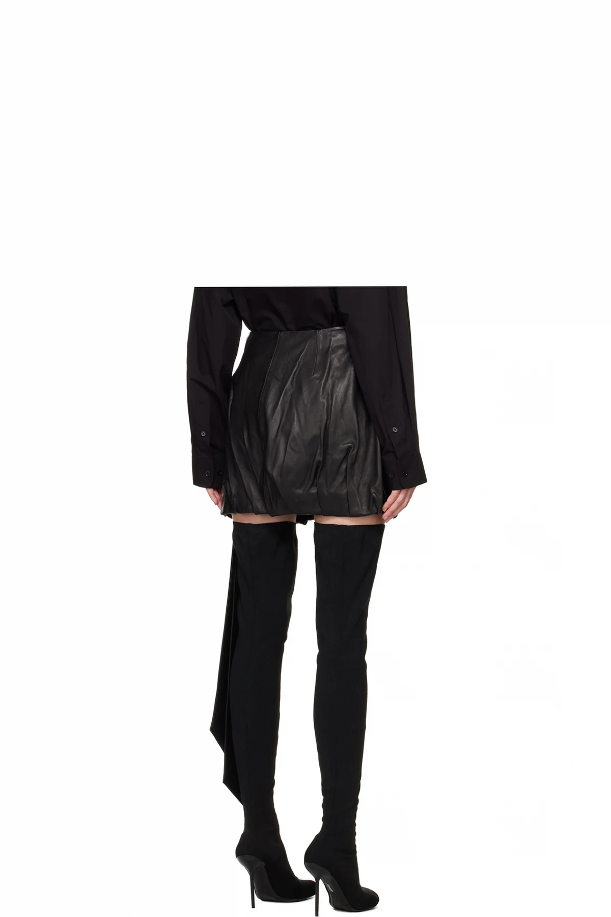 Black Ballooned Leather Miniskirt