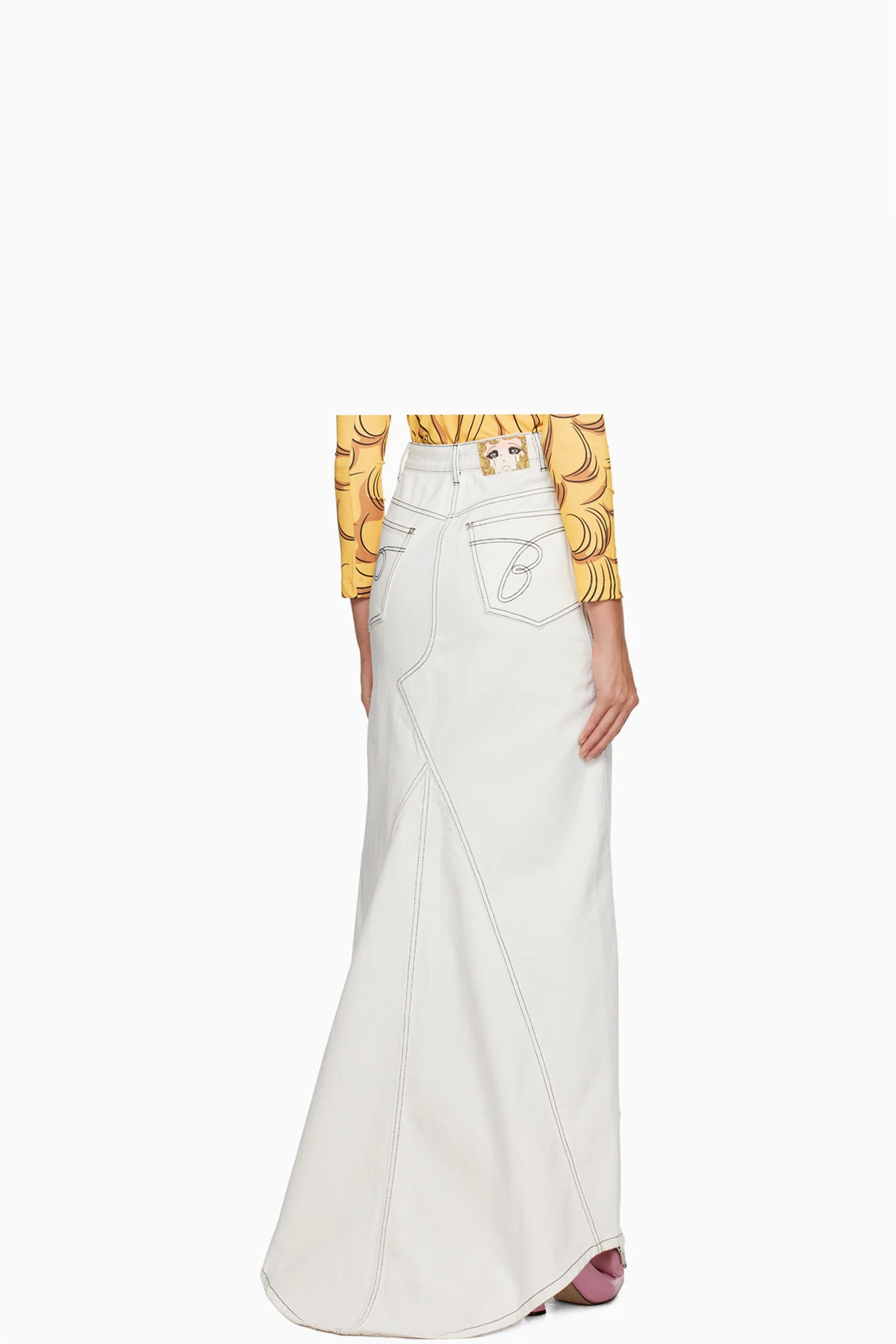 White Vented Denim Maxi Skirt