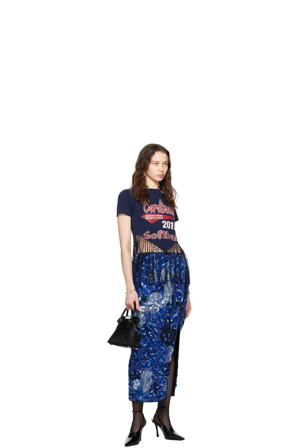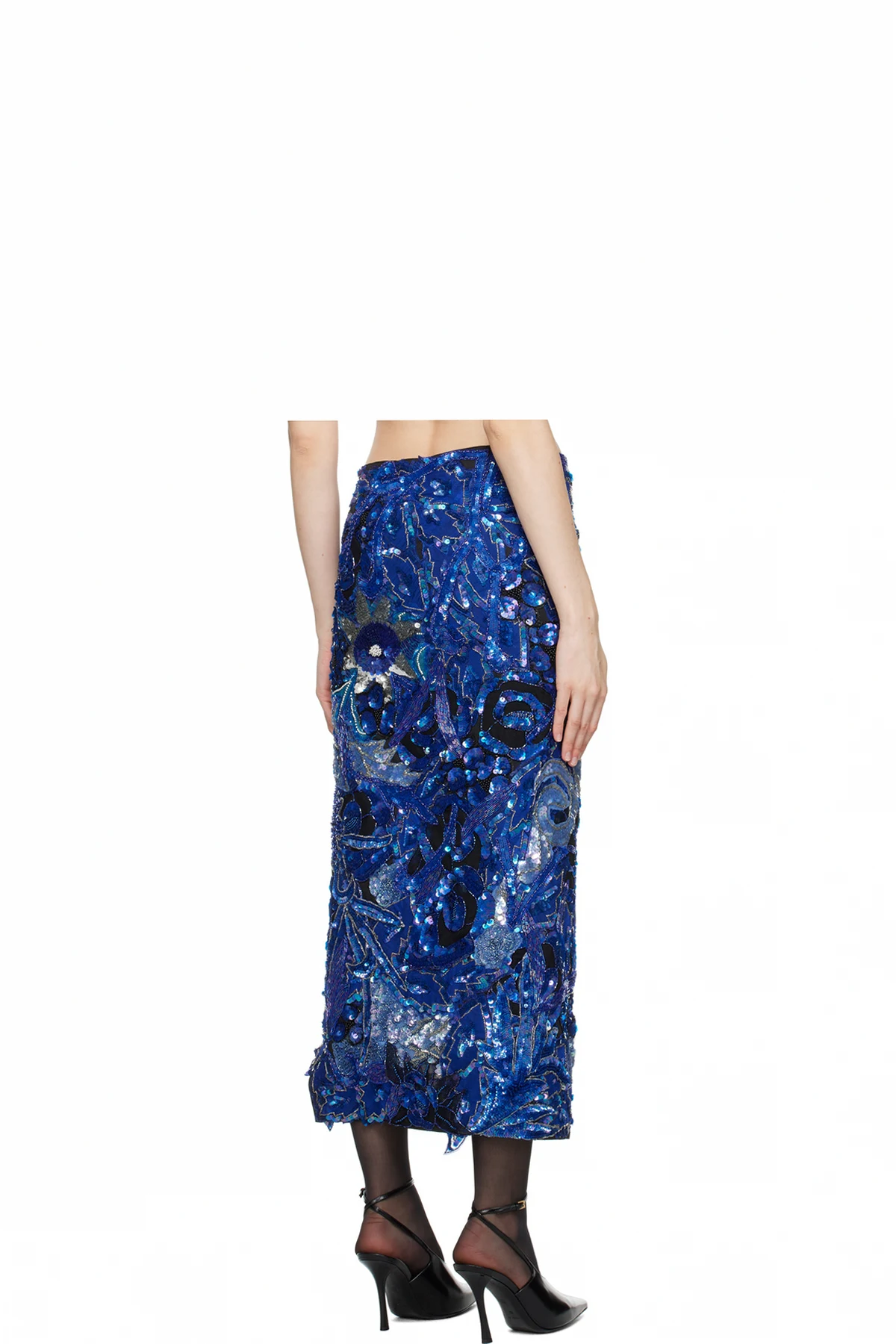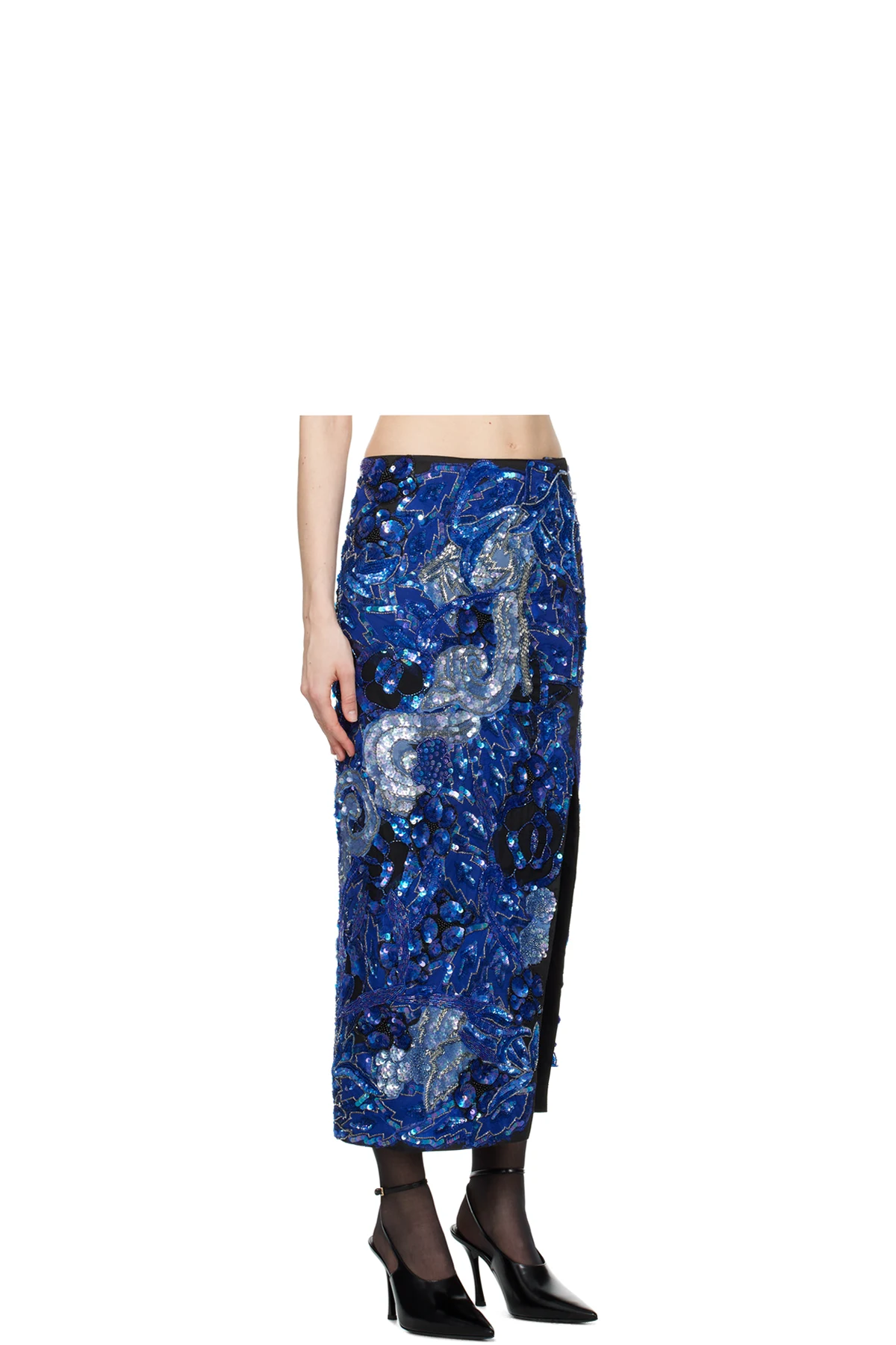 Cotton twill skirt. Beaded and sequinned detailing throughout.