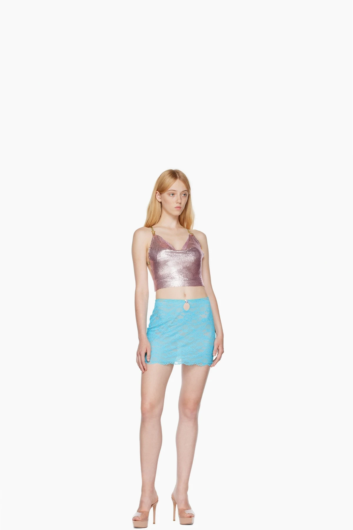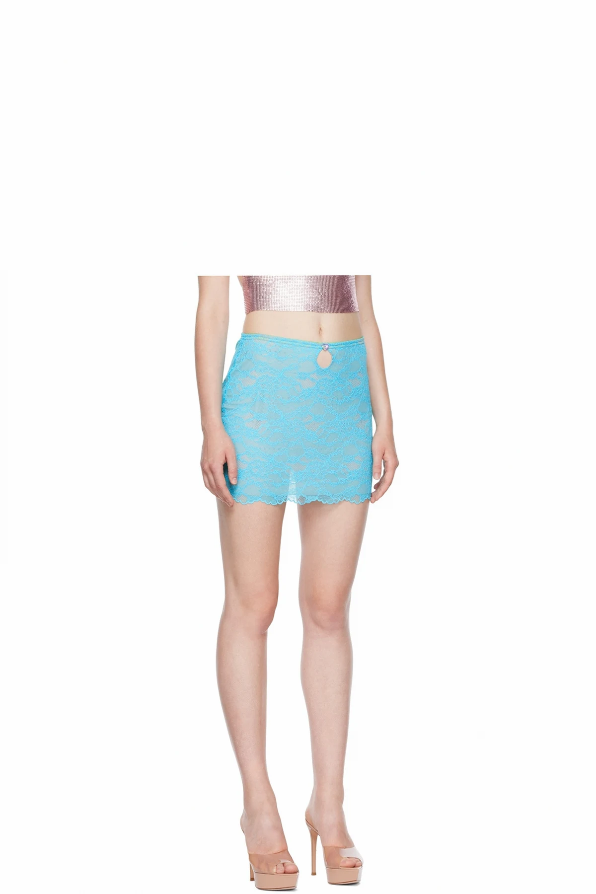 Sheer stretch nylon lace skirt.