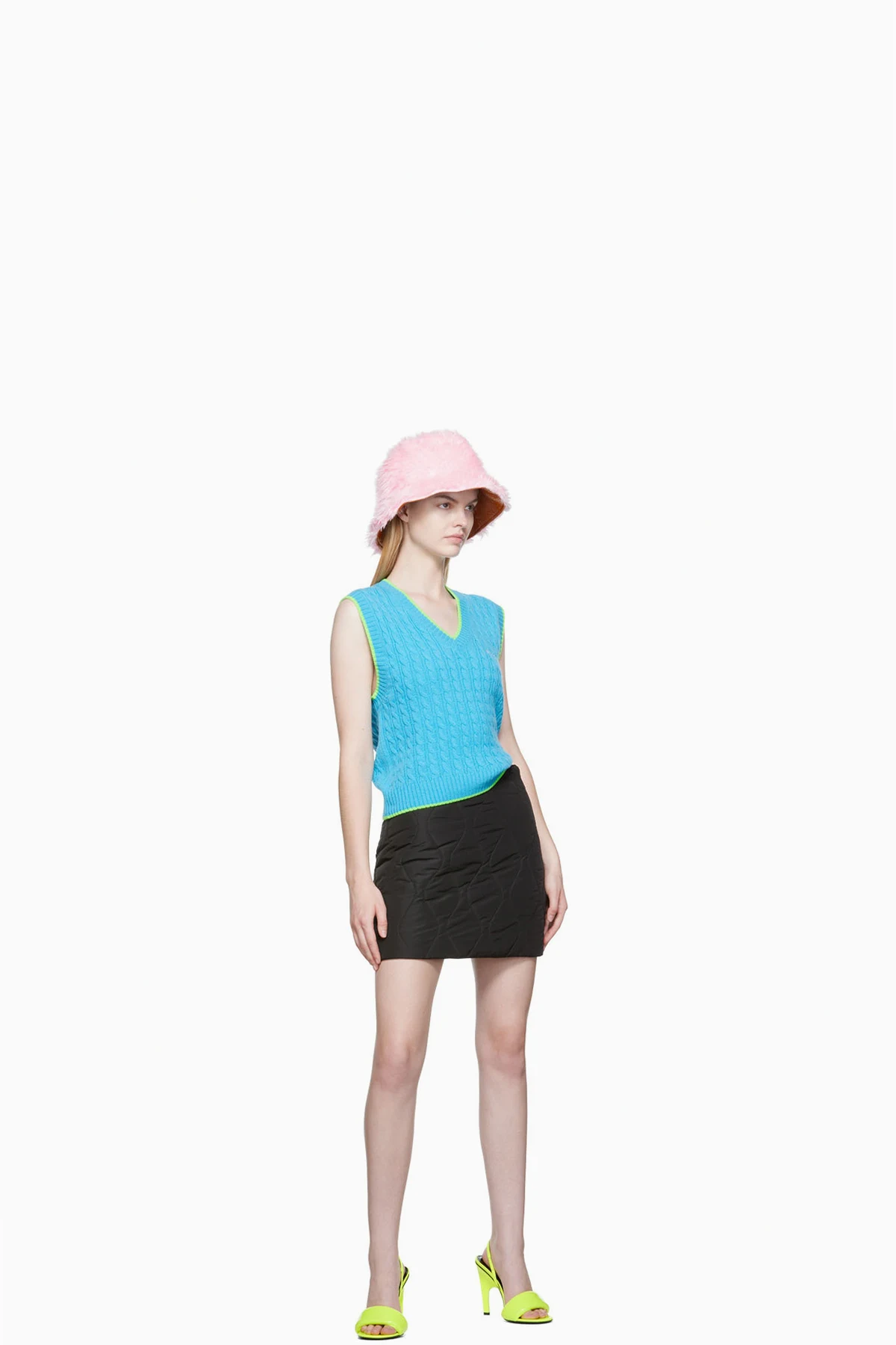 Quilted padded polyester taffeta skirt.