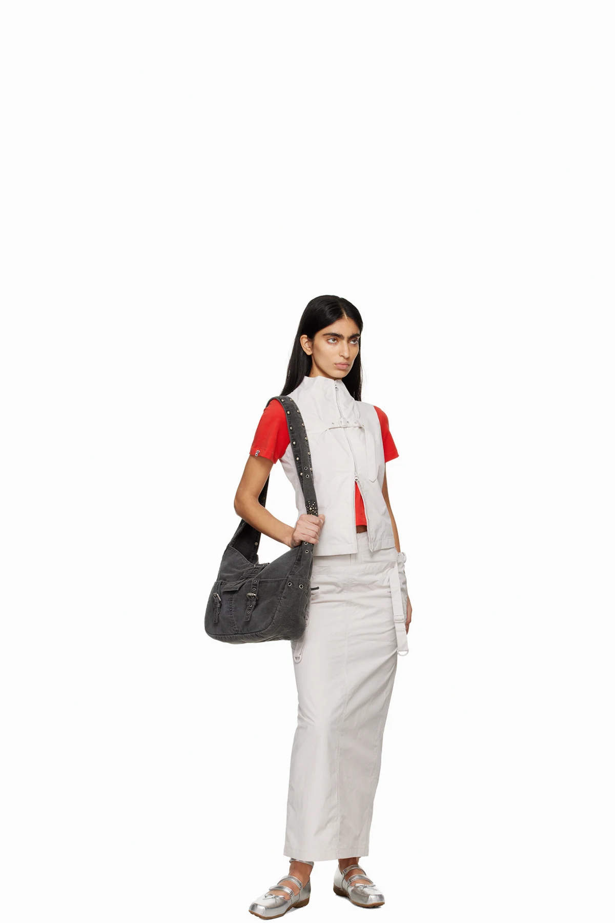 Gray Layered Maxi Skirt