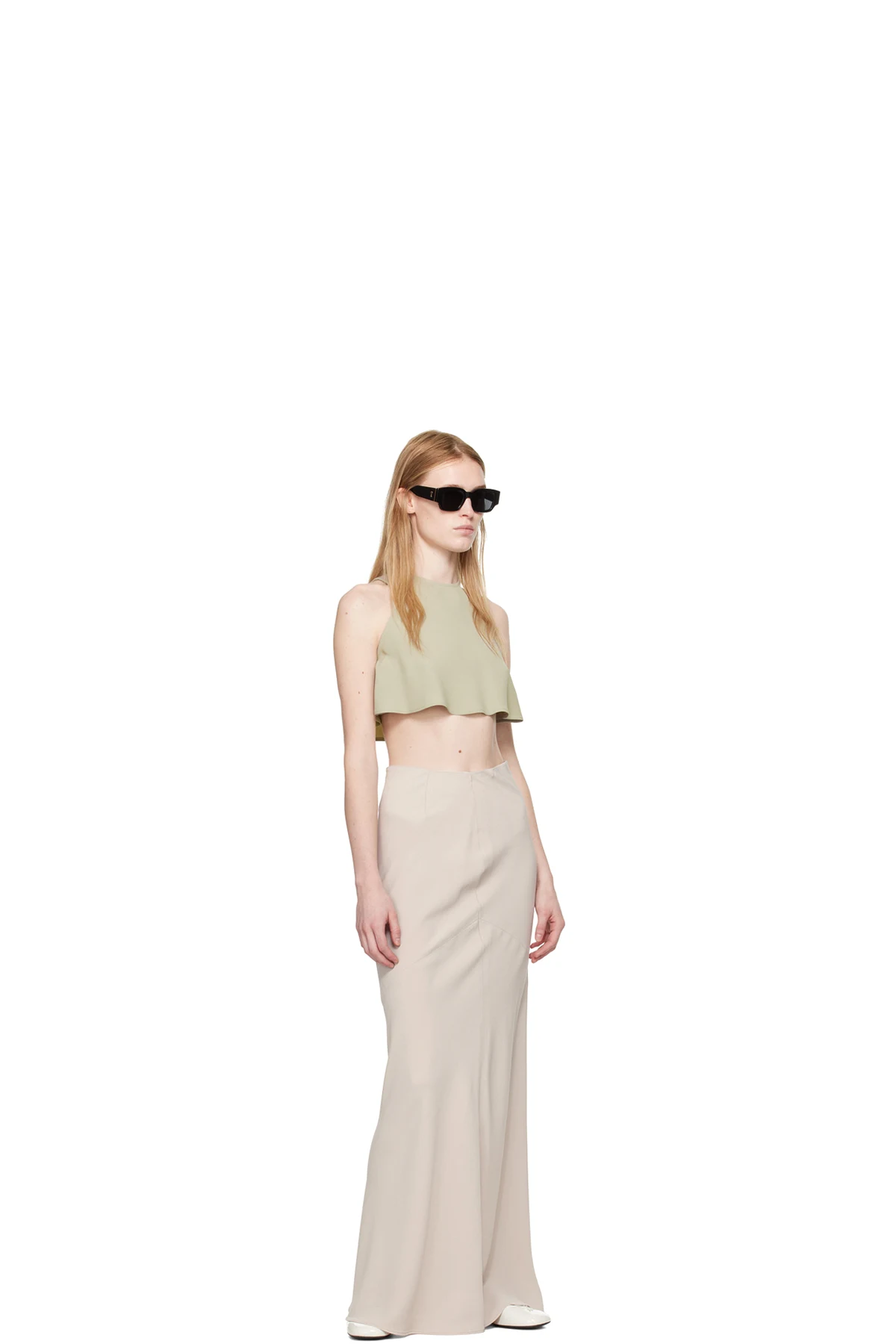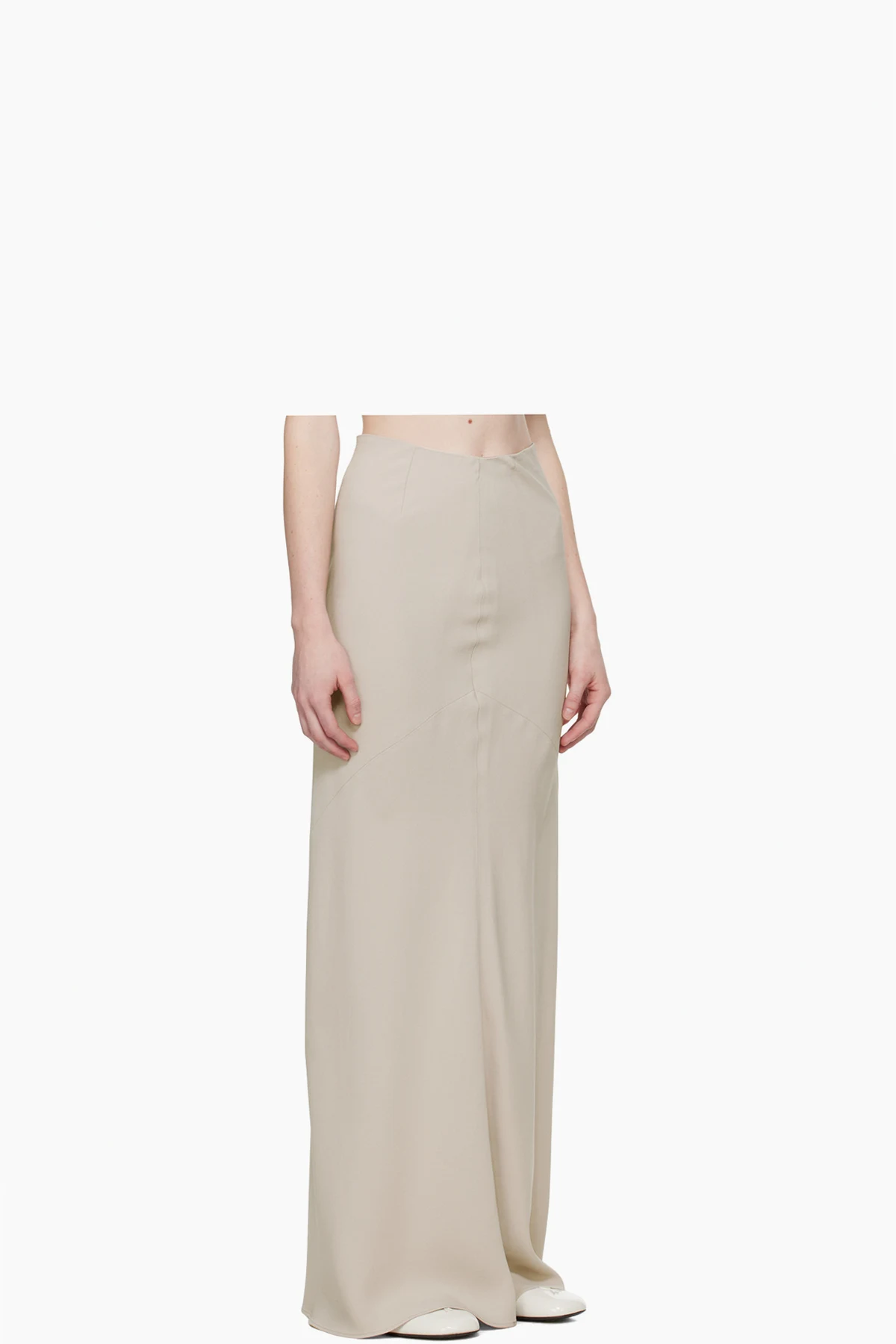 Beige Bias-Cut Maxi Skirt