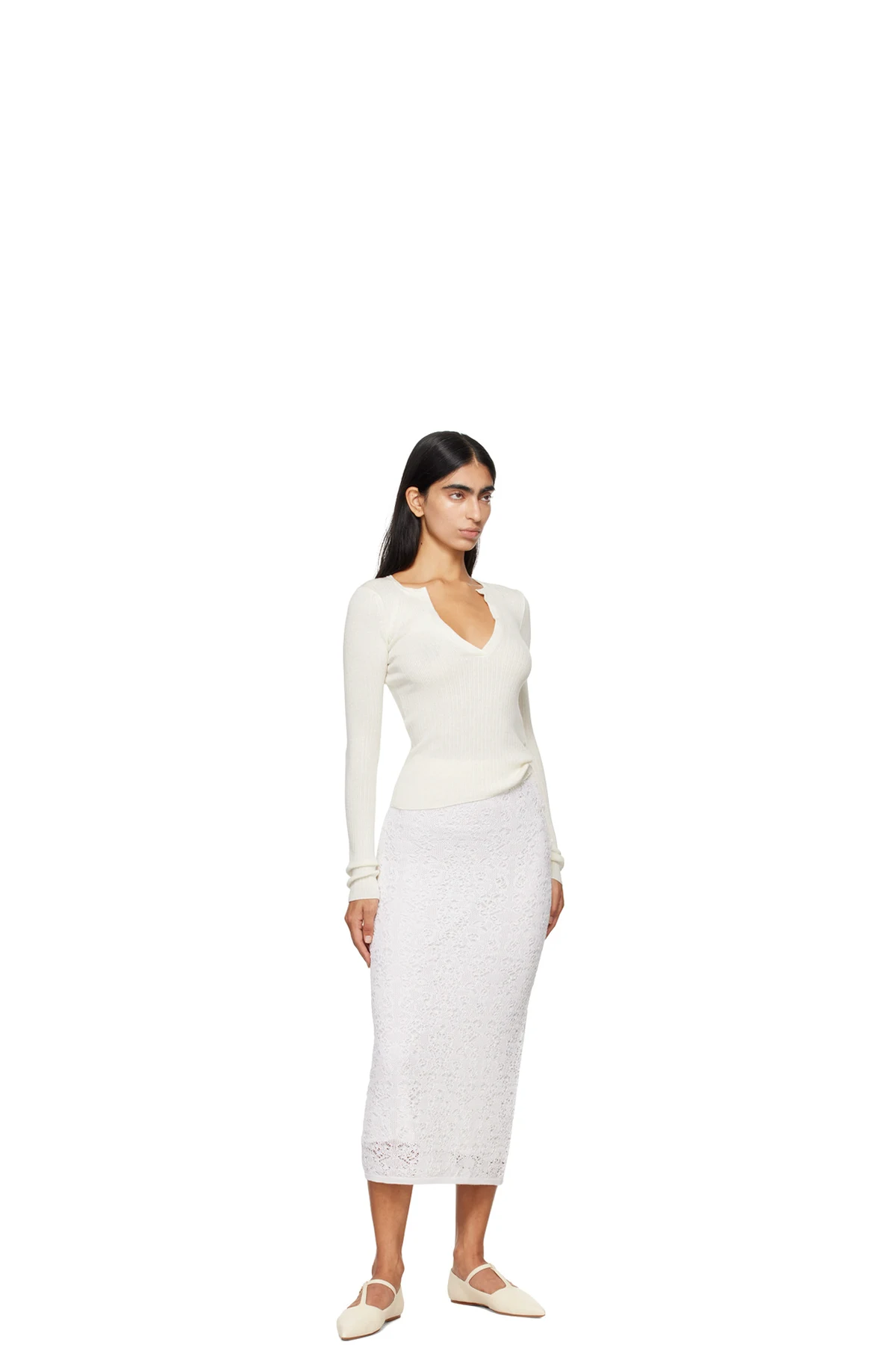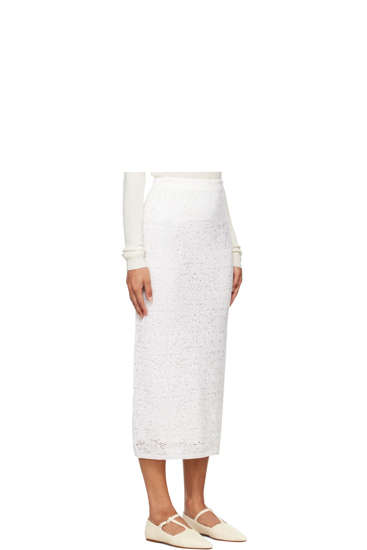 Pointelle knit silk skirt.