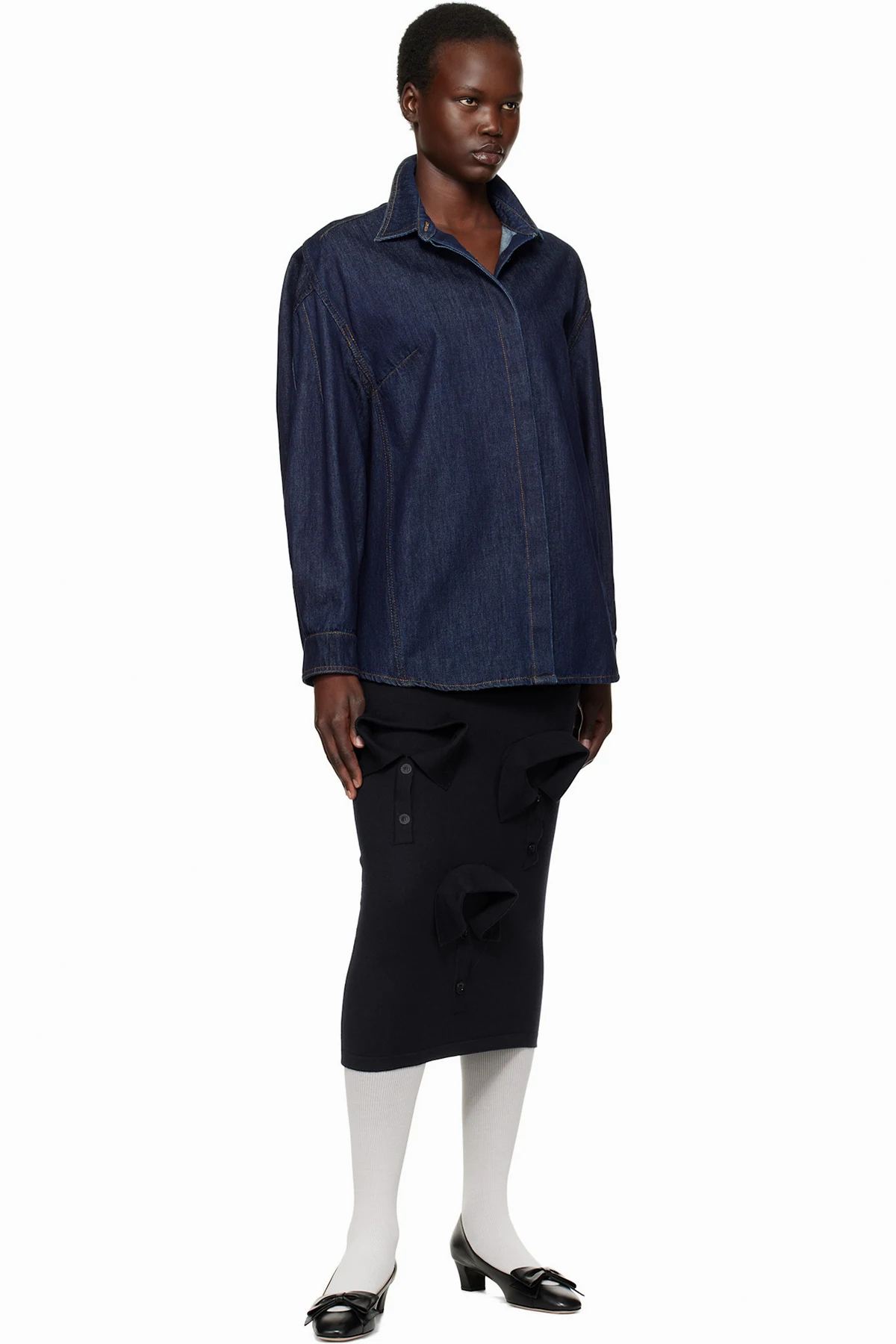 Navy Multi Collars Knitted Midi Skirt