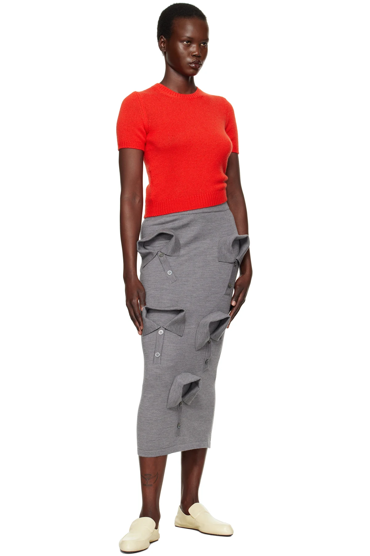 Knit virgin wool maxi skirt.