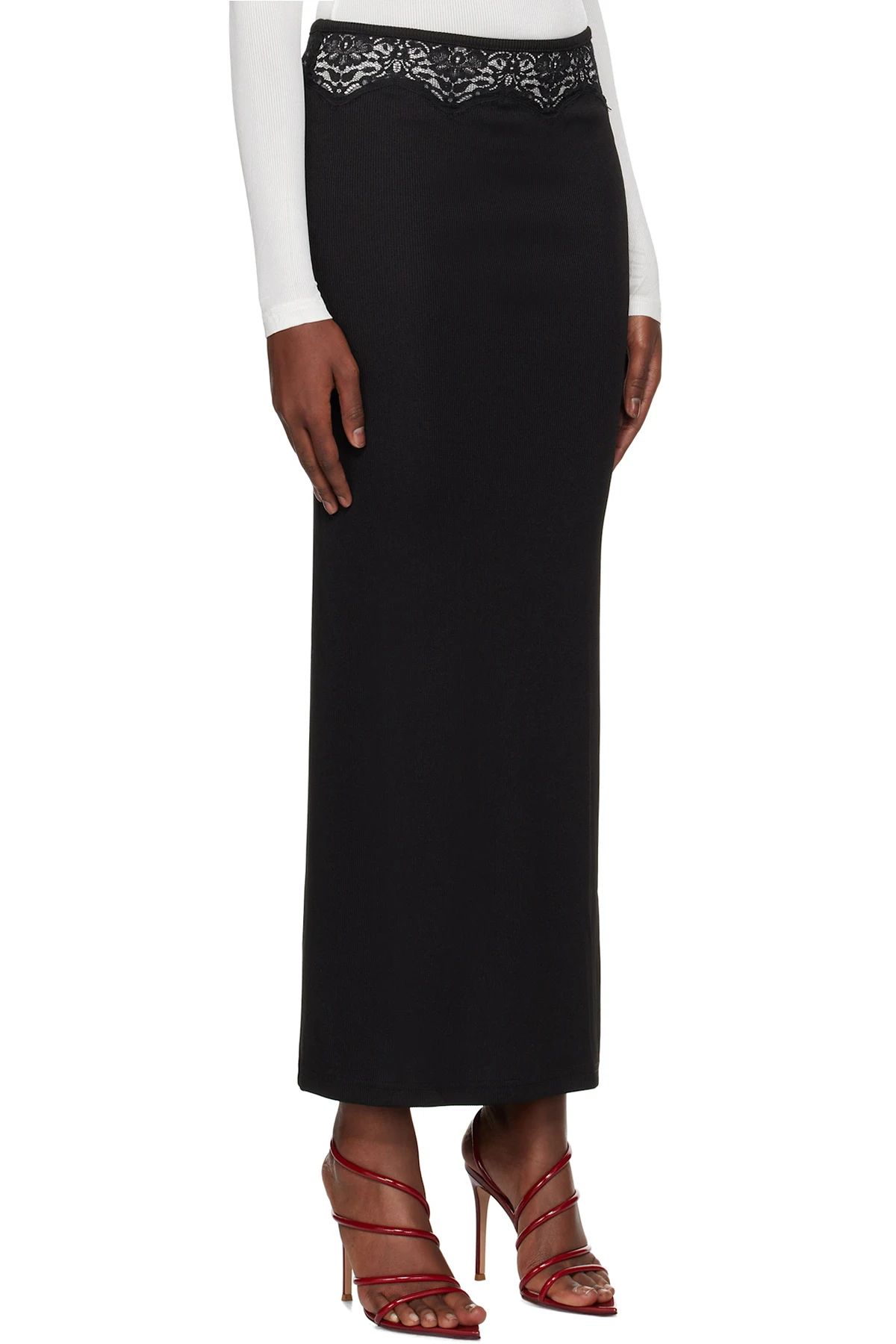 Black Lace Insert Maxi Skirt
