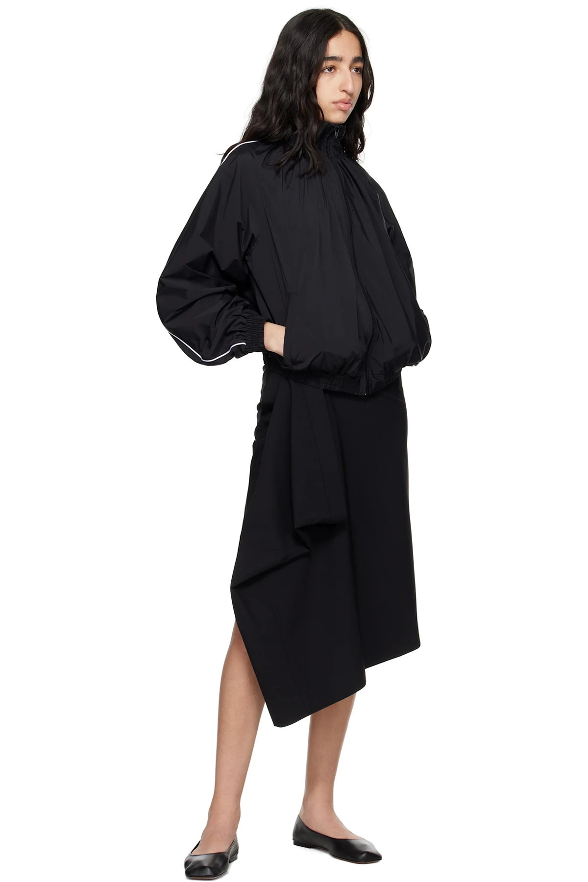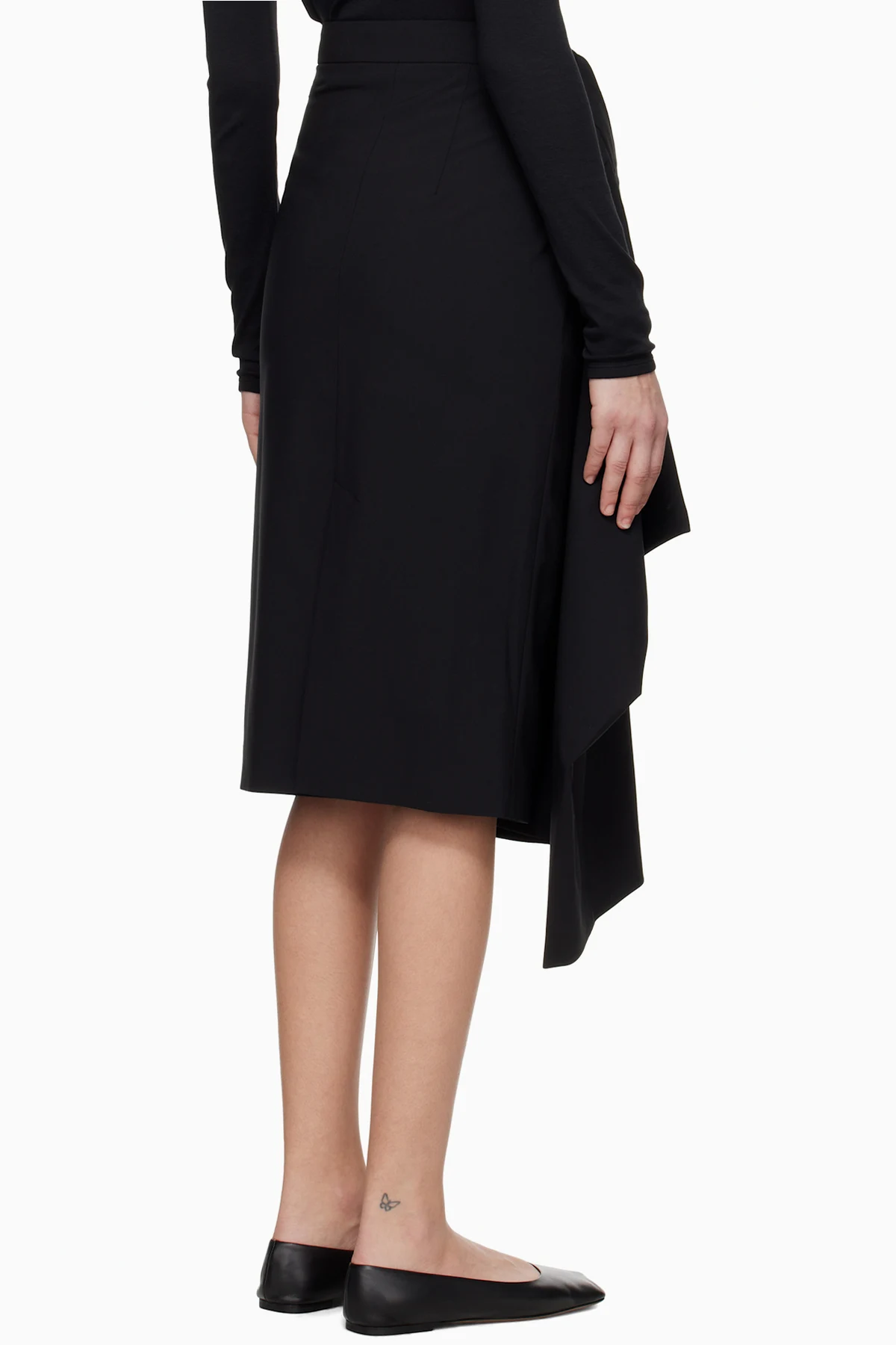 Black Extended Tailored Midi Skirt