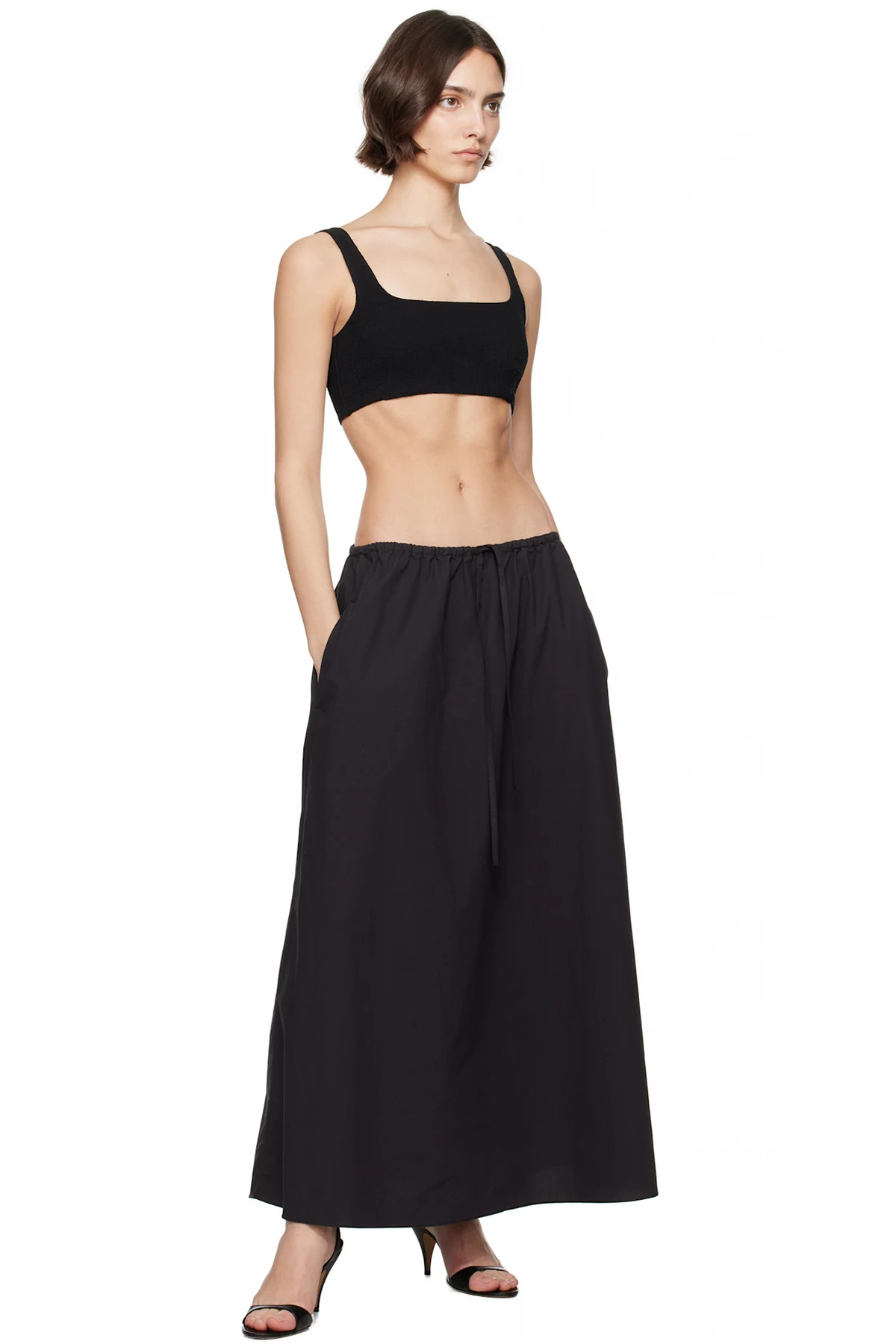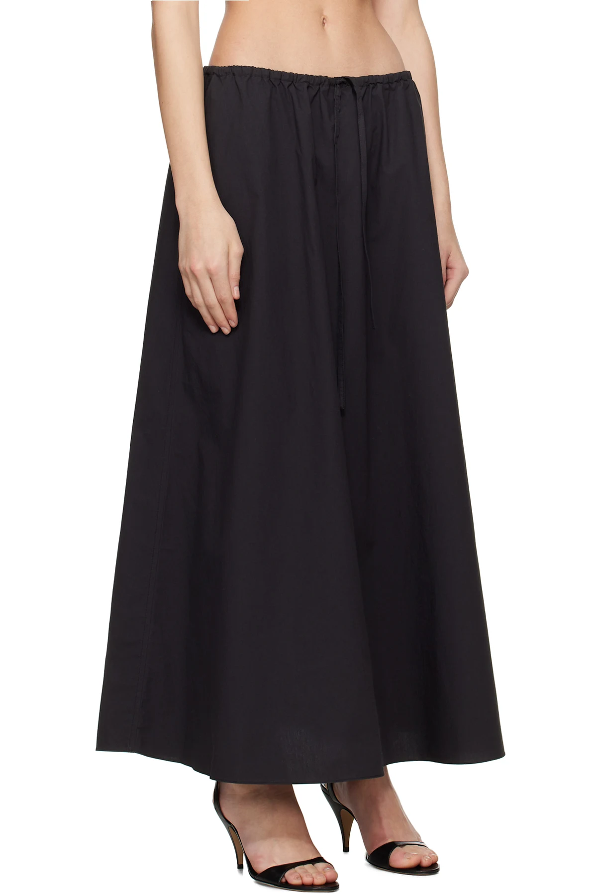 Black Drawcord Maxi Skirt