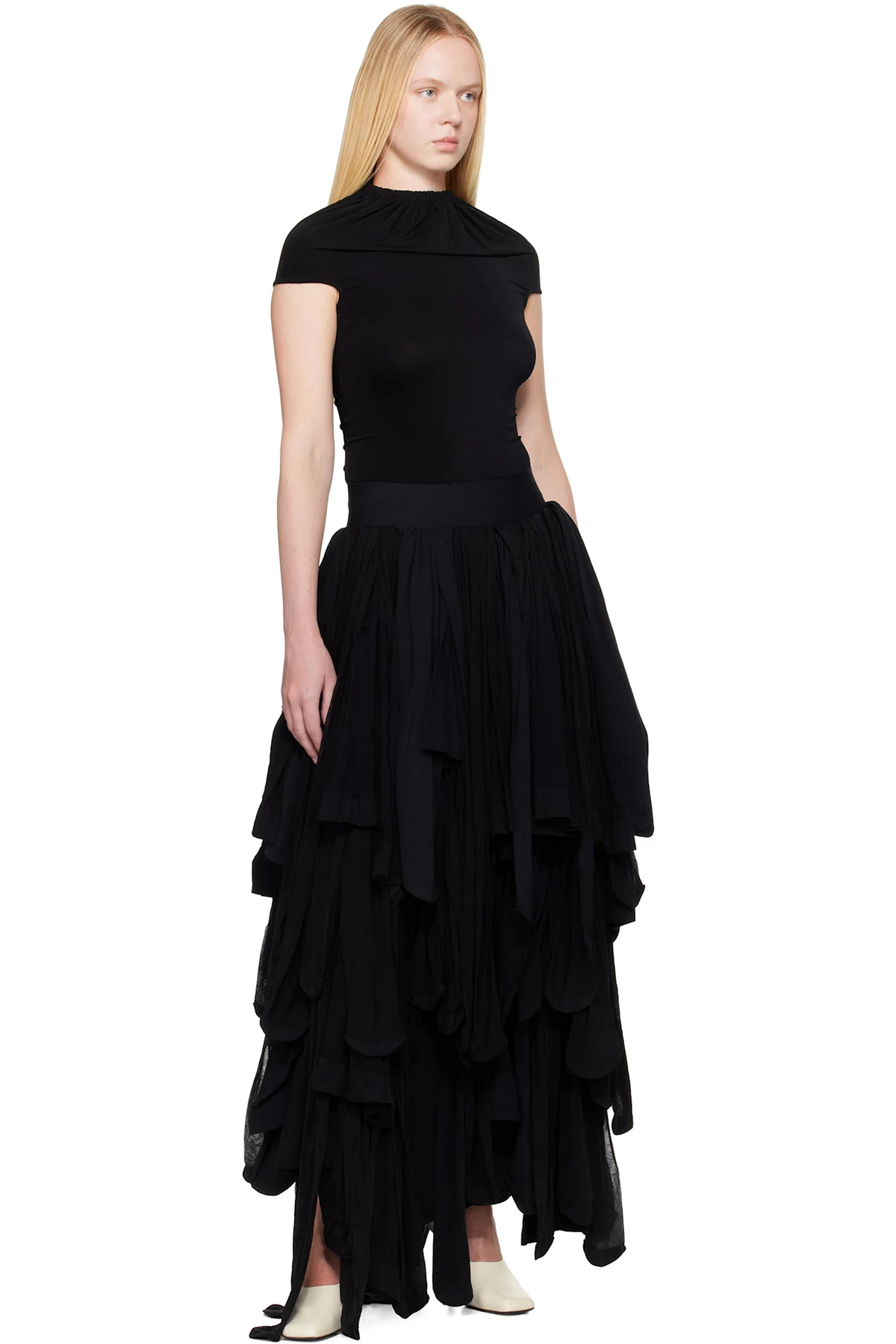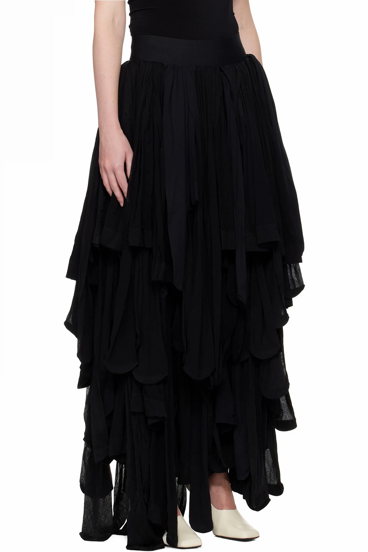 Stretch nylon jersey maxi skirt. Extended trim throughout.