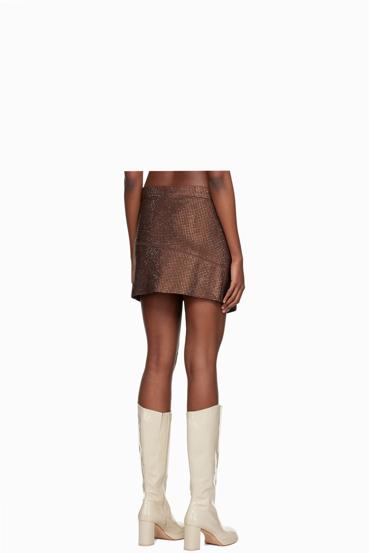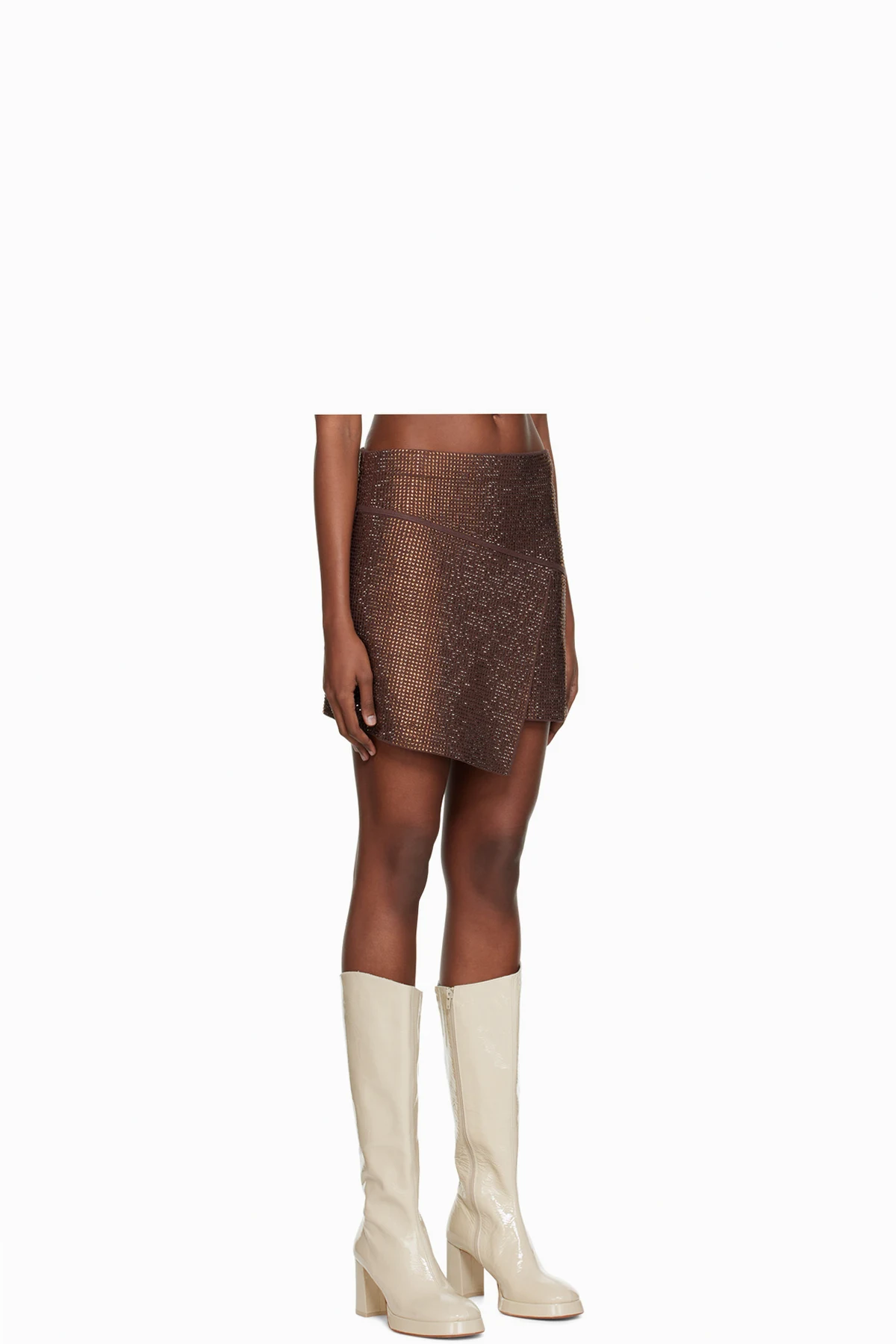 Rib knit viscose-blend skirt. Crystal-cut appliqués throughout.