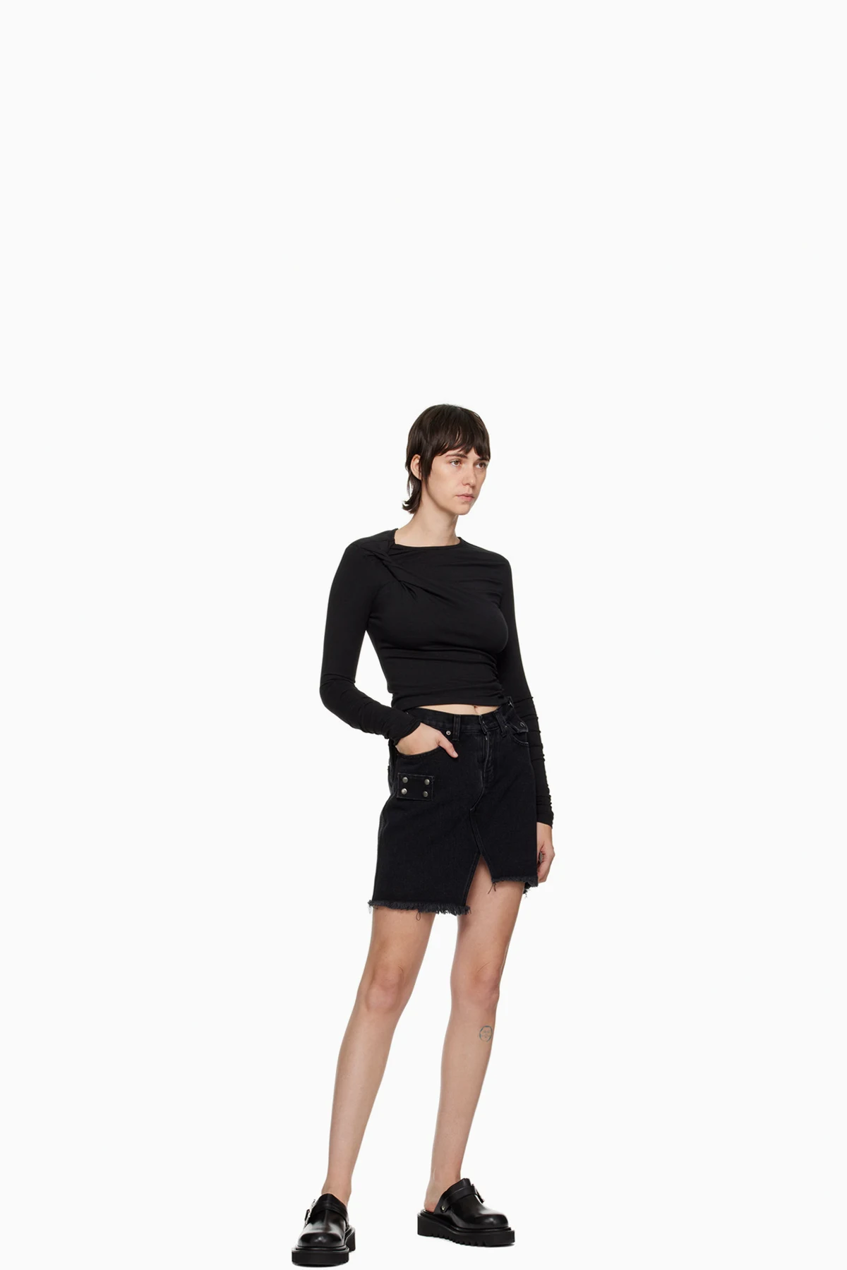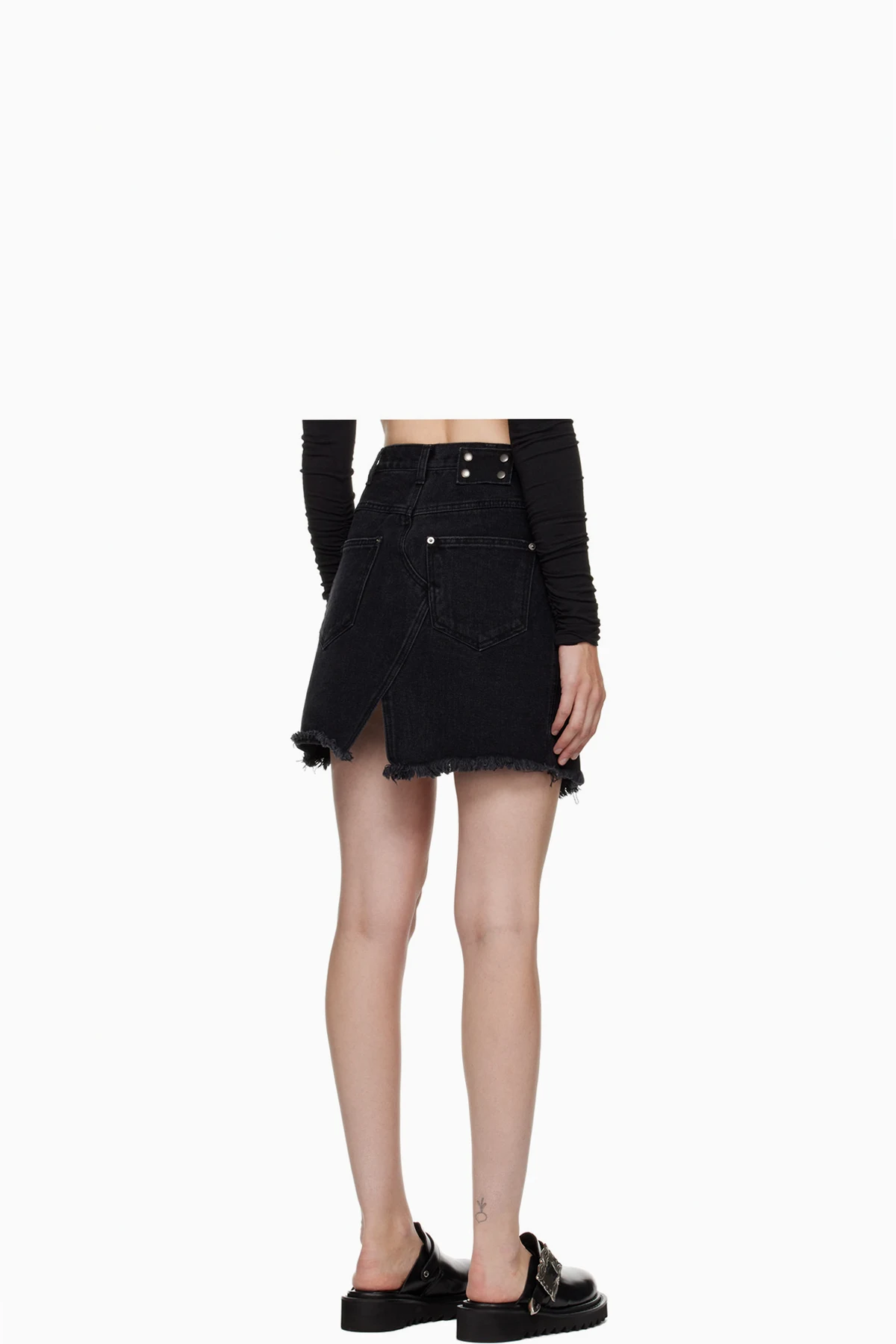 Non-stretch denim miniskirt. Detachable denim panels with press-stud fastenings throughout.