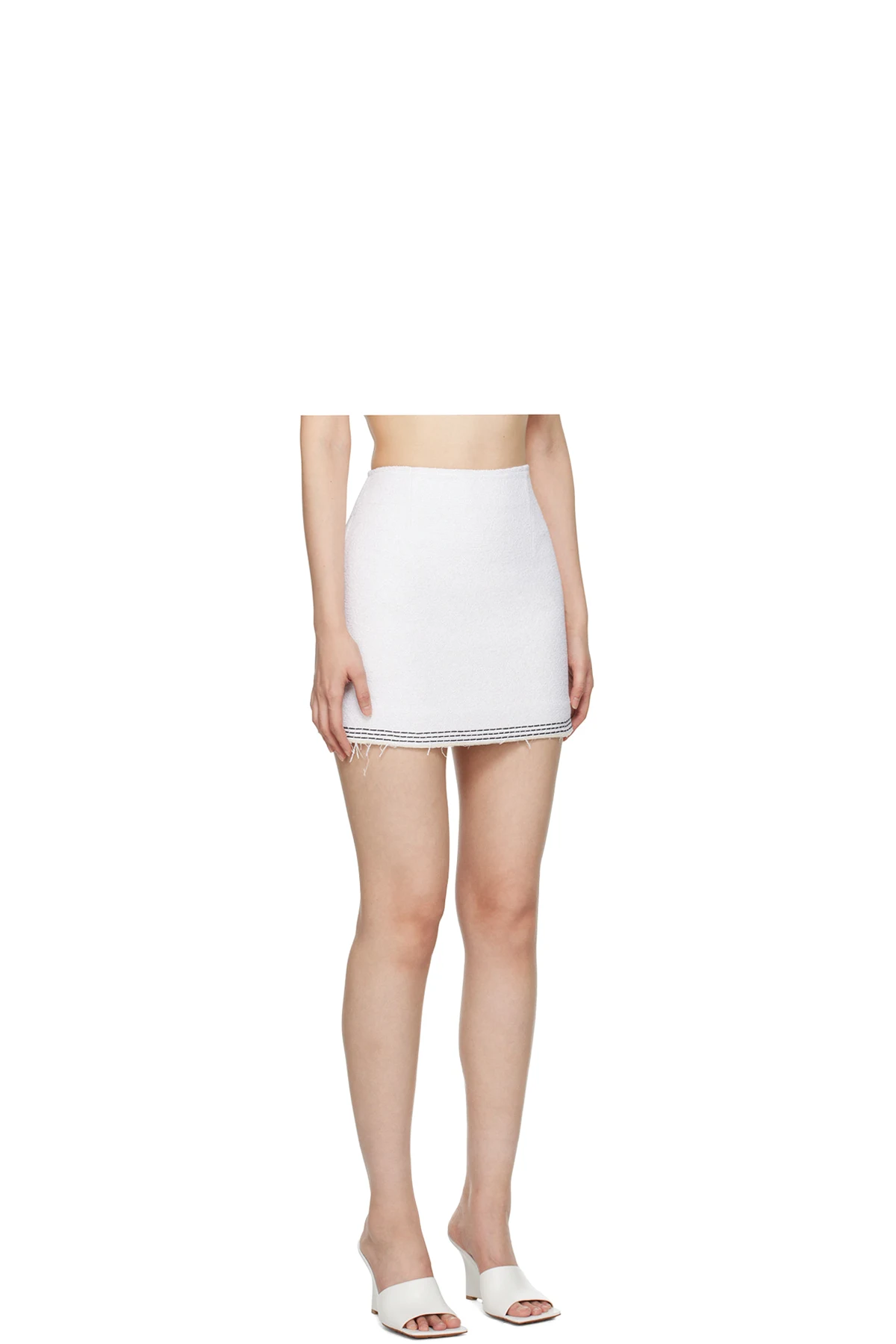 Cotton-blend tweed skirt. Embroidered trim and fringe detailing throughout.
