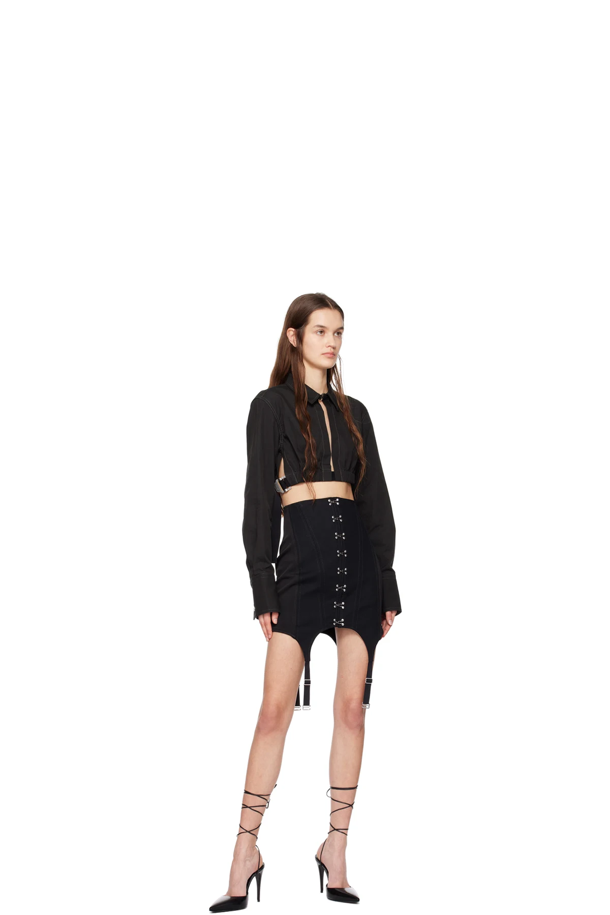 Navy Asymmetrical Bow & Ruffle Miniskirt