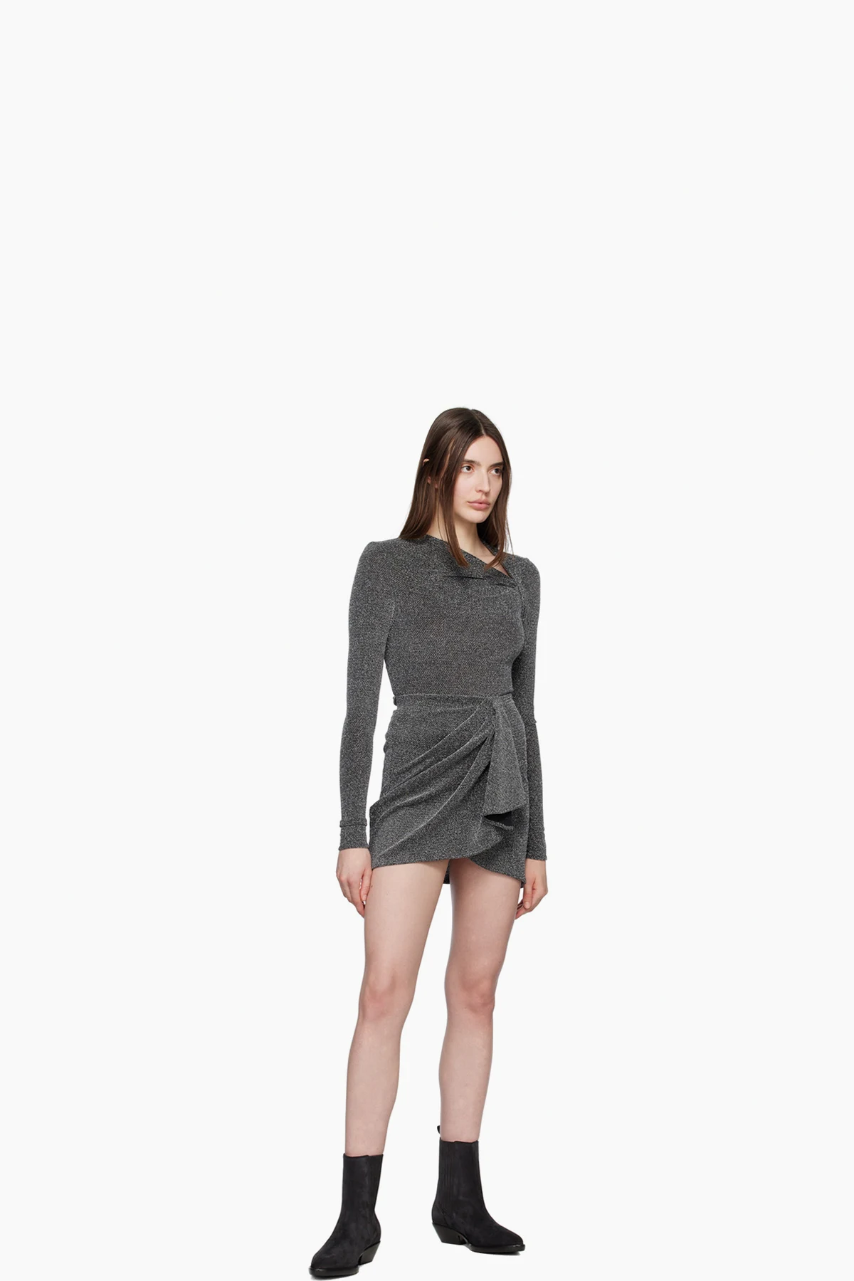 Stretch nylon-blend jersey skirt. Metallic thread detailing throughout.