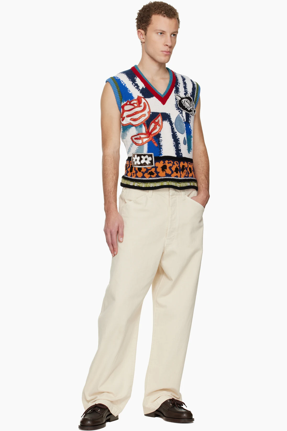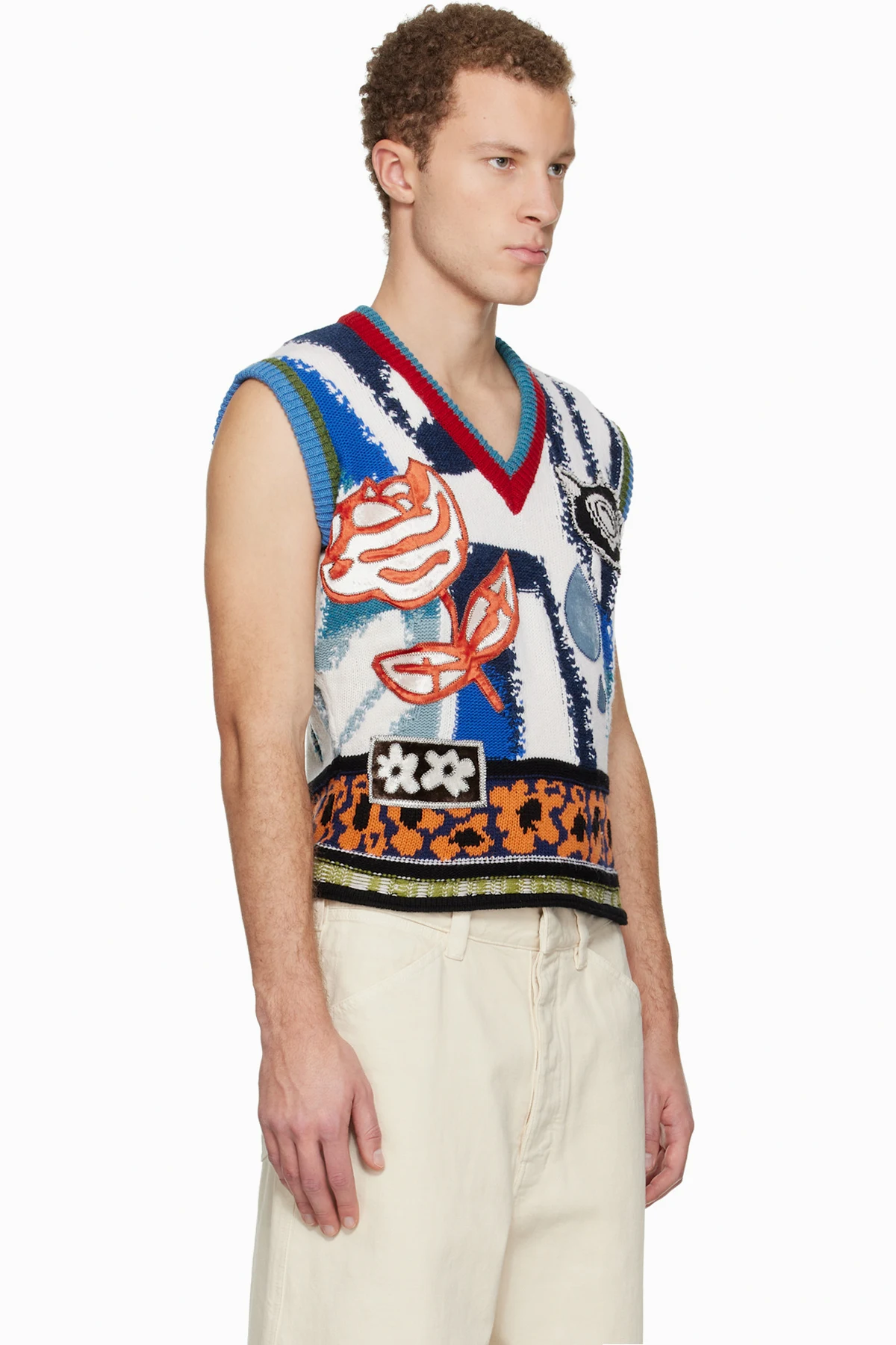 · Stripes at rib-knit V-neck, hem, and armscyes