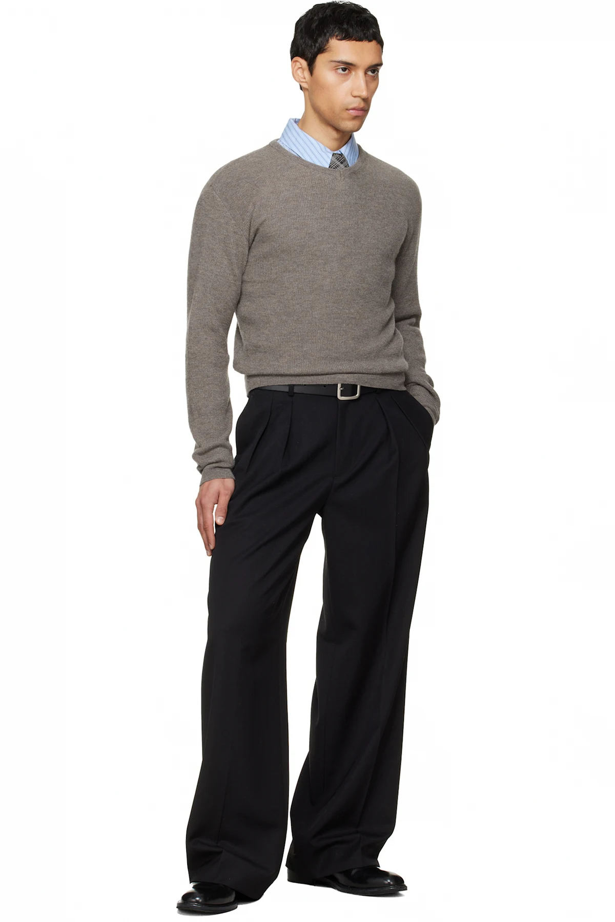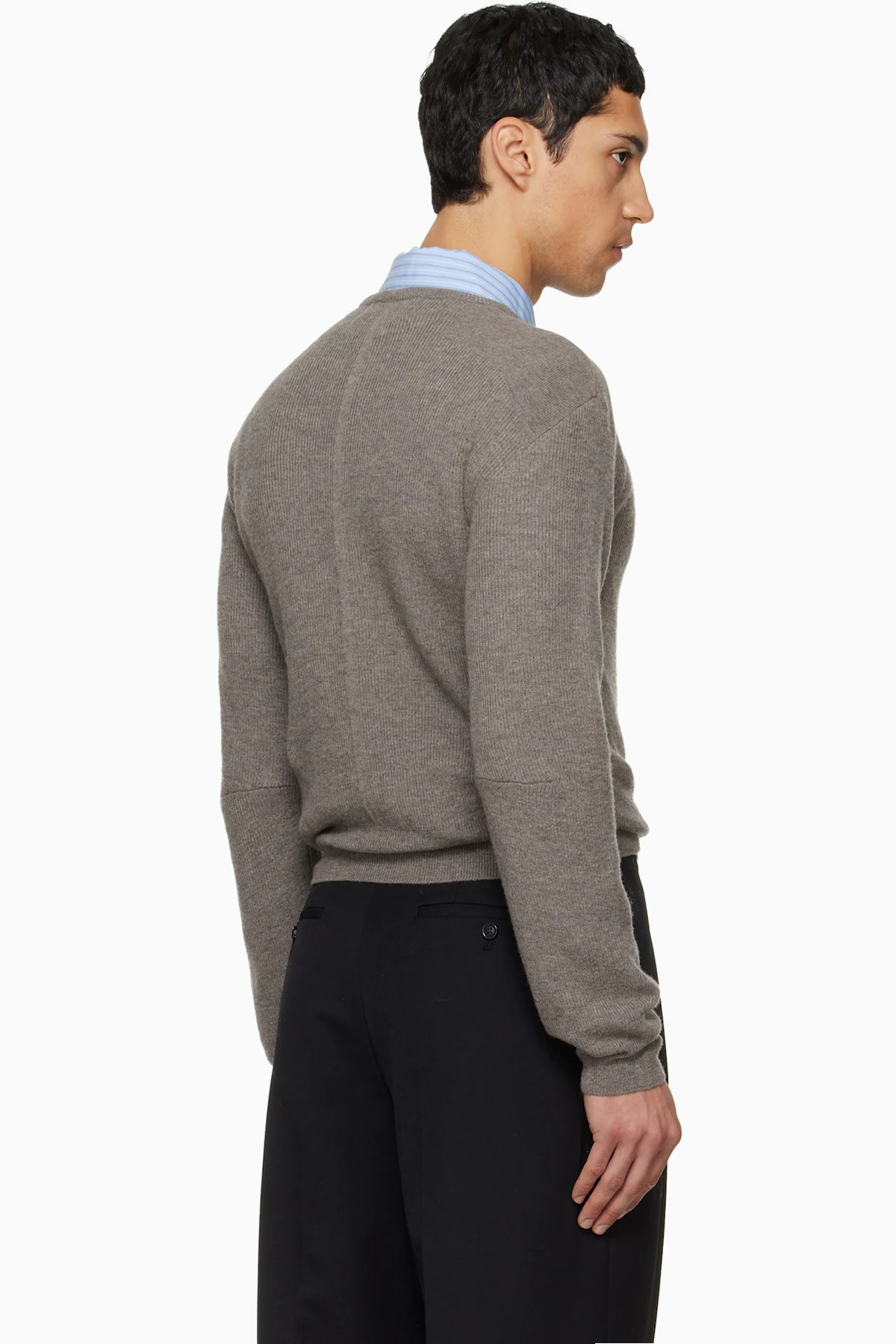 Rib-knit merino wool sweater. V-neck.