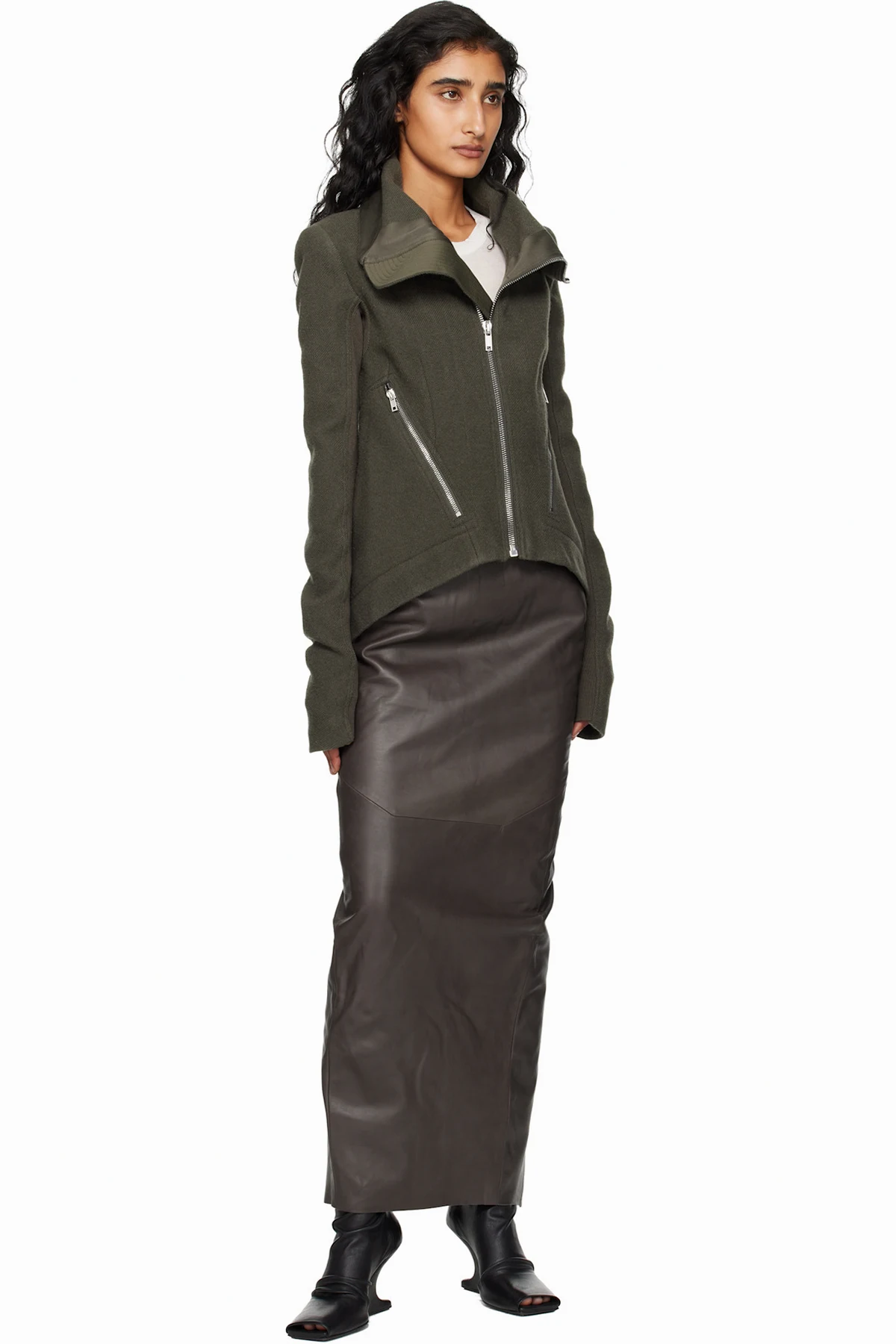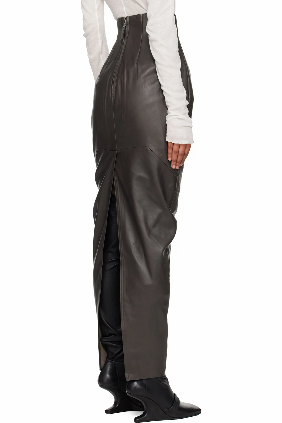 Gray Concordians Dirt Pillar Leather Maxi Skirt