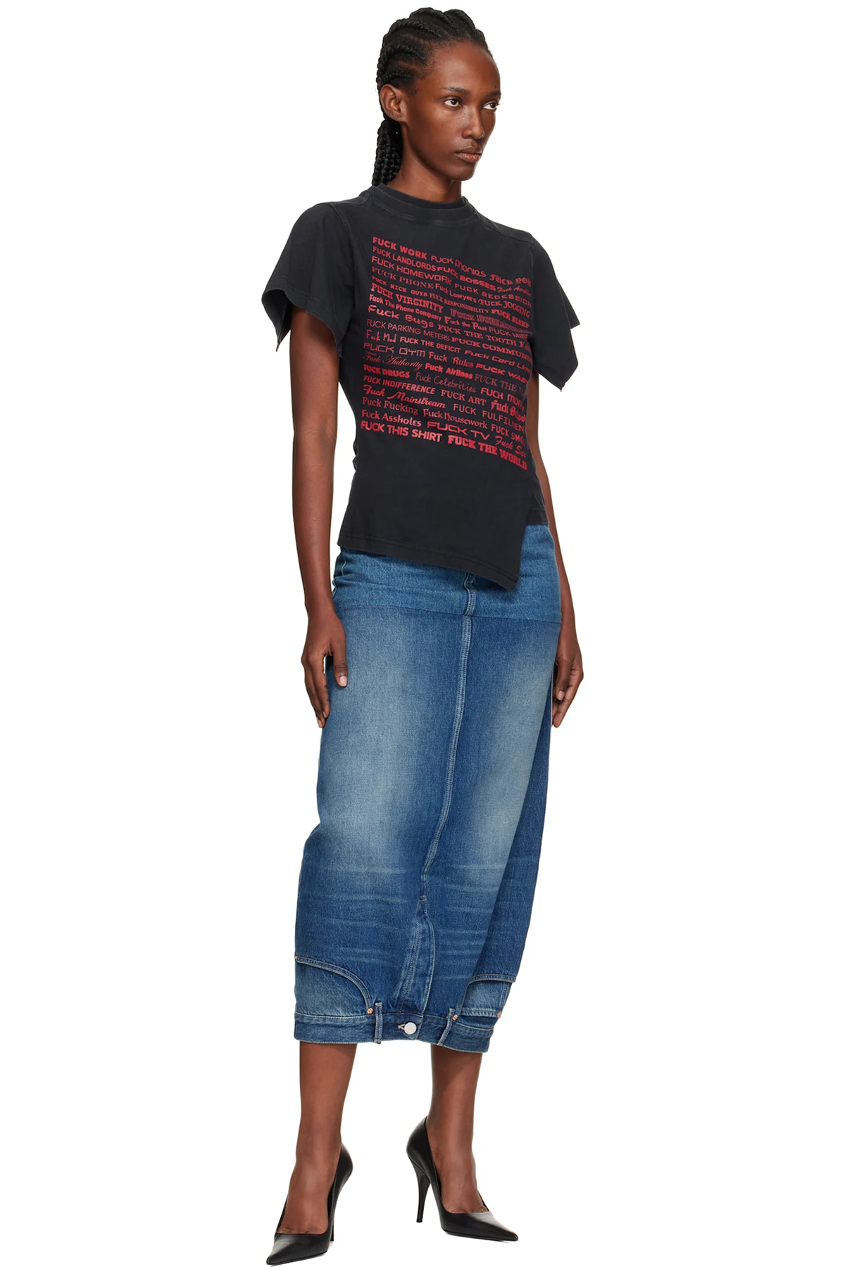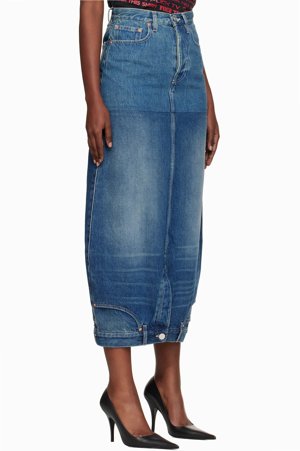 Non-stretch denim midi skirt.
