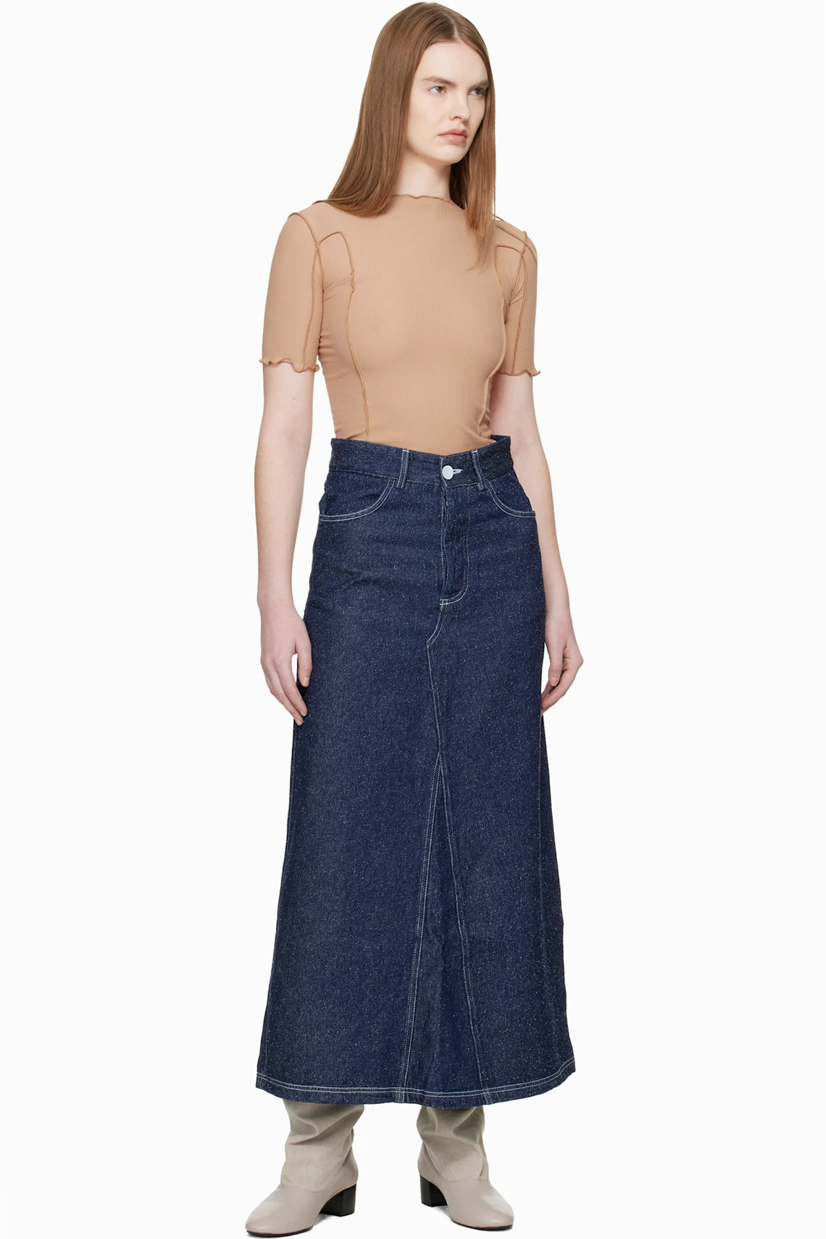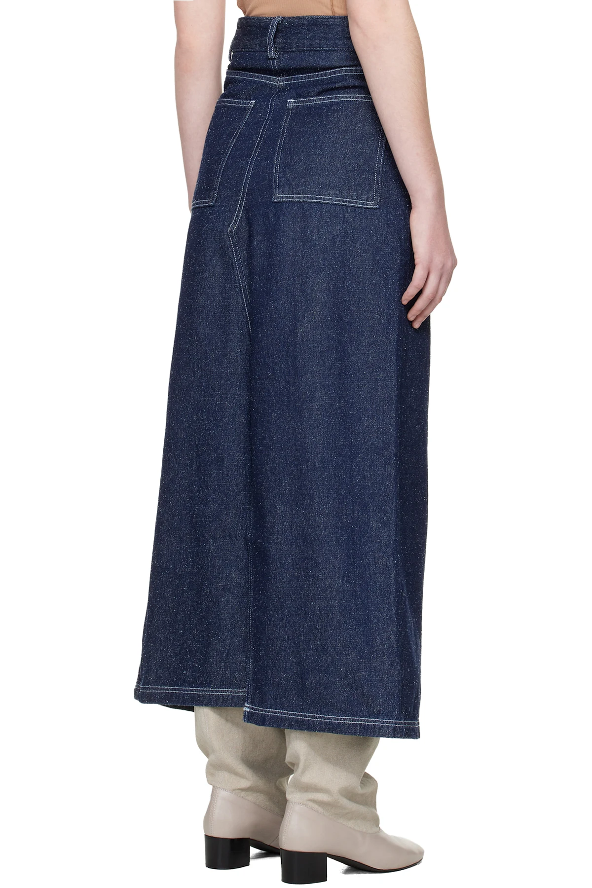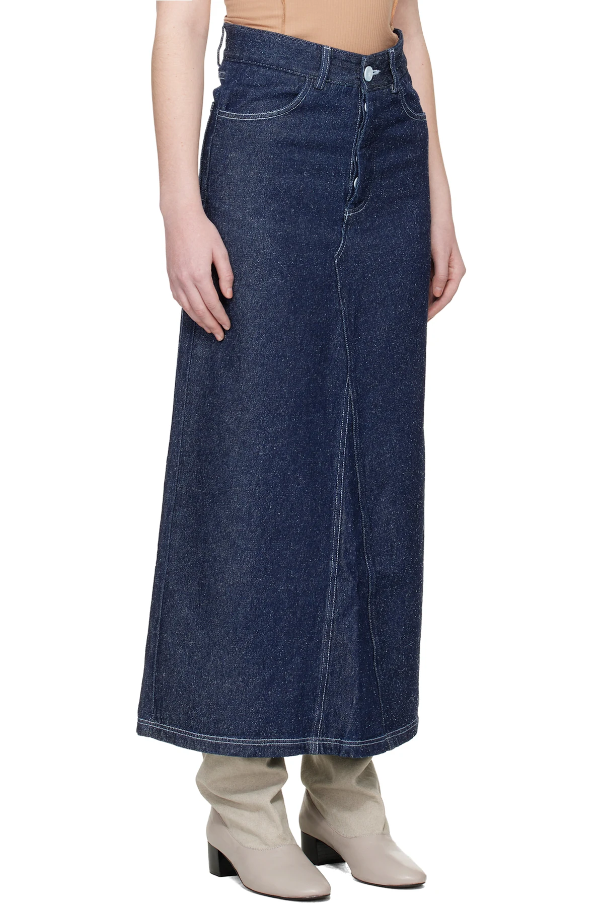 Non-stretch silk- and organic cotton-blend denim maxi skirt.