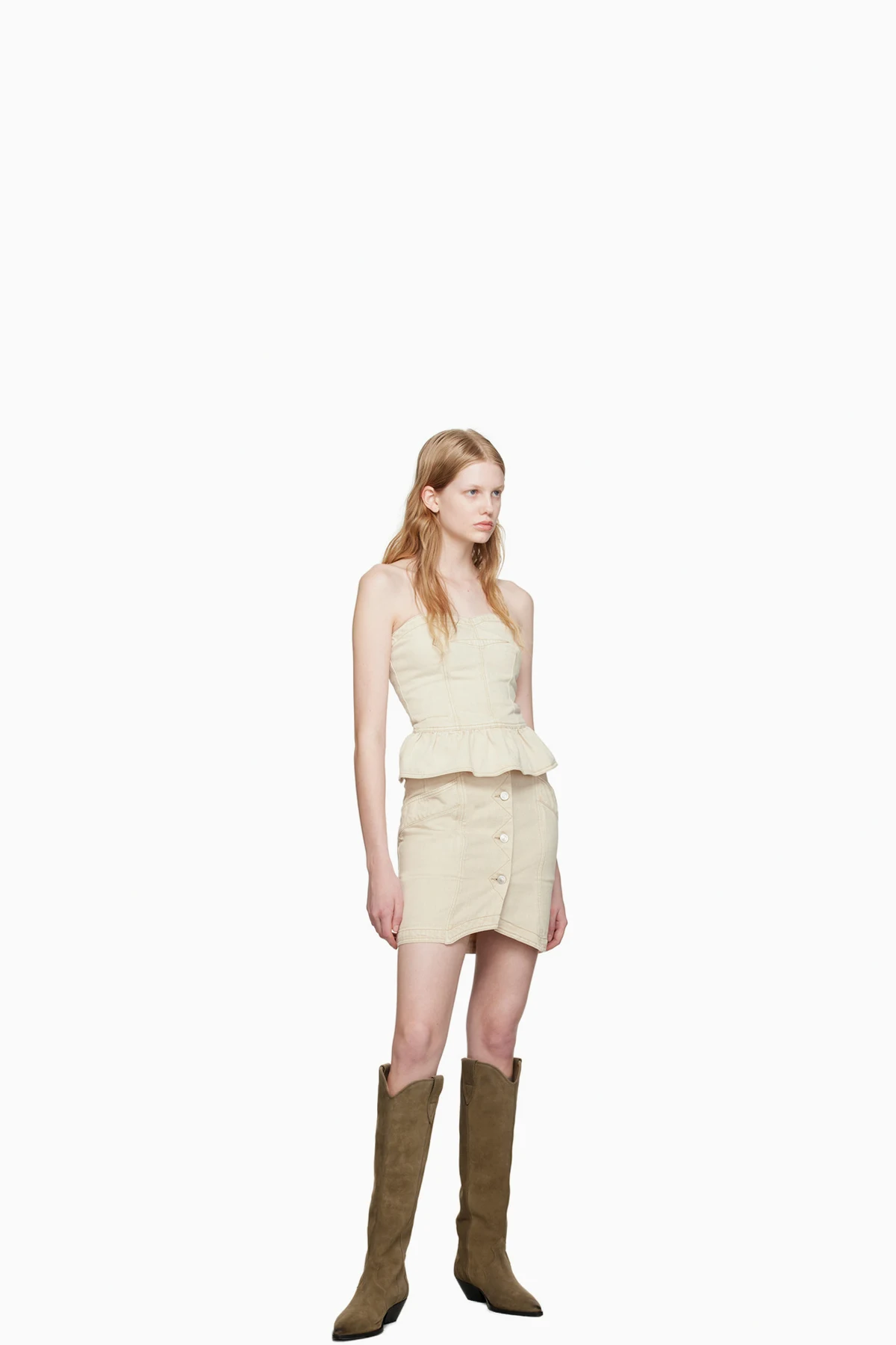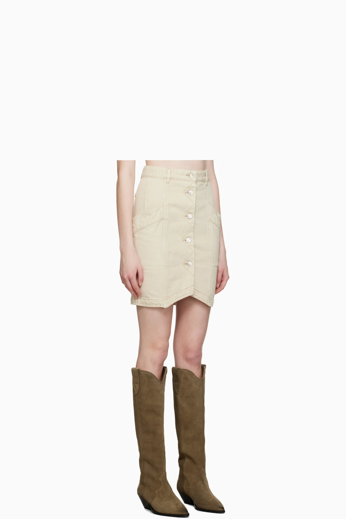 Beige Sabel Denim Miniskirt